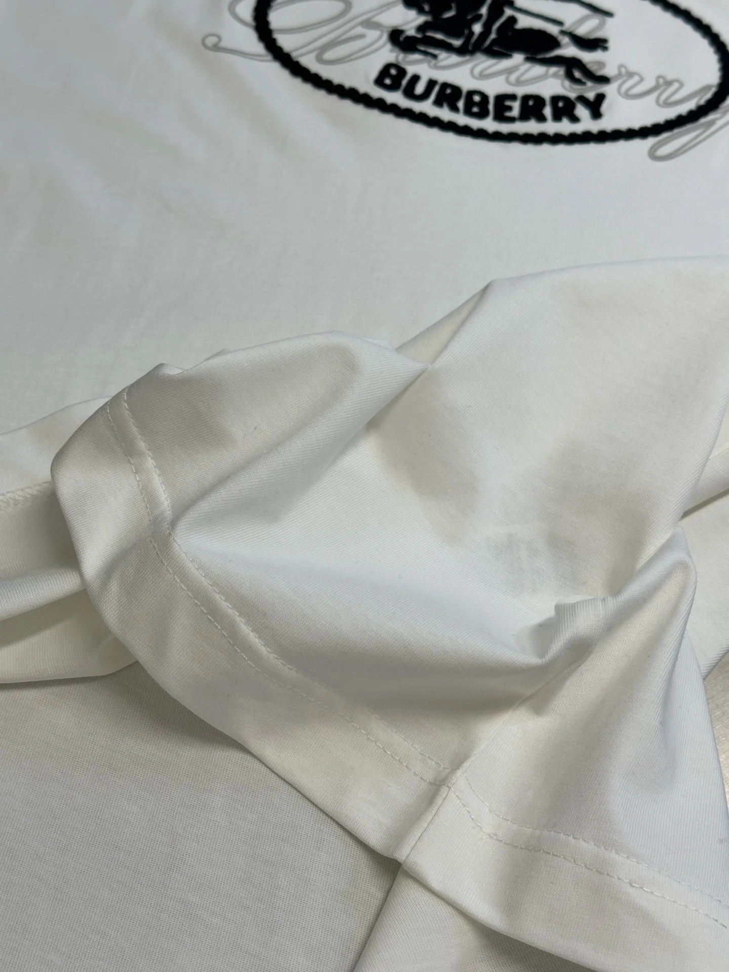 BBR 叠章战马圆领短袖平织纯棉面料材质x采用15支特纺紧密棉 克重为230g/ 搭配32支高克重1x1罗纹用于领口 克重为349g/ 特纺紧密棉在纺纱环节应用了紧密纺技术 有效减少了纱线毛羽 使得面料结构更密实 表面更光洁 抗起球性更佳 面料克重属于中等偏重磅 确保了T恤良好的挺括感和垂坠性 不易软塌变形 其高支高克重特性确保了领型极佳的弹性恢复力 厚实感和抗变形能力 是高品质T恤的标志