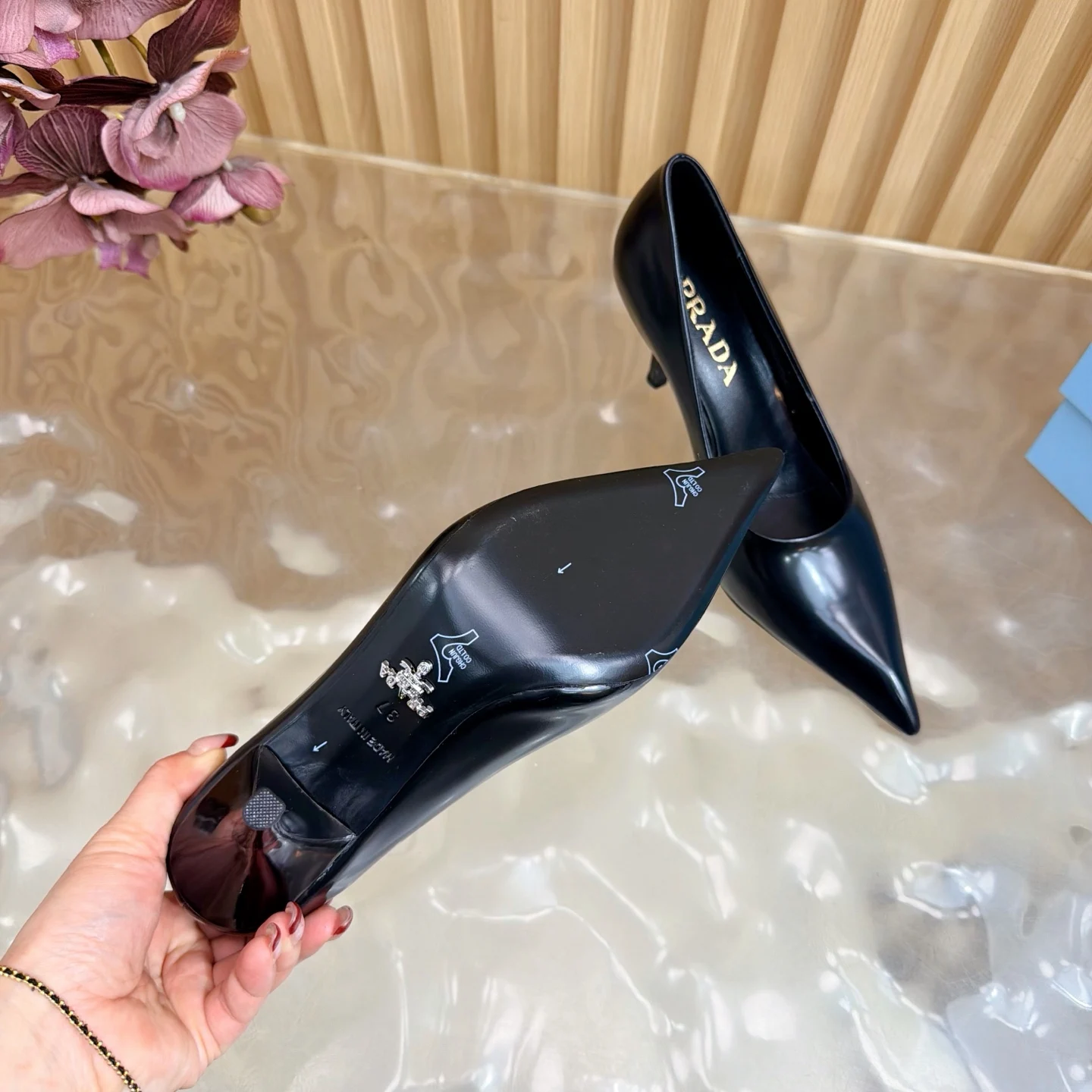 2026早秋新款 Prada 普拉达走秀款尖头镂空高跟鞋 复古老钱风单鞋/凉鞋选用优质皮革材质 质感高级 且有做旧效果的纹理 呈现出复古又摩登的质感 工艺精细 体现品牌高端品质 细高跟设计 提升穿着者气场 同时保持了较好的稳定性 适合日常通勤或特殊场合穿着