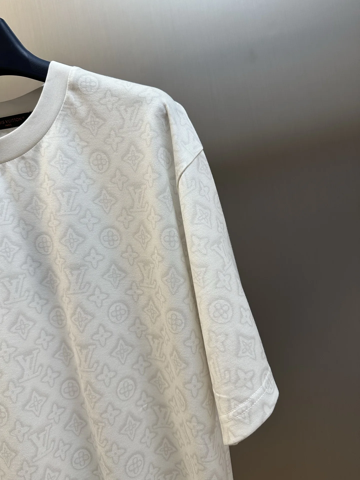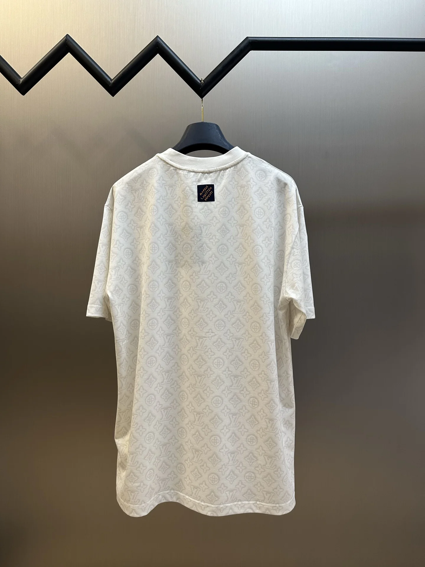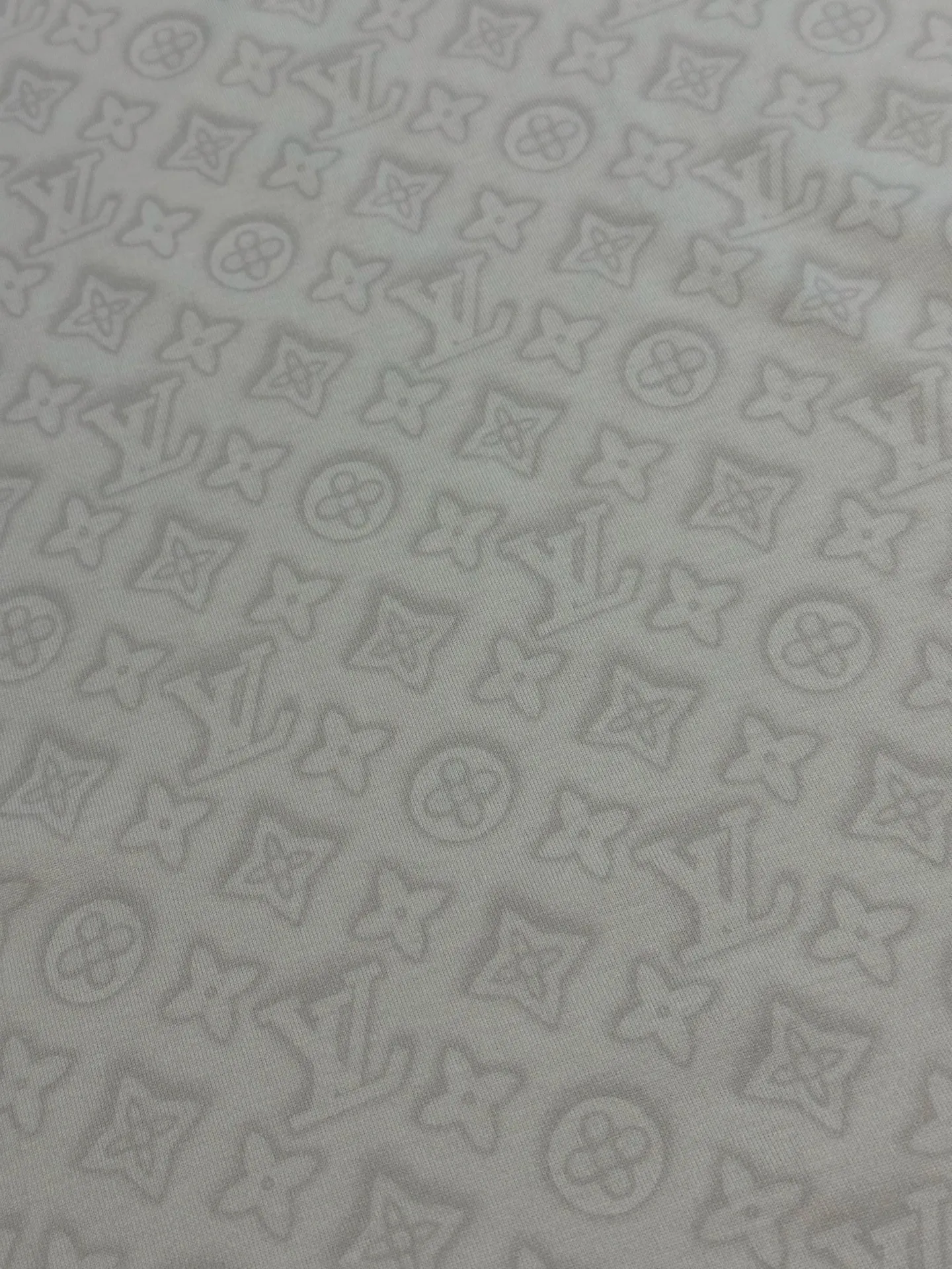 满印涂料数码直喷短袖这款满饰HaloMonogram印花 标识图案周围泛起柔和光军 对品牌图案的首代省通缝 为日常造型注人新鲜感 用轻质棉质针织面料制成 背面饰有MarqueLVuitonDeposee梭织标签