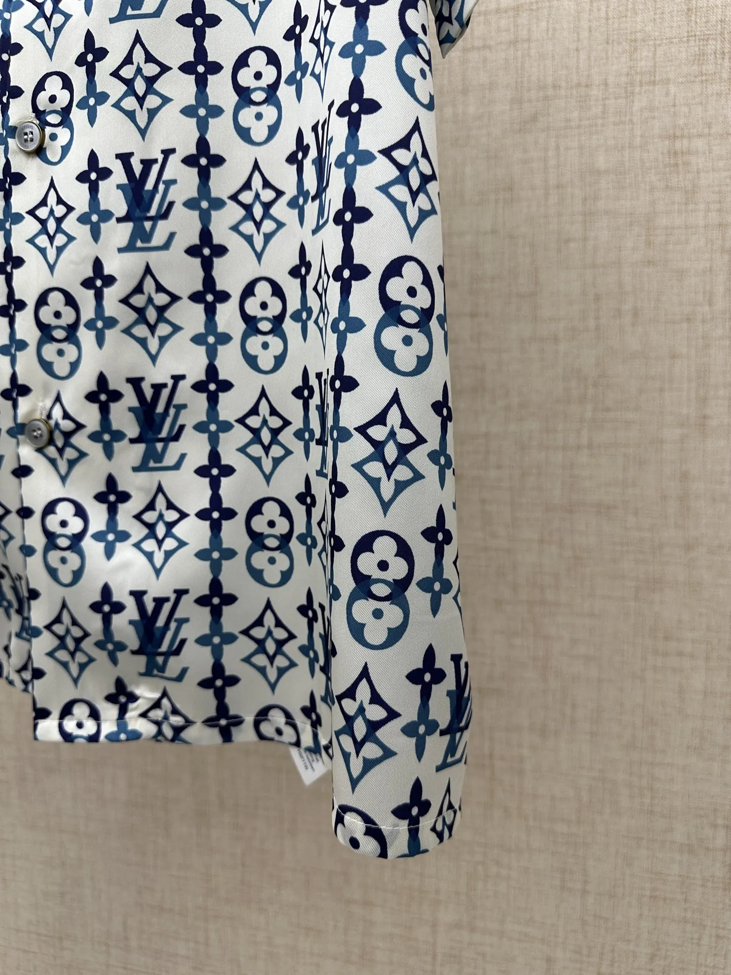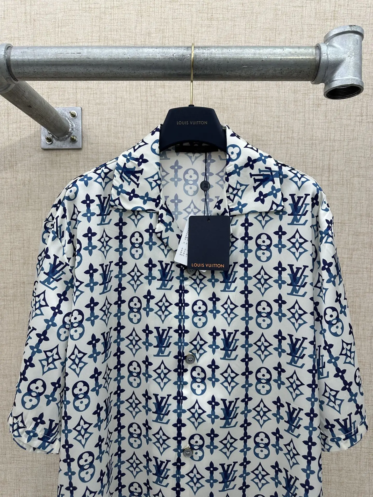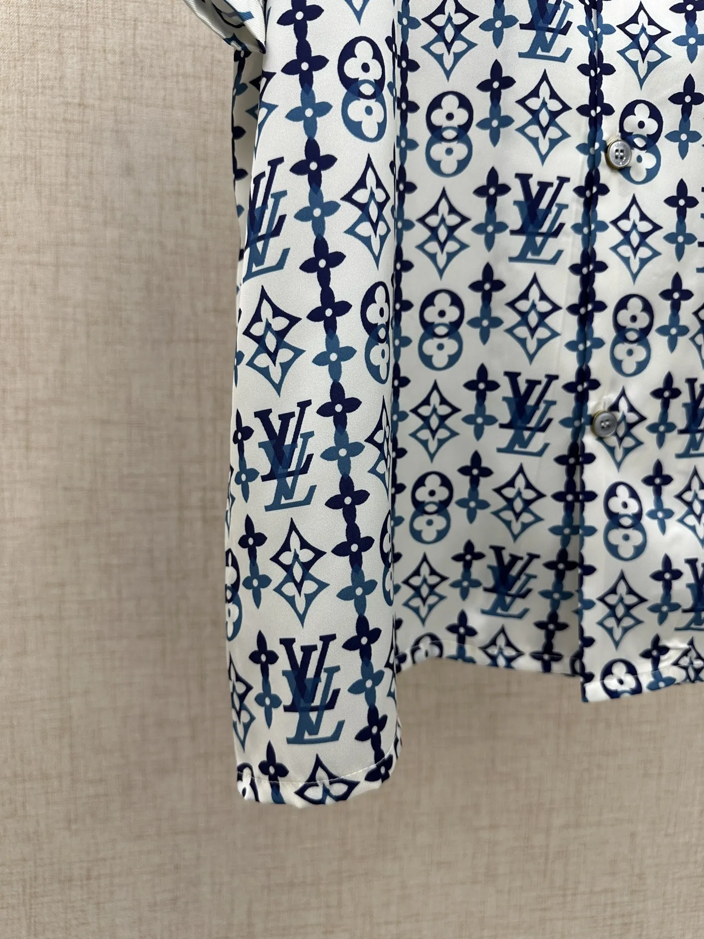 LV/路易威登 MONOGRAM 印花桑蚕丝短袖衬衫 与桑蚕丝材质相得益彰 可与同系列同款短裤 组成完整套装 打造摩登休闲造型