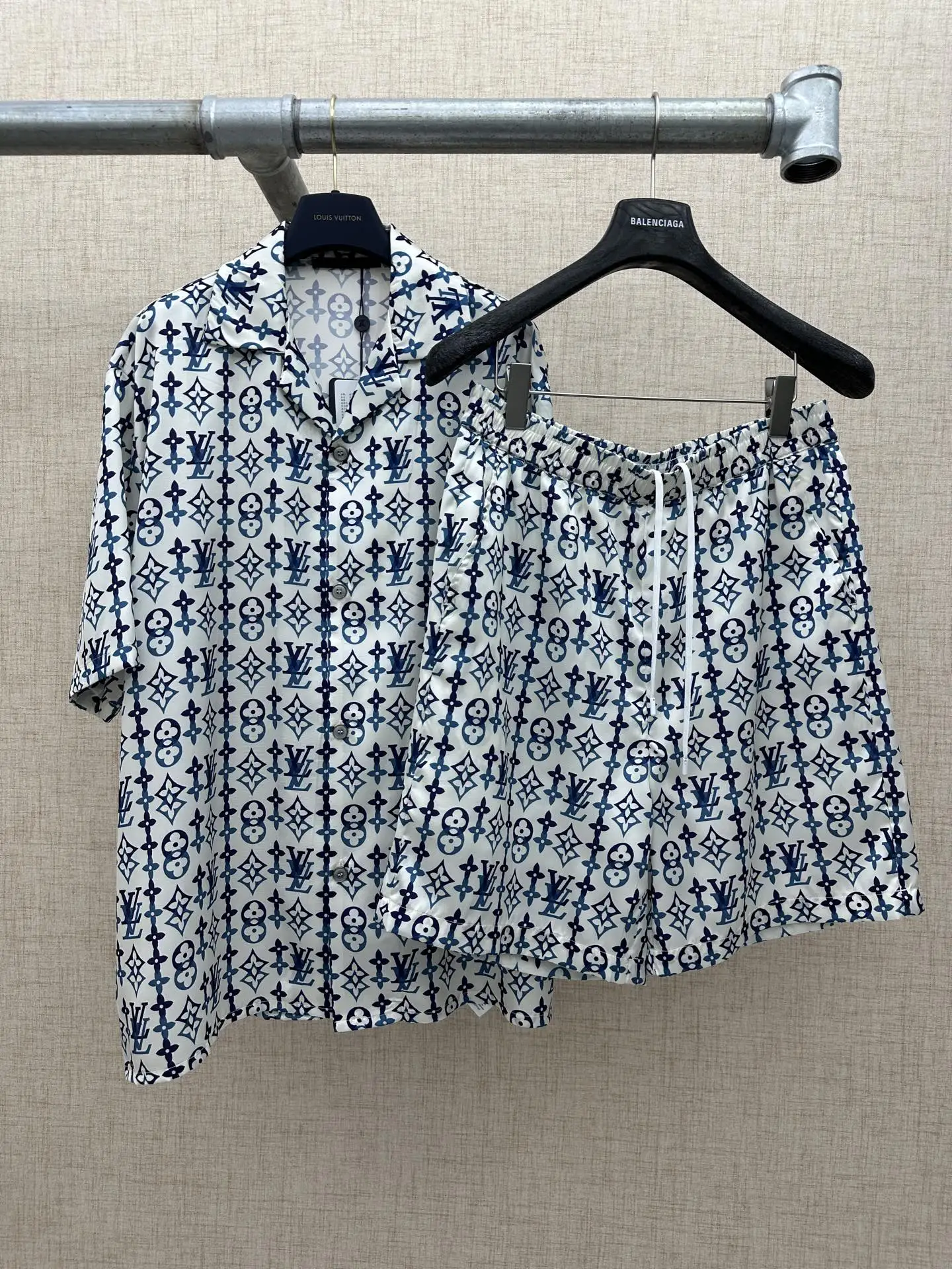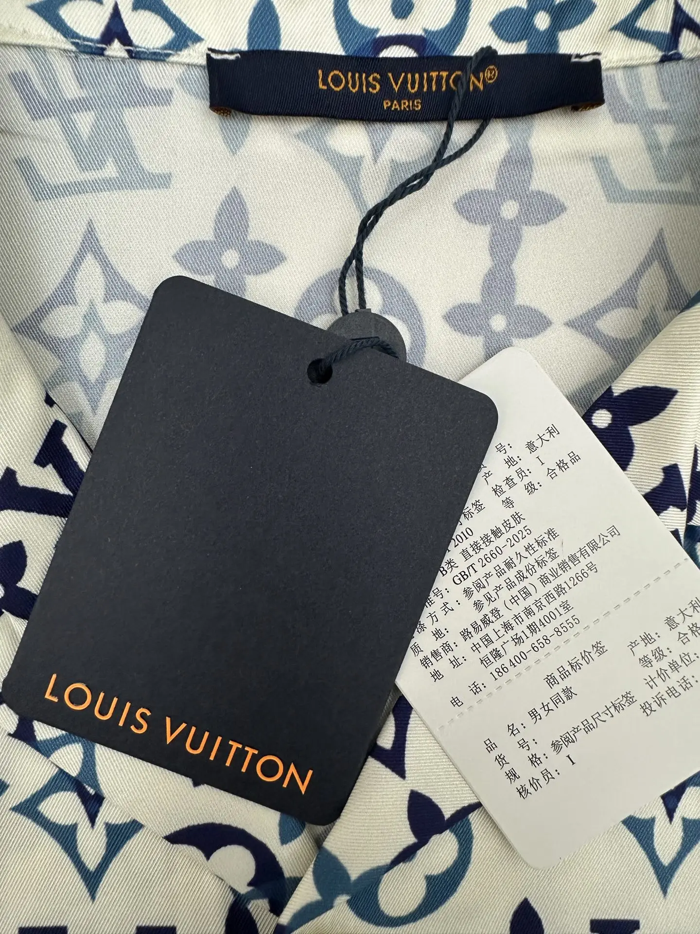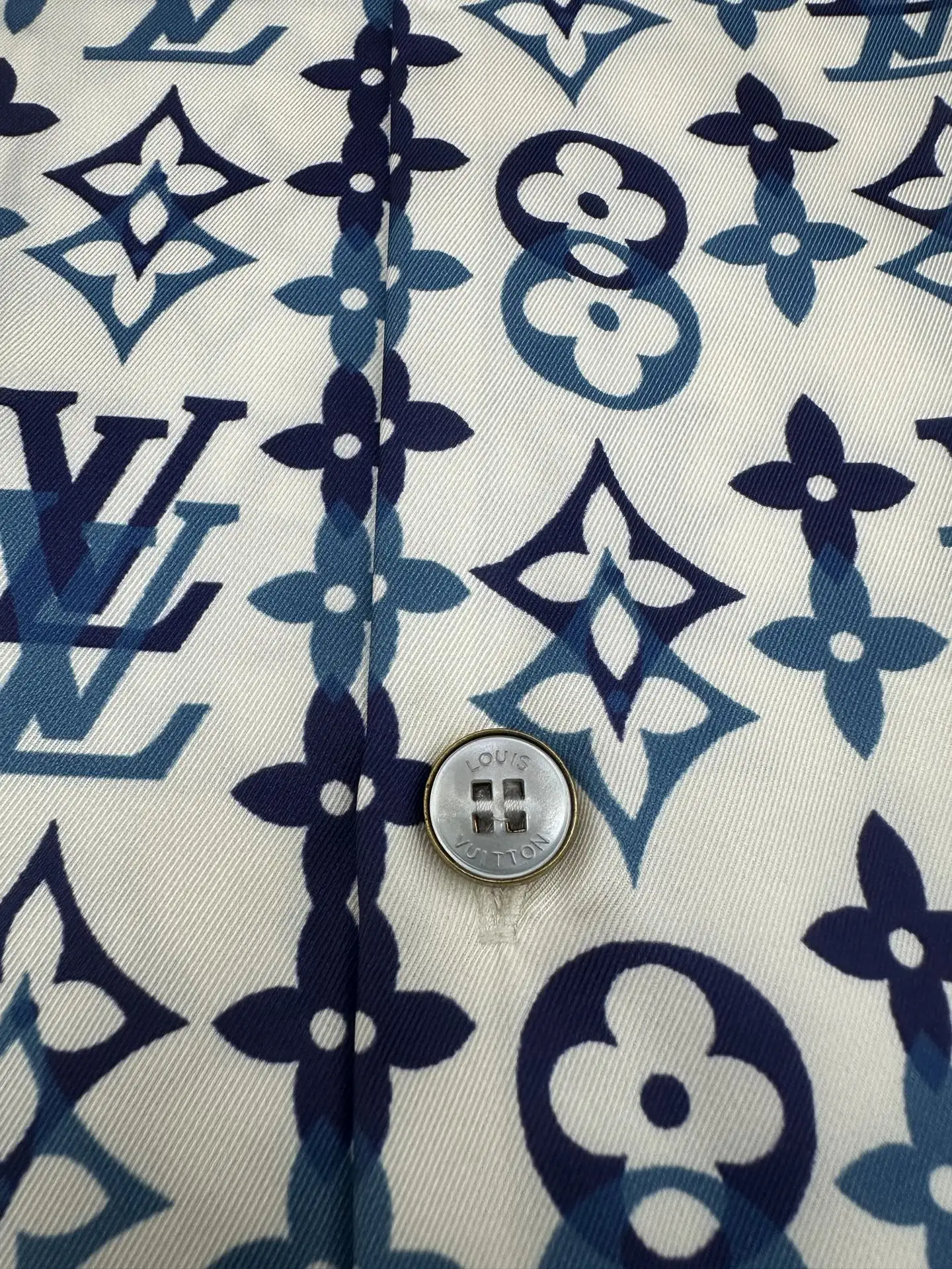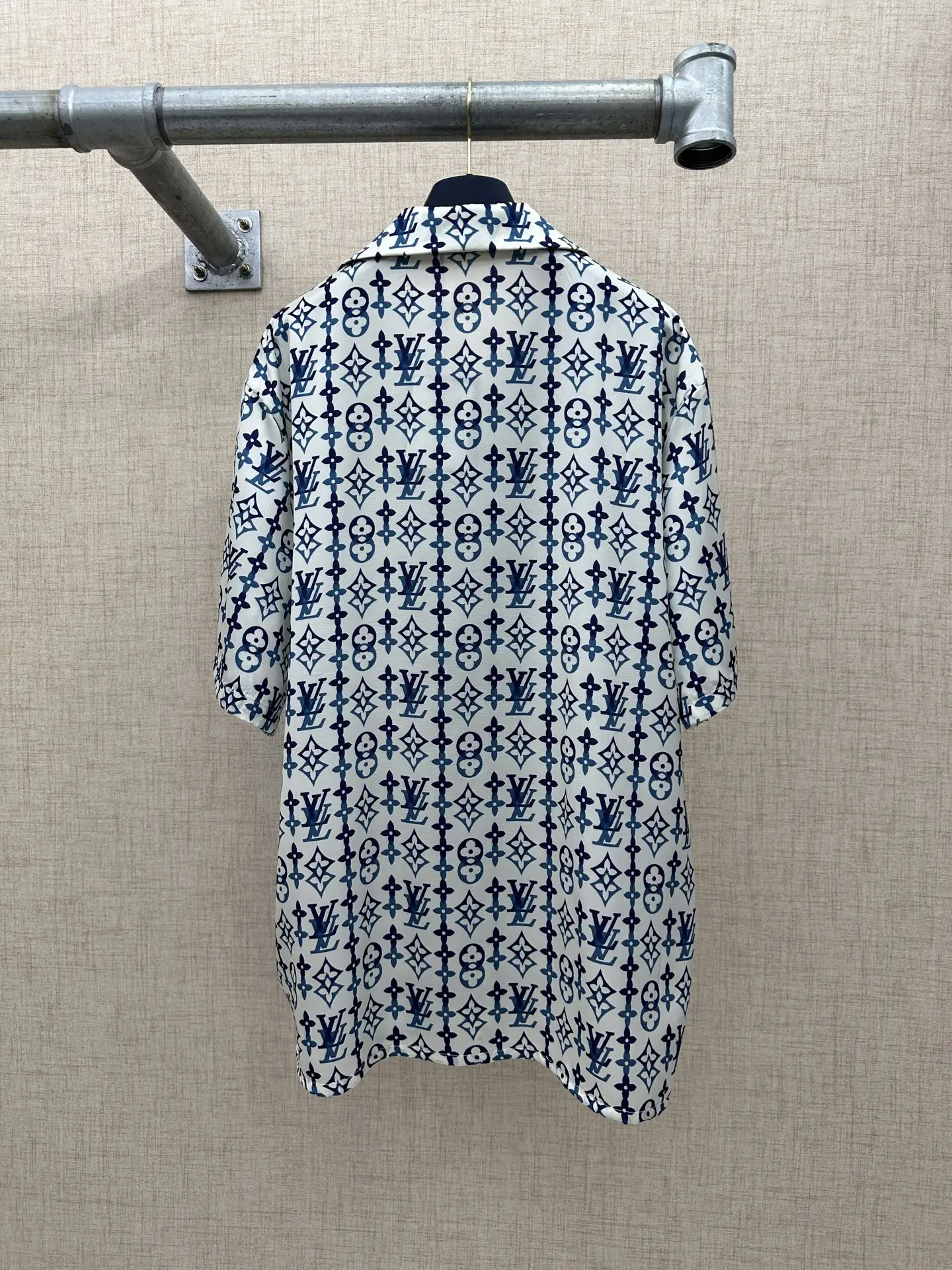 LV/路易威登 MONOGRAM 印花桑蚕丝短袖衬衫 与桑蚕丝材质相得益彰 可与同系列同款短裤 组成完整套装 打造摩登休闲造型