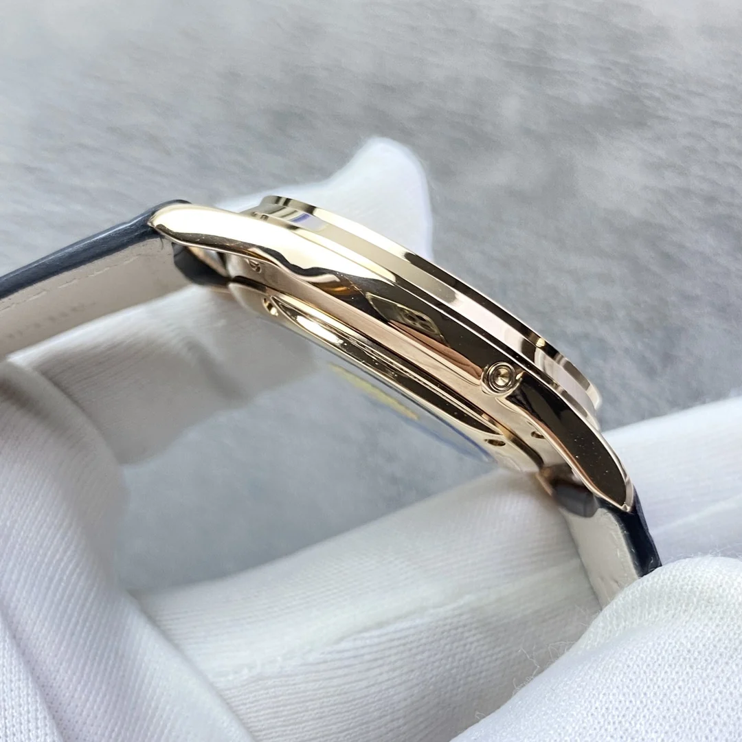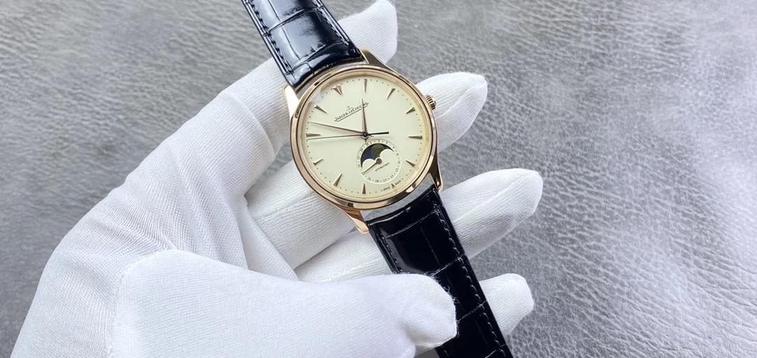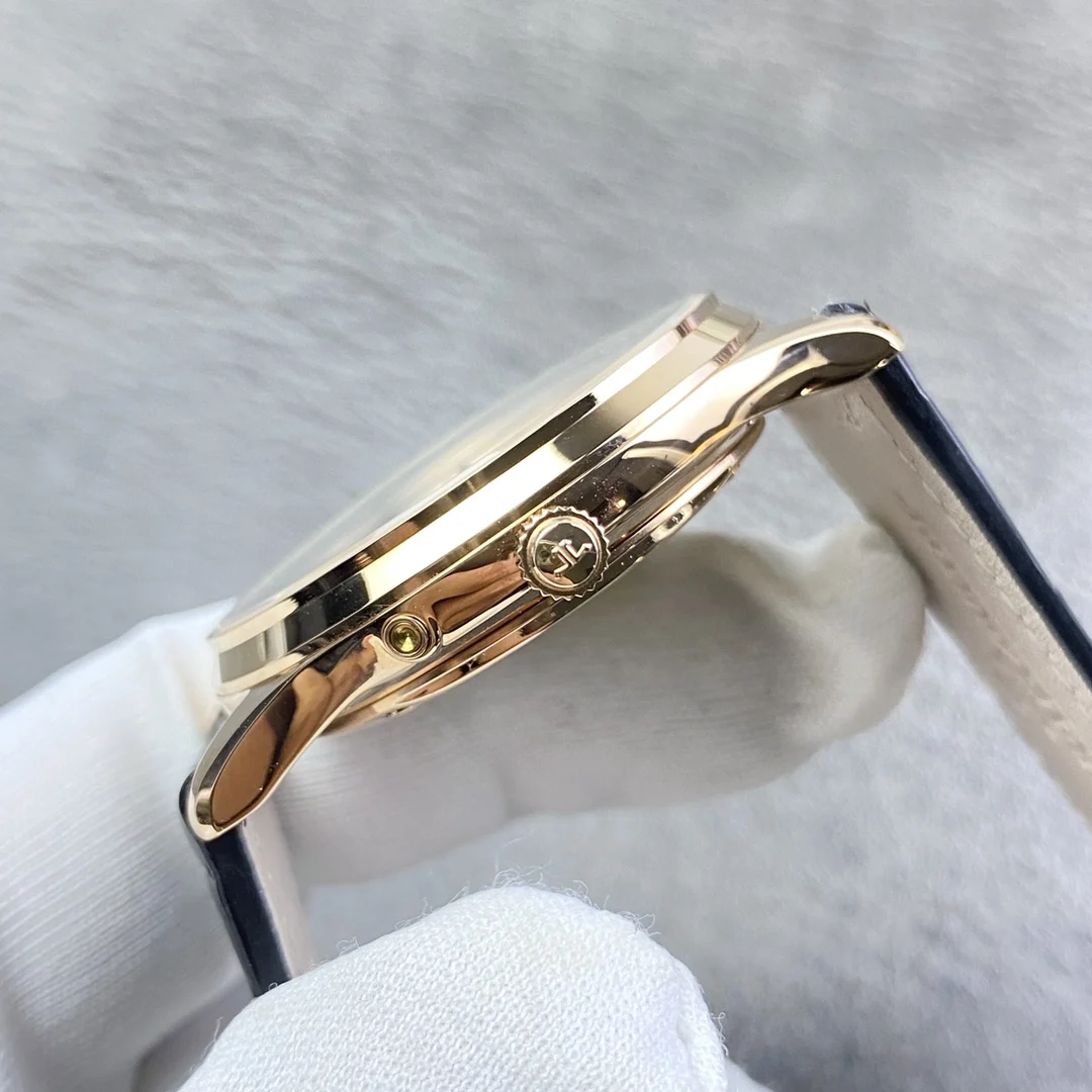 积家月相大师系列正装男表Q1368420.鳄鱼皮 表壳直径39mm 厚度9.9mm 数控精雕立体月相盘 完美还原原装 搭载Miyota9015魔改一体Cal.925/1机芯 镂空链条盒让机芯看起来 更积家 自动陀电镀了特调的K金色 并非市场上普通的红玫瑰金 实实在在匠心打造 Gr 厂出品 出货实拍