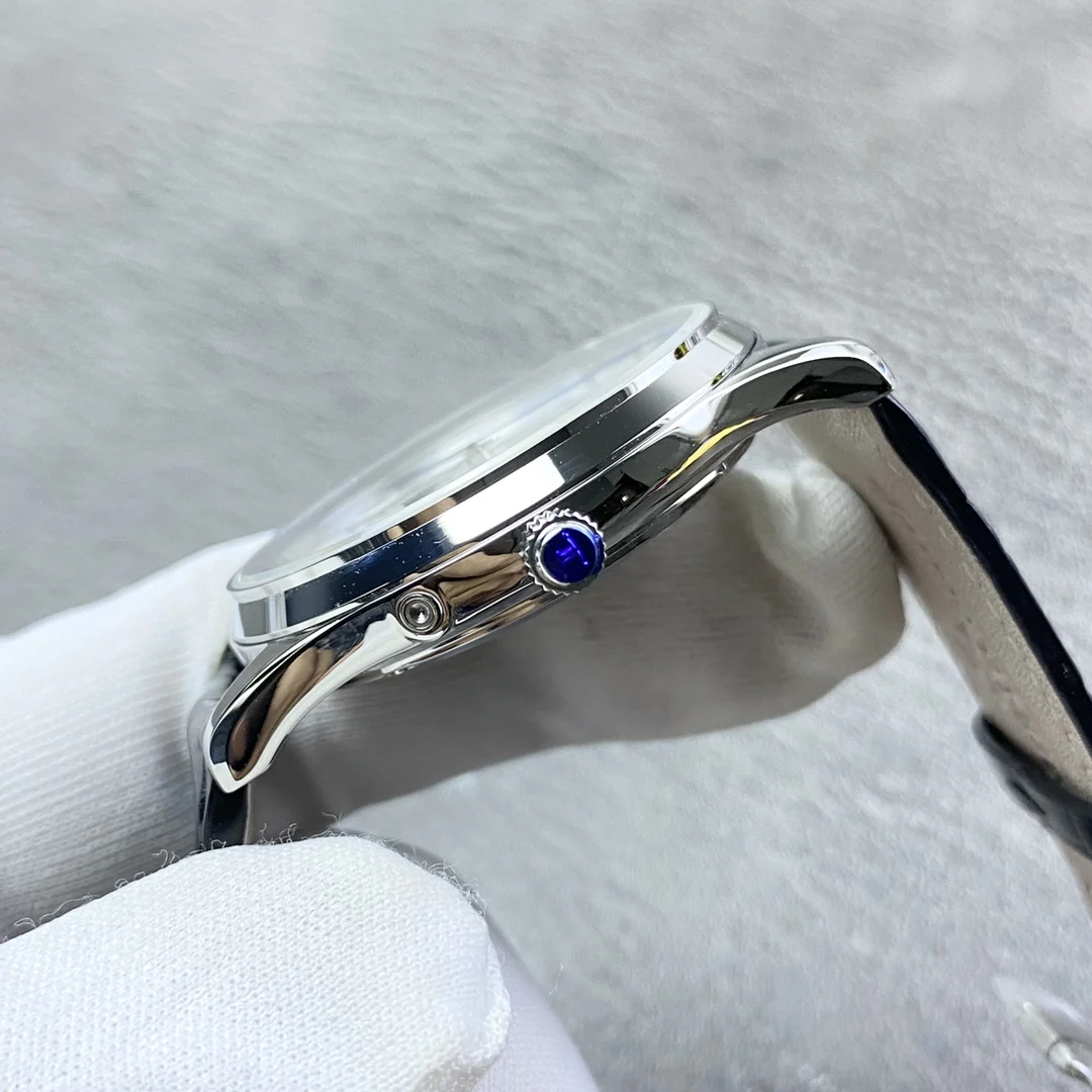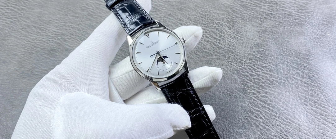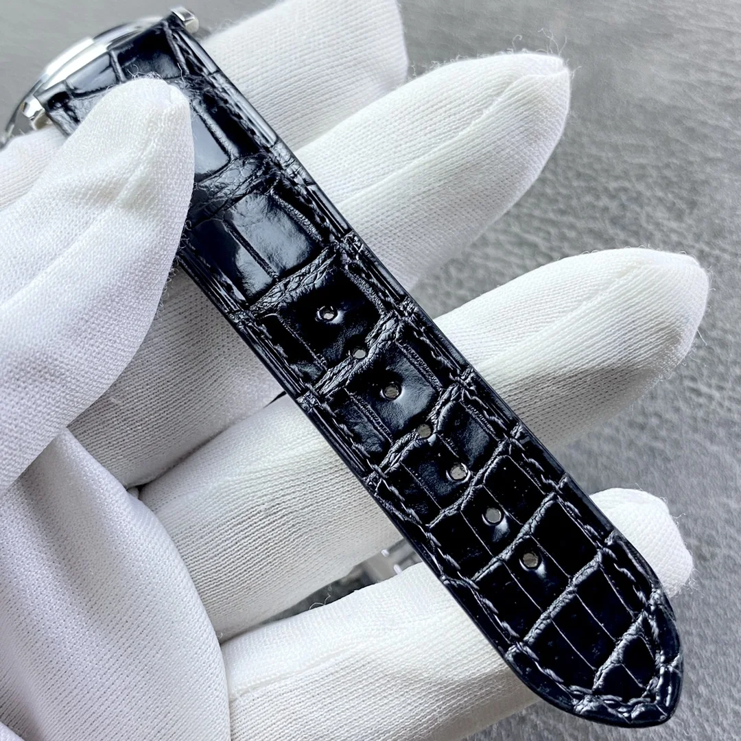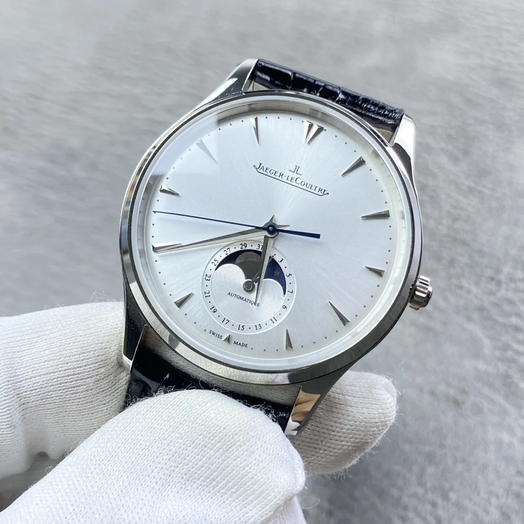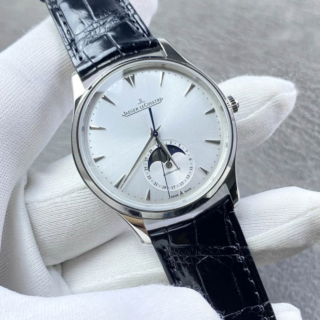 积家月相大师系列正装男表Q1368420.客户定制的短版美洲鳄鱼皮 表壳直径39mm 厚度9.9mm 数控精雕立体月相盘 完美还原原装 搭载Miyota9015魔改一体Cal.925/1机芯 镂空链条盒让机芯看起来 更积家 自动陀电镀了特调的K金色 并非市场上普通的红玫瑰金 实实在在匠心打造 Gr 厂出品 出货实拍