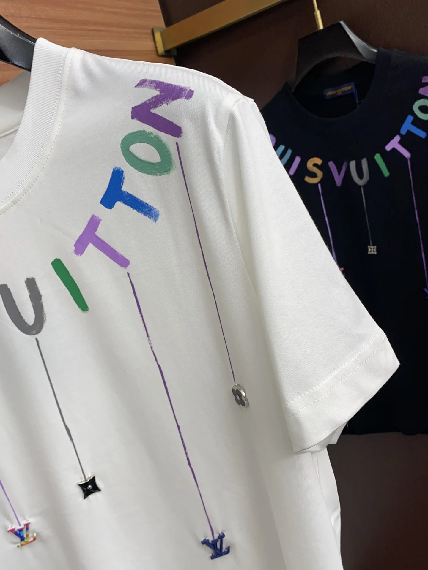 1v路易威登 ss新工艺手绘logo纯棉质微阔版圆领男士短袖T恤 新季新推系列将标识巧妙融入设计 塑就一系列充满复古风情的运动风单品 在这款百搭T恤上 带着一丝怀旧意蕴的图案低调呈现于衣身 袖口滚边相得益彰 优选特定原版开发双股精棉平纹面料 上身挺阔舒适度佳 外穿内搭随意搭配 M-3xL