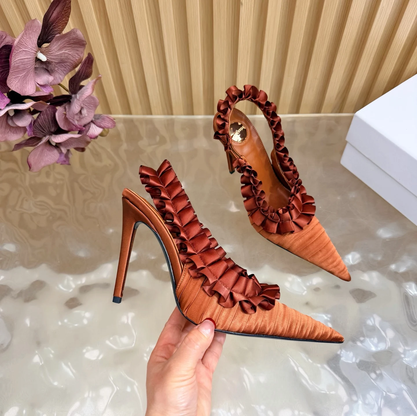 顶级品质Saint Laurent / 圣罗兰Lee真丝 开花尖头高跟鞋YSL姐姐的美丽尤物高跟鞋
