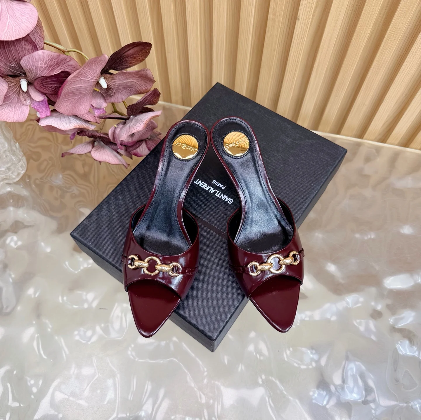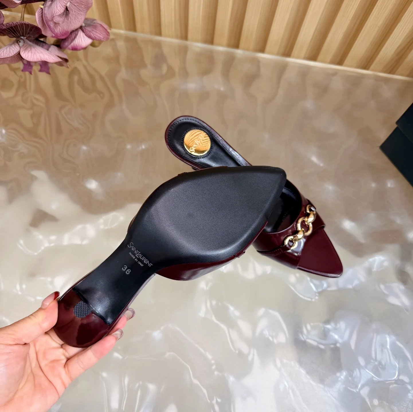Saint Laurent圣罗兰家YSL经典秀款猫跟凉鞋 鞋面材质.采用漆皮/真丝