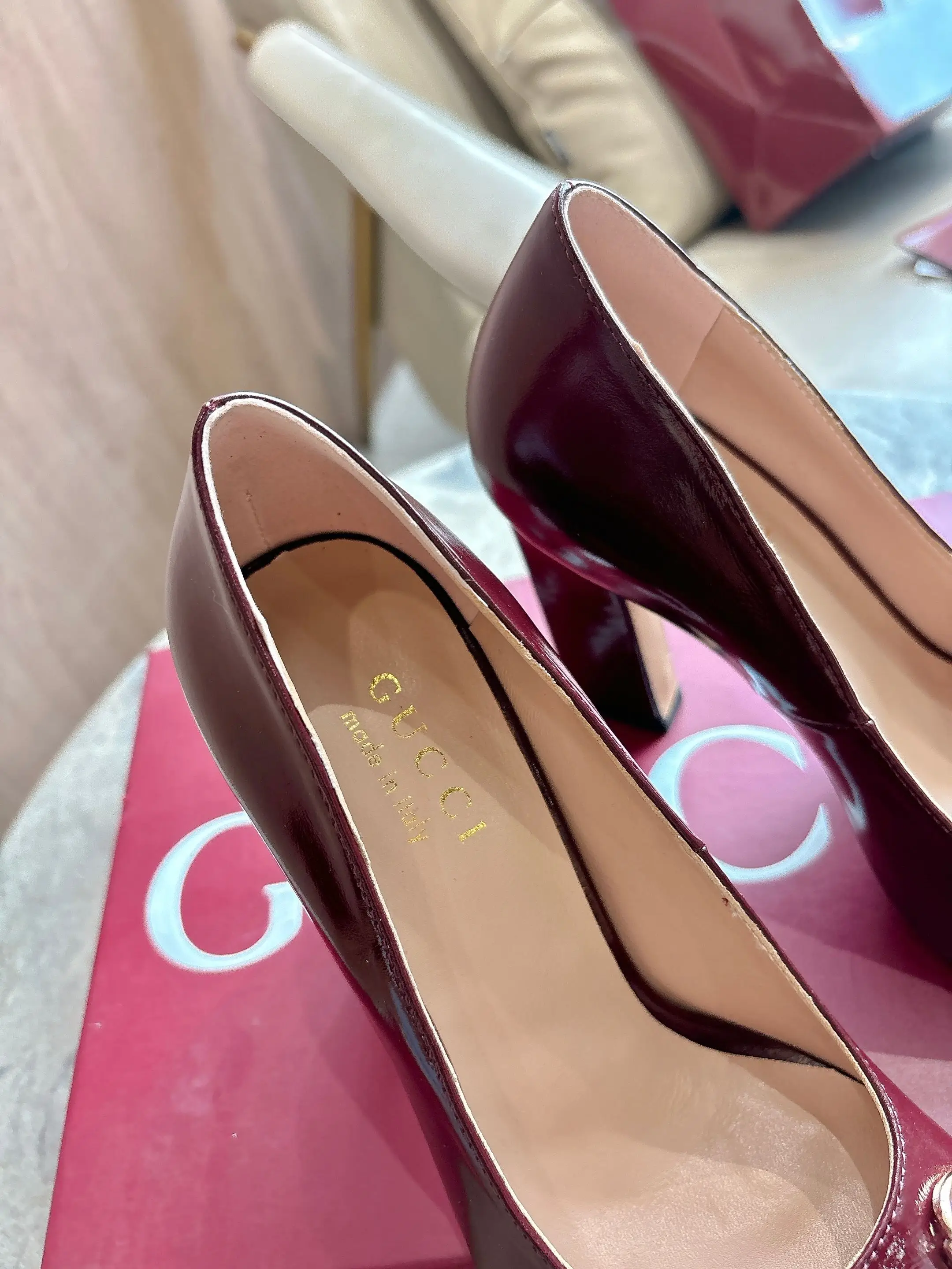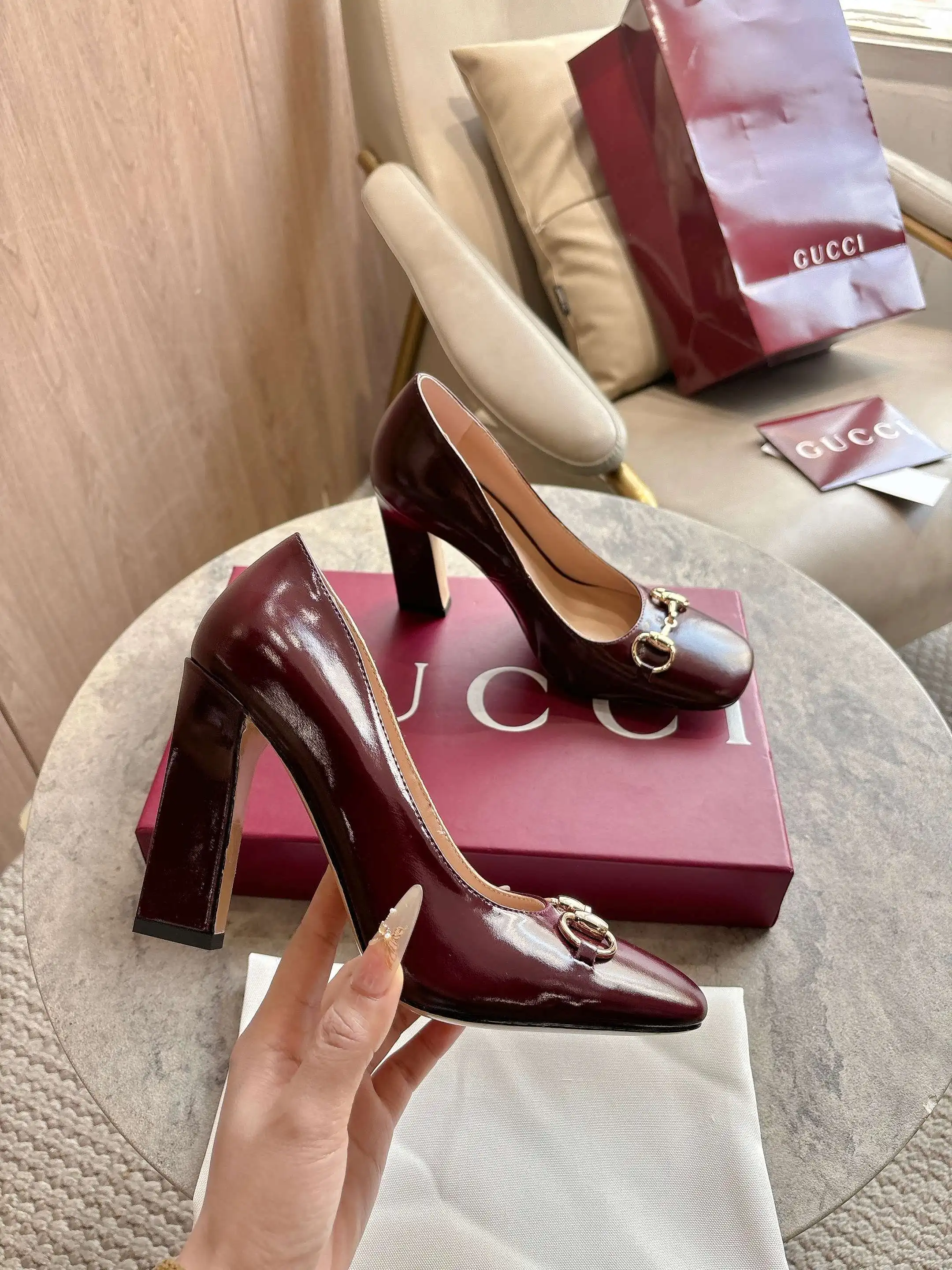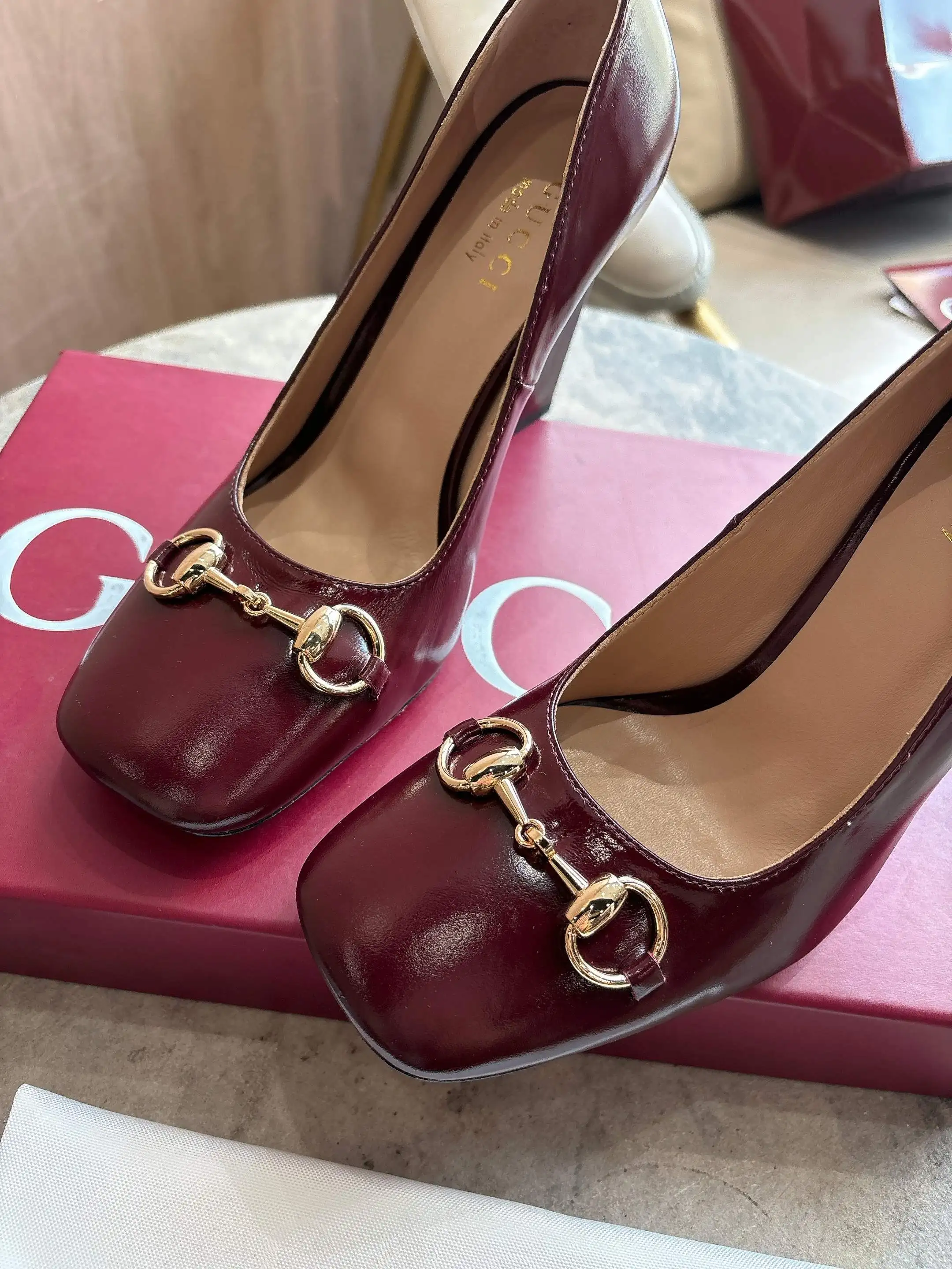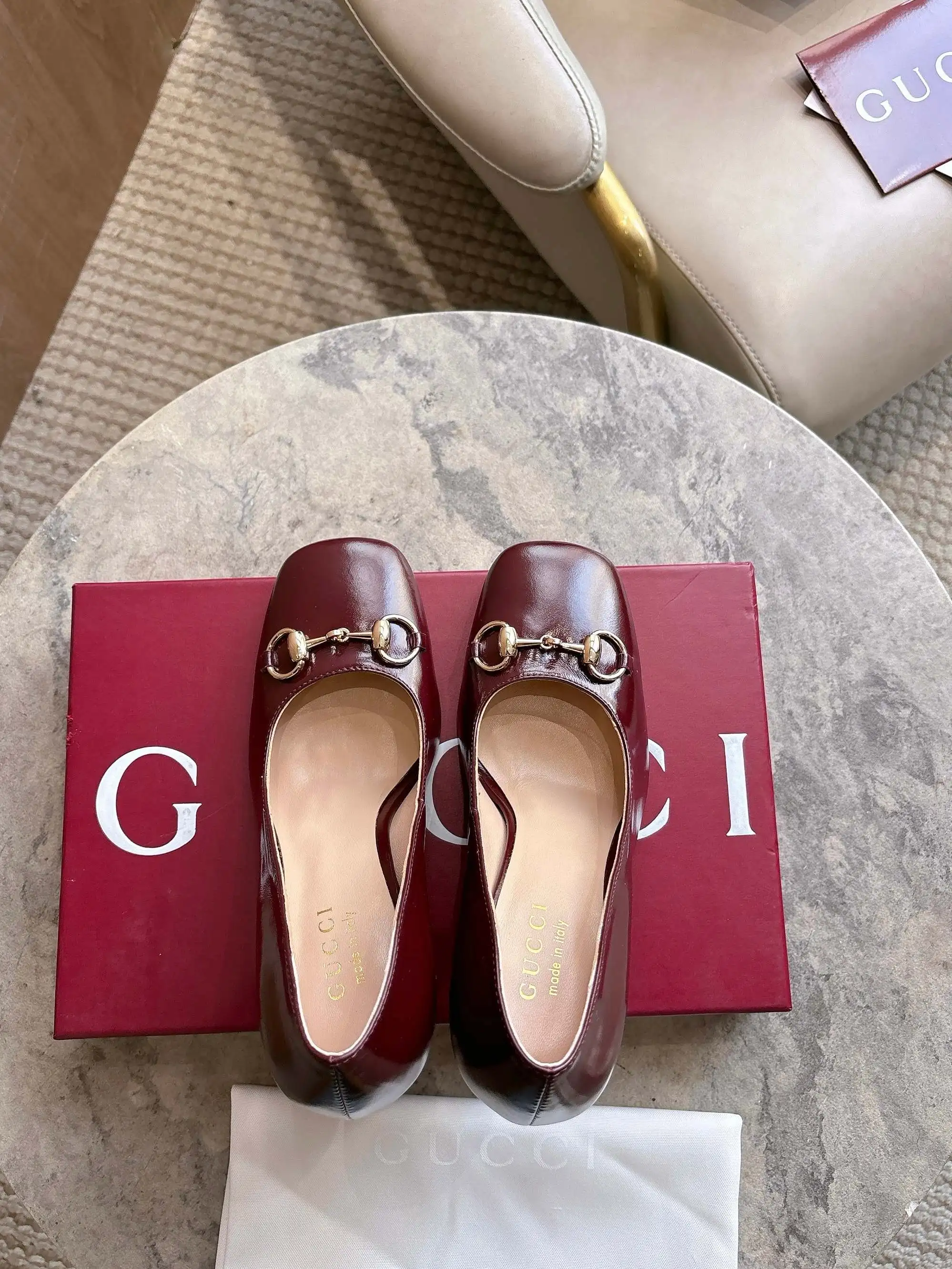 马衔扣和同款金属质感饰面 Made in Italy by Gucci 标识