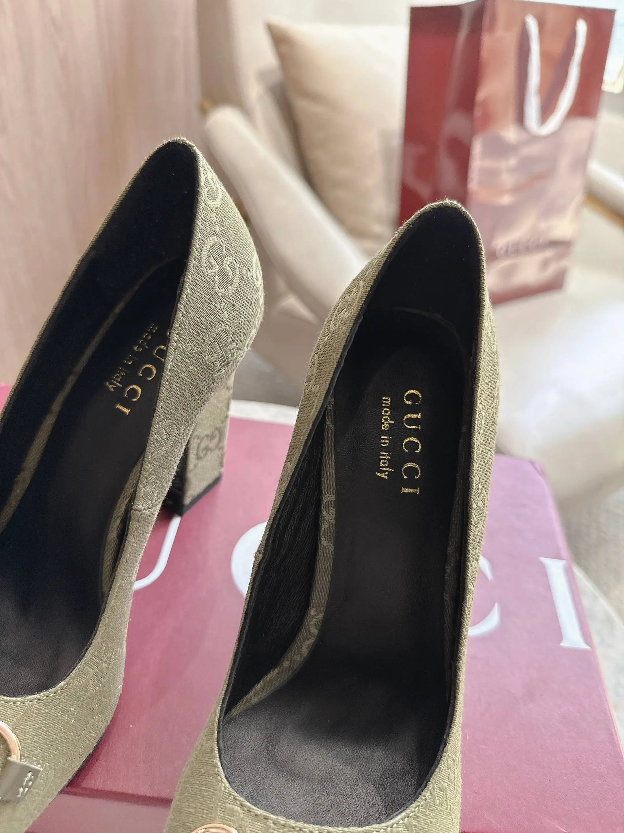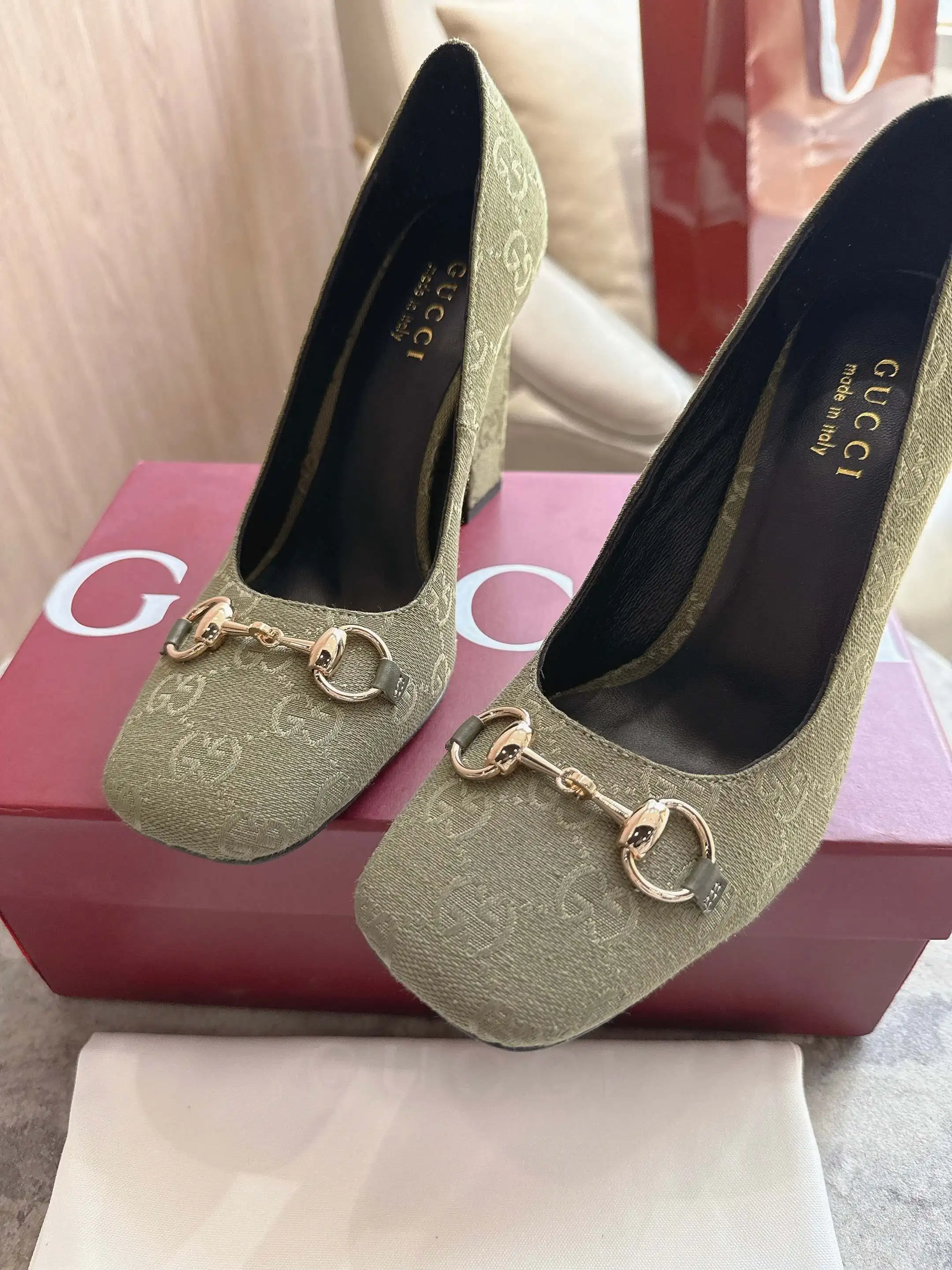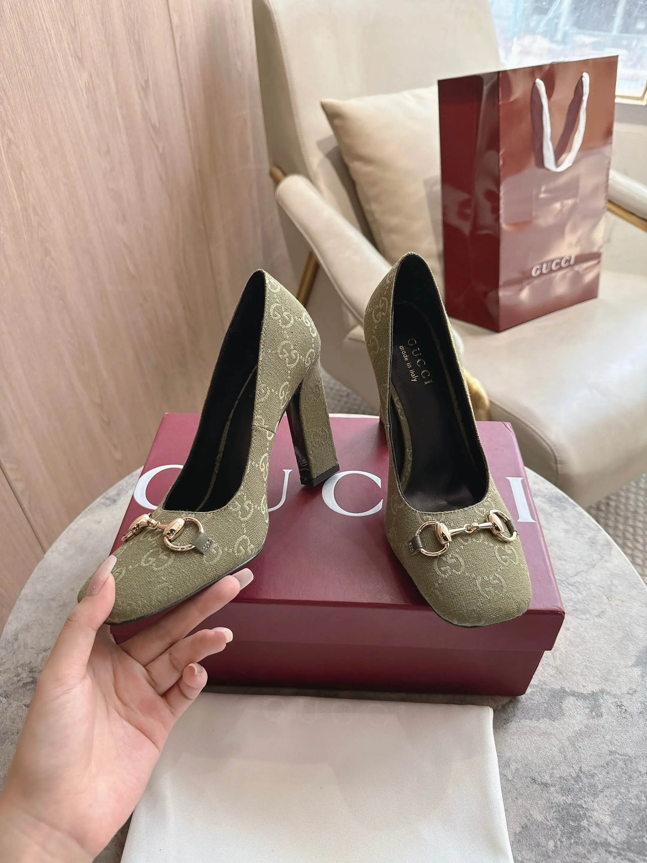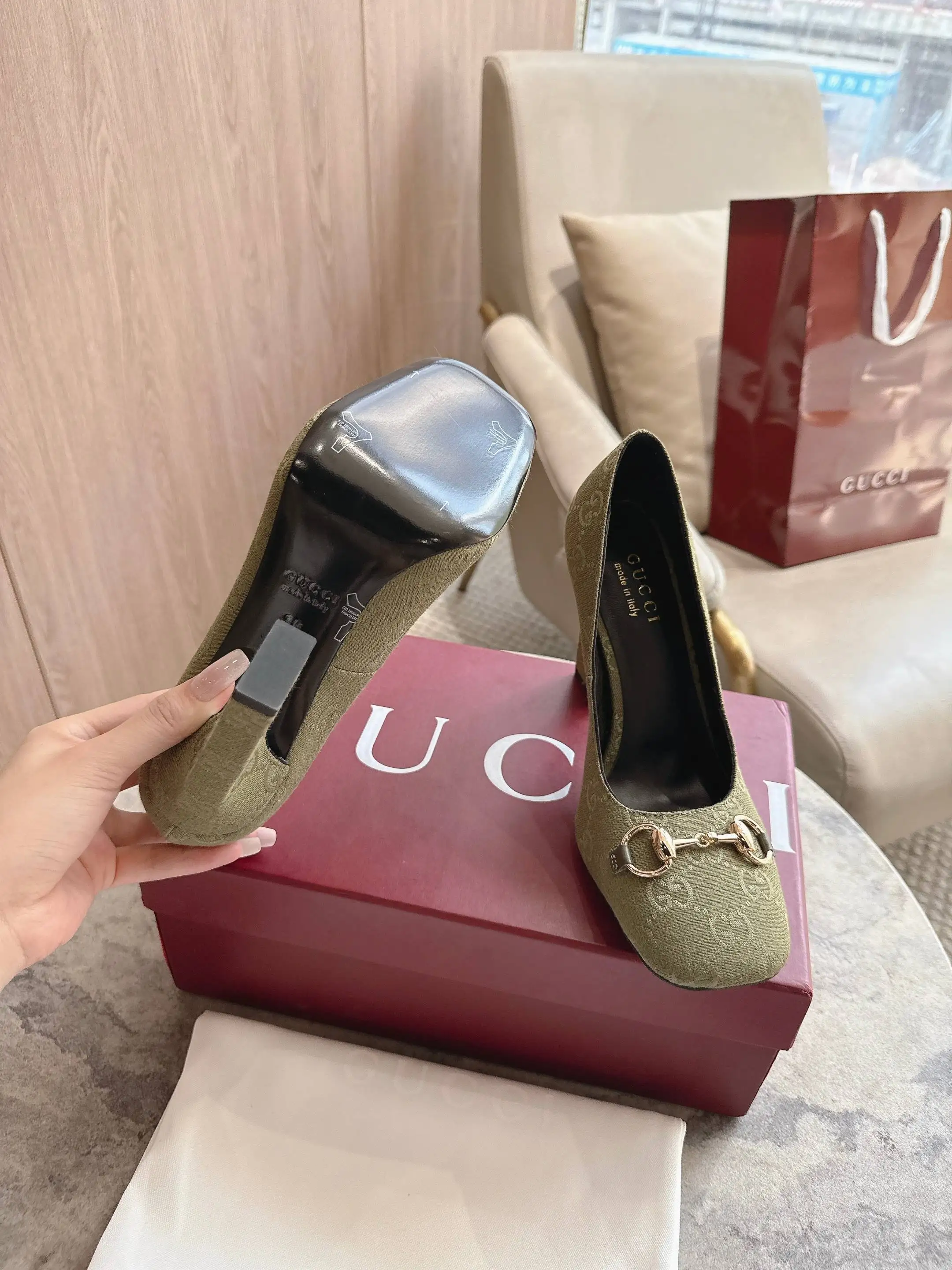 马衔扣和同款金属质感饰面 Made in Italy by Gucci 标识