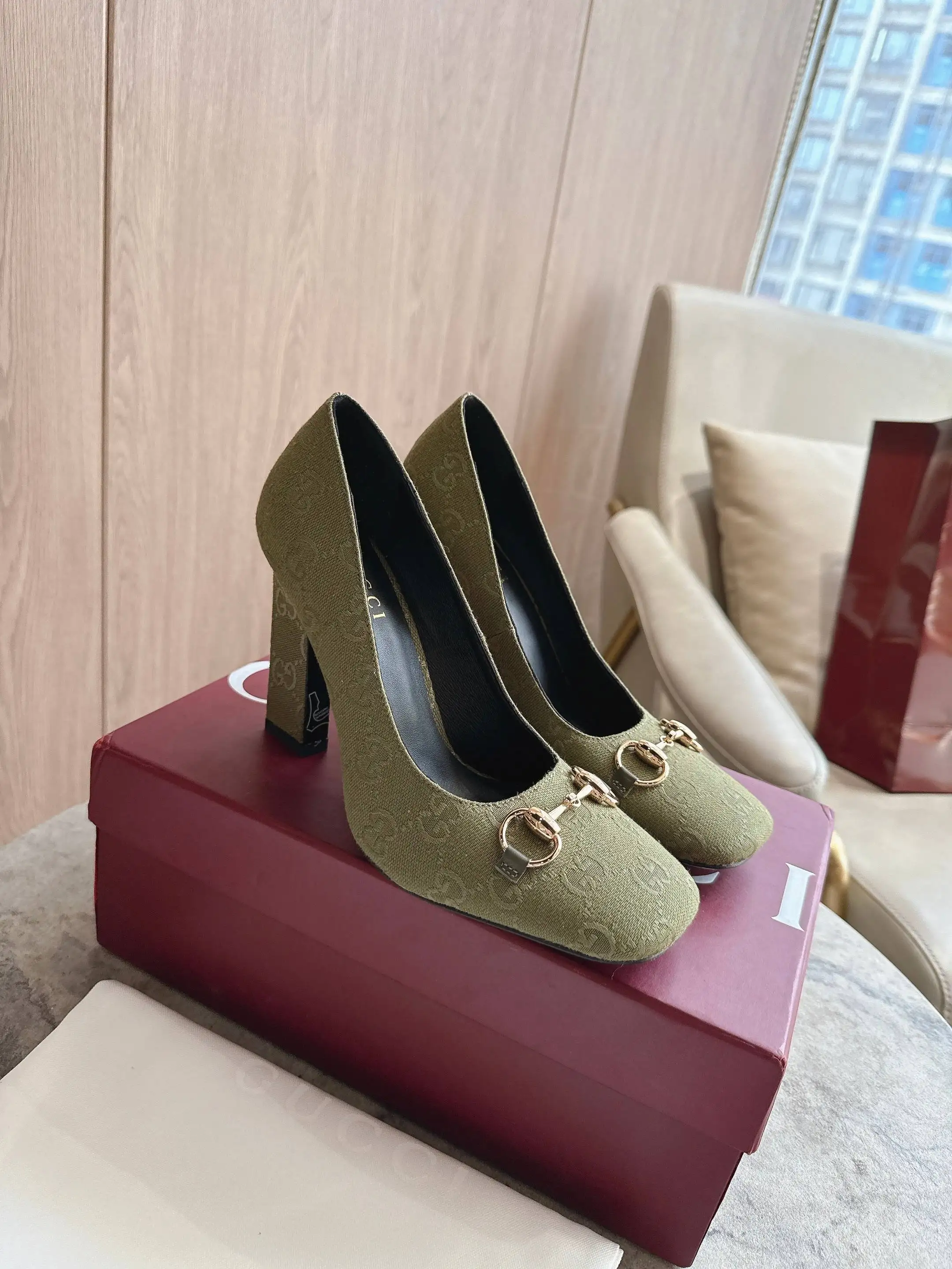 3079-1 绿G 35-42 2026春夏系列全新上市 这款单品亮相于 La Famiglia 系列 Incazzata 造型 Signora系列鞋履的设计灵感源自意大利语中的 夫人 一词 以简约利落的方形鞋头与纤细修长的粗跟焕新演绎品牌典藏浅口鞋 为雅致风尚注入一抹现代气息