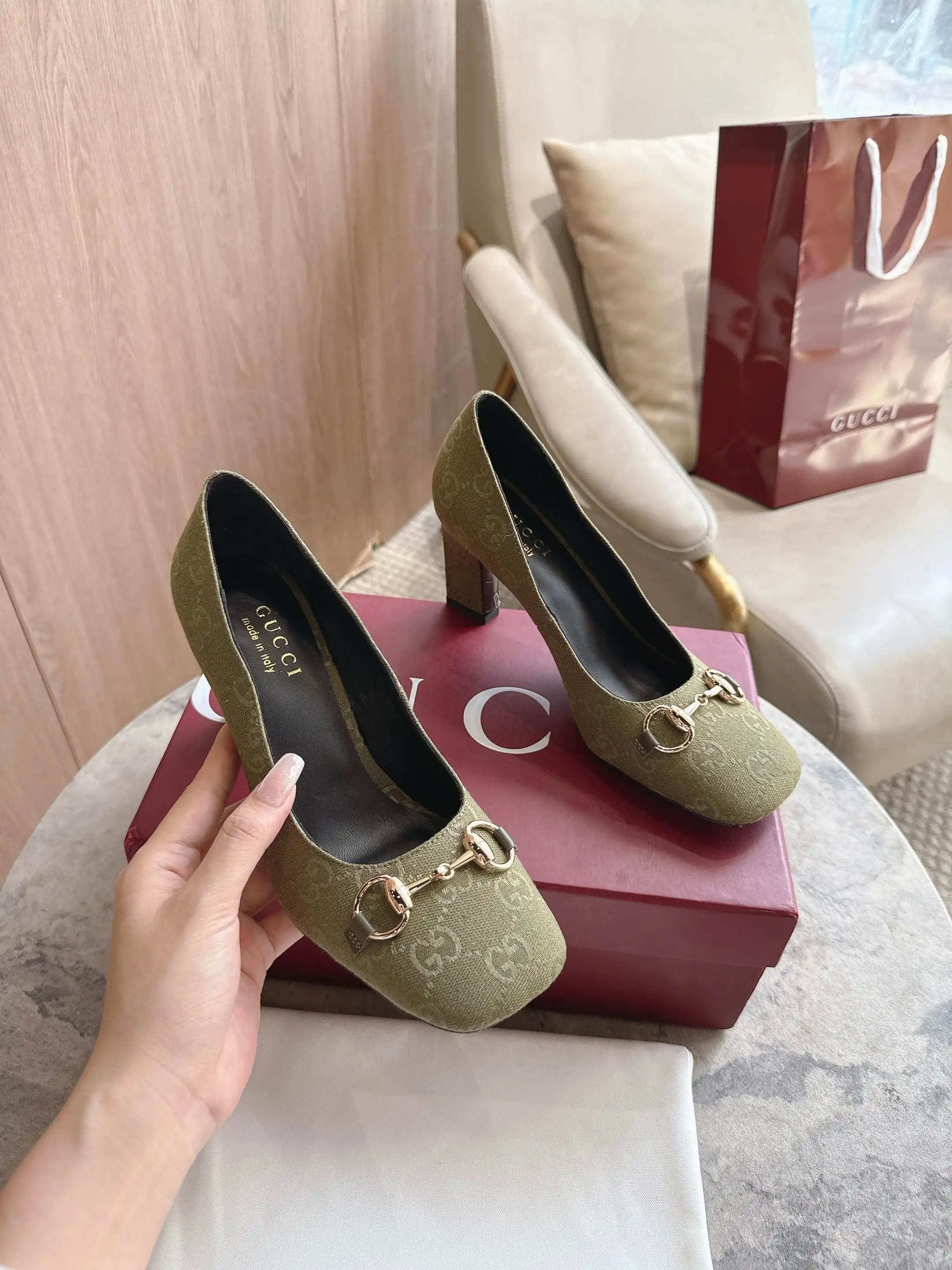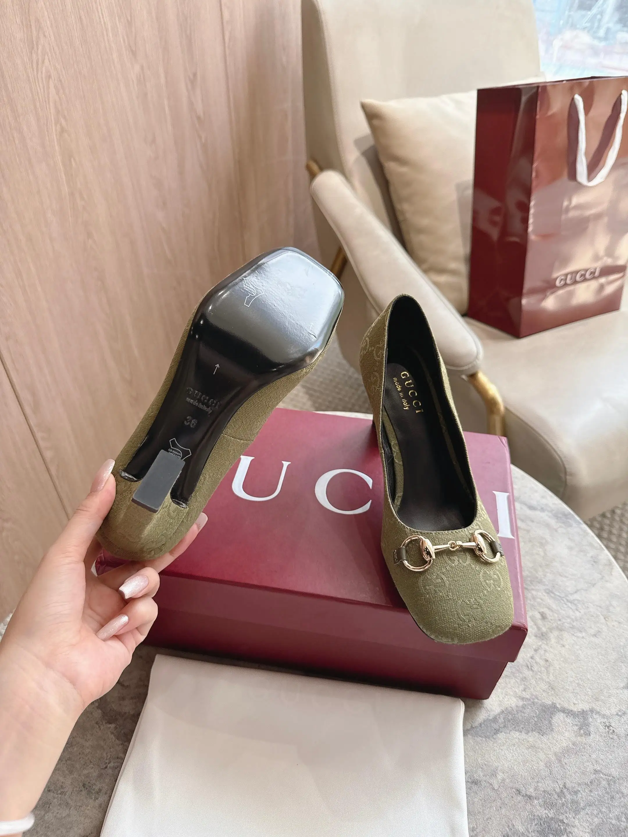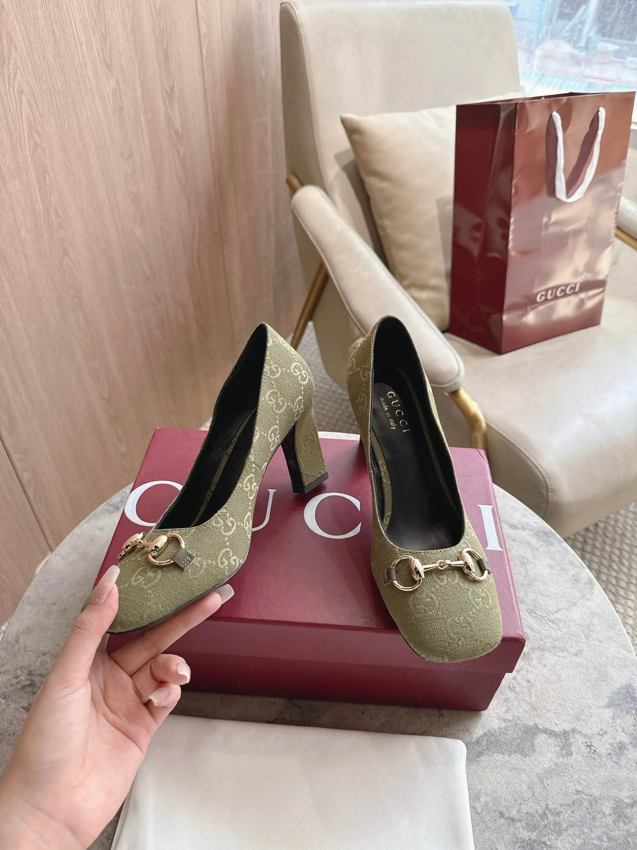3079-2 绿G 35-42 2026春夏系列全新上市 这款单品亮相于 La Famiglia 系列 Incazzata 造型 Signora系列鞋履的设计灵感源自意大利语中的 夫人 一词 以简约利落的方形鞋头与纤细修长的粗跟焕新演绎品牌典藏浅口鞋 为雅致风尚注入一抹现代气息