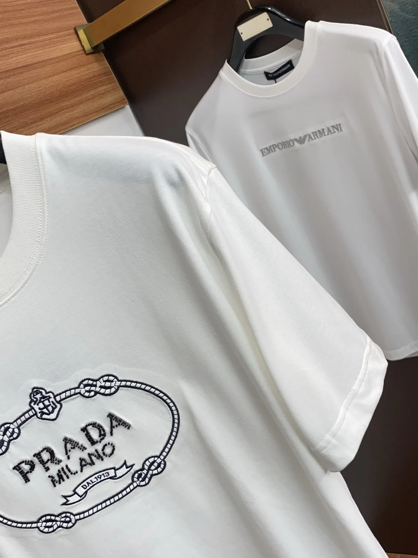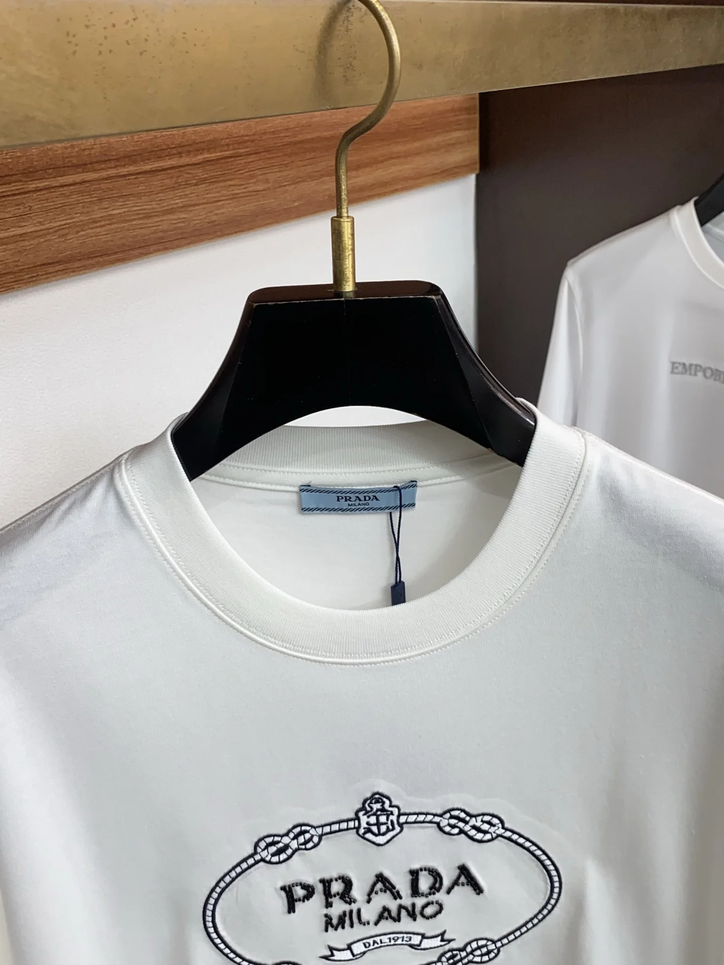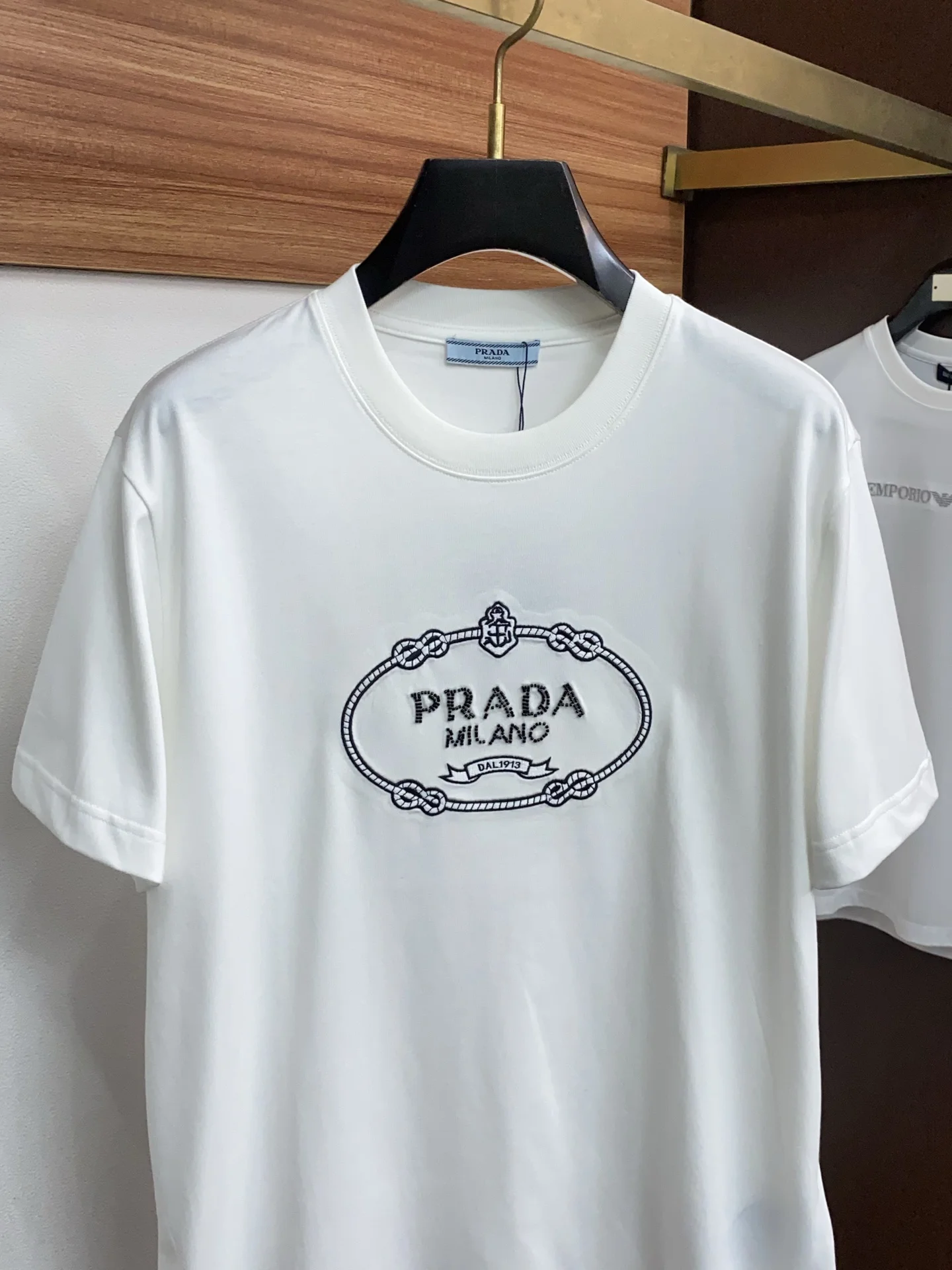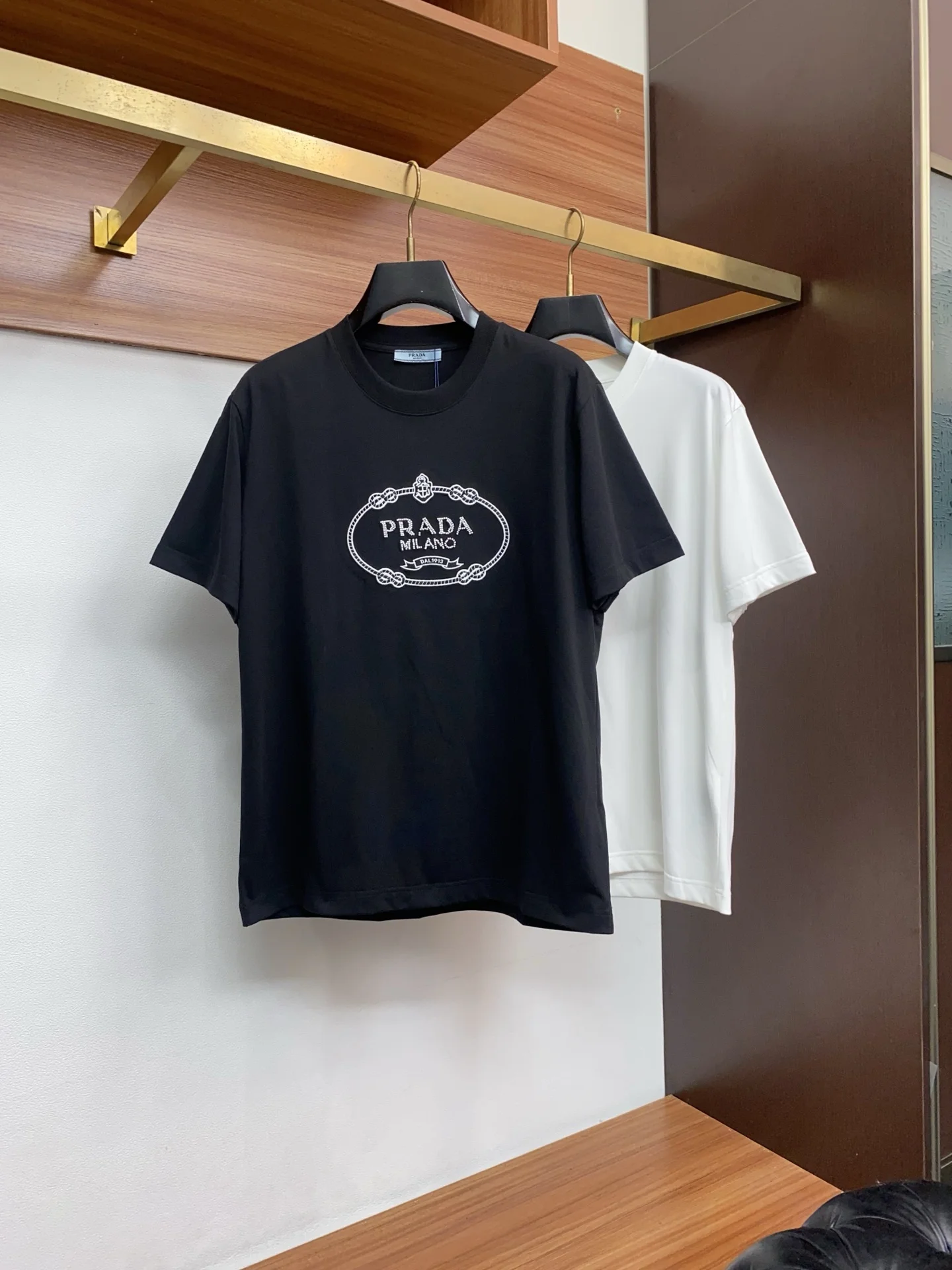 普拉达丝光棉圆领男士短袖T恤