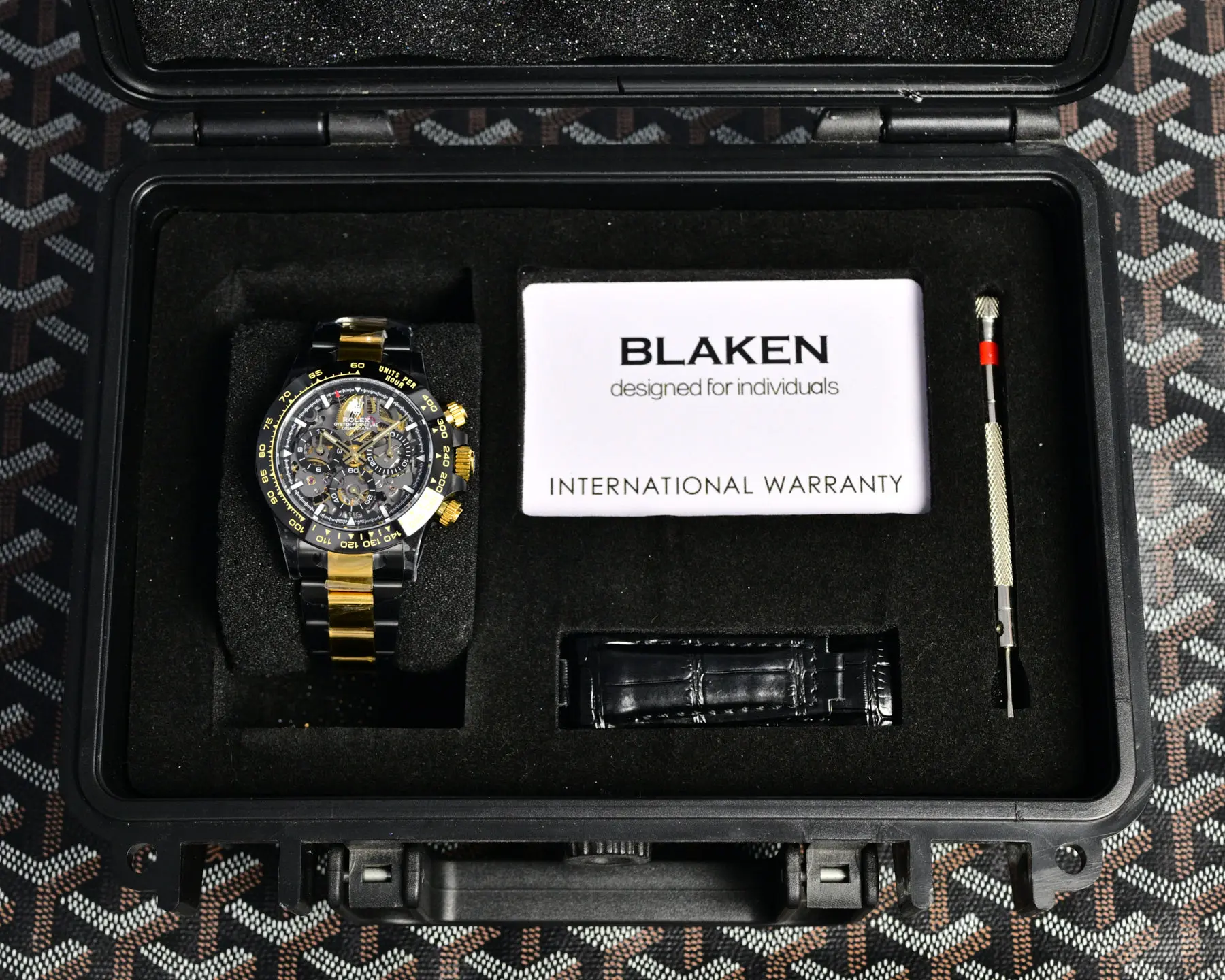 **BLAKEN UPGRADE ALERT!**第六代迪通拿碳黑复刻版 镂空设计 6th Gen Daytona Carbon Black Replica 40mm上手绝了 核心亮点一眼种草 12.2mm超薄机身 12.2mm Ultra-thin Case 甩开市面13.5mm普通款 全实心精钢 Solid Stainless Steel 打造 接缝几乎0缝隙 质感拉满 哑黑套件 Matte Black Kit 升级+多色圈口 Multi-color Bezels 可选 后期想换风格随便搭 个性党狂喜 表带双选项 硅胶款 Silicone Strap 轻便舒适/精钢款 Steel Strap 硬朗有范儿 CNC全程精雕 CNC Precision Engraving + 人工打磨 细节控直接爱住 机芯硬核 4802一体机芯 4802 Integrated Movement 搭载72-hour Long Power Reserve长储能 计时功能 Chronograph Function 和专柜同步 走时稳得一批 贴心设计 蚝式保险扣 Oyster Safety Clasp 防意外打开 实心链结 Solid Links 戴久了也舒服 操作还特简单 低调又有面儿 这波升级真的可