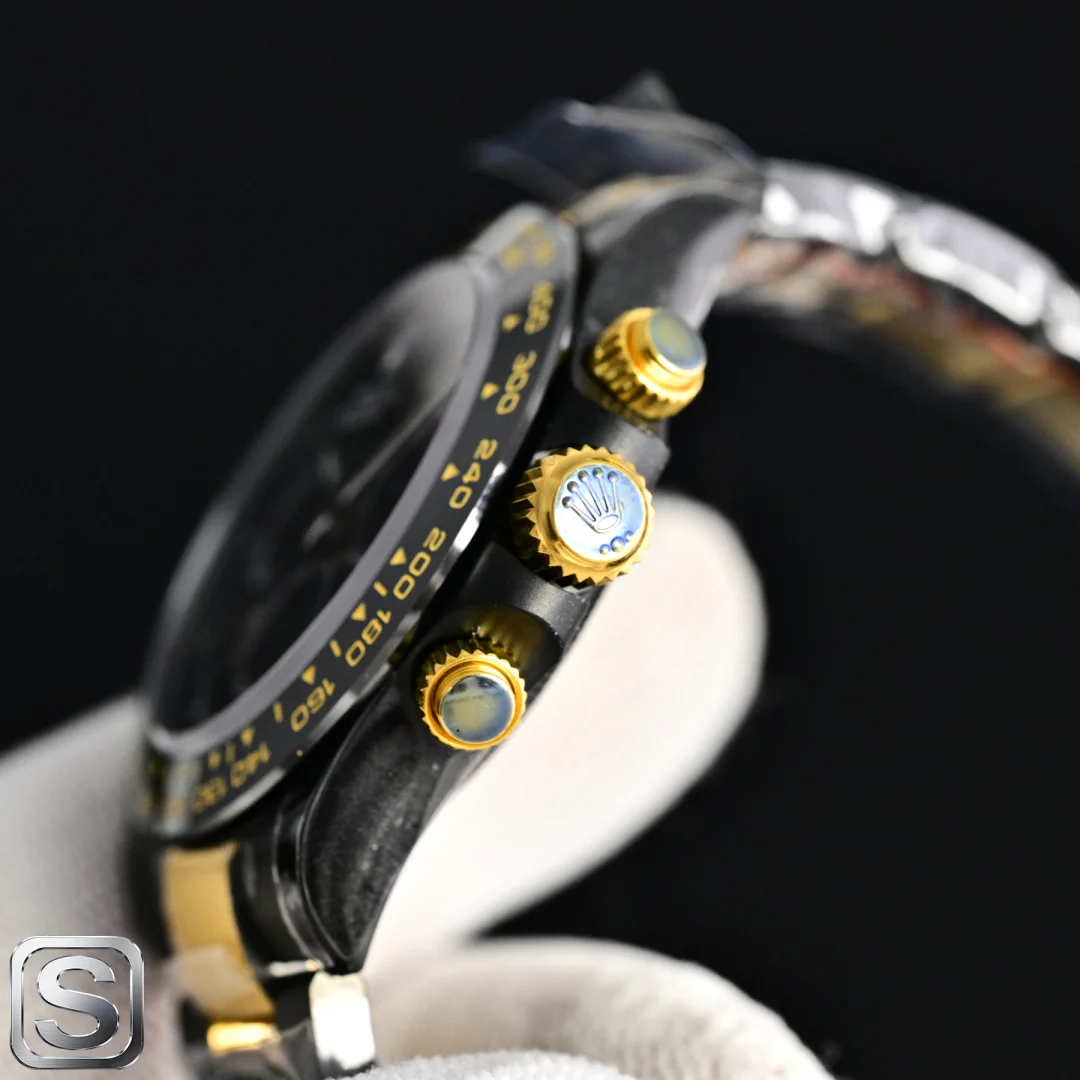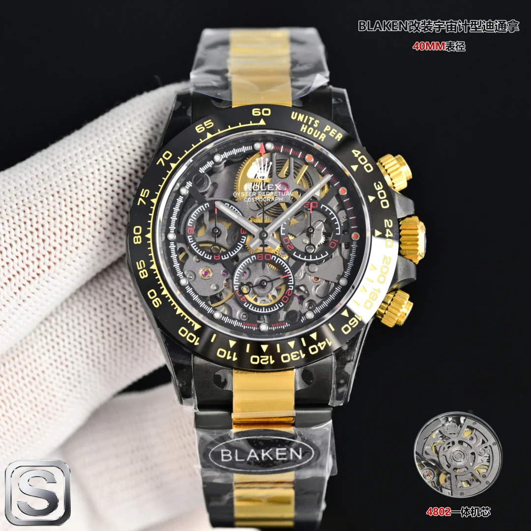 **BLAKEN UPGRADE ALERT!**劳力士 ROLEX 迪通拿系列 第六代迪通拿碳黑复刻版 镂空设计 6th Gen Daytona Carbon Black Replica 40mm上手绝了 核心亮点一眼种草 BKL 12.2mm超薄机身 12.2mm Ultra-thin Case 甩开市面13.5mm普通款 全实心精钢 Solid Stainless Steel 打造 接缝几乎0缝隙 质感拉满 哑黑套件 Matte Black Kit 升级+多色圈口 Multi-color Bezels 可选 后期想换风格随便搭 个性党狂喜 表带双选项 硅胶款 Silicone Strap 轻便舒适/精钢款 Steel Strap 硬朗有范儿 CNC全程精雕 CNC Precision Engraving + 人工打磨 细节控直接爱住 机芯硬核 4802一体机芯 4802 Integrated Movement 搭载72-hour Long Power Reserve长储能 计时功能 Chronograph Function 和专柜同步 走时稳得一批 贴心设计 蚝式保险扣 Oyster Safety Clasp 防意外打开 实心链结 Solid Links 戴久了也舒服 操作还特简单 低调又有面儿 这波升级真的可