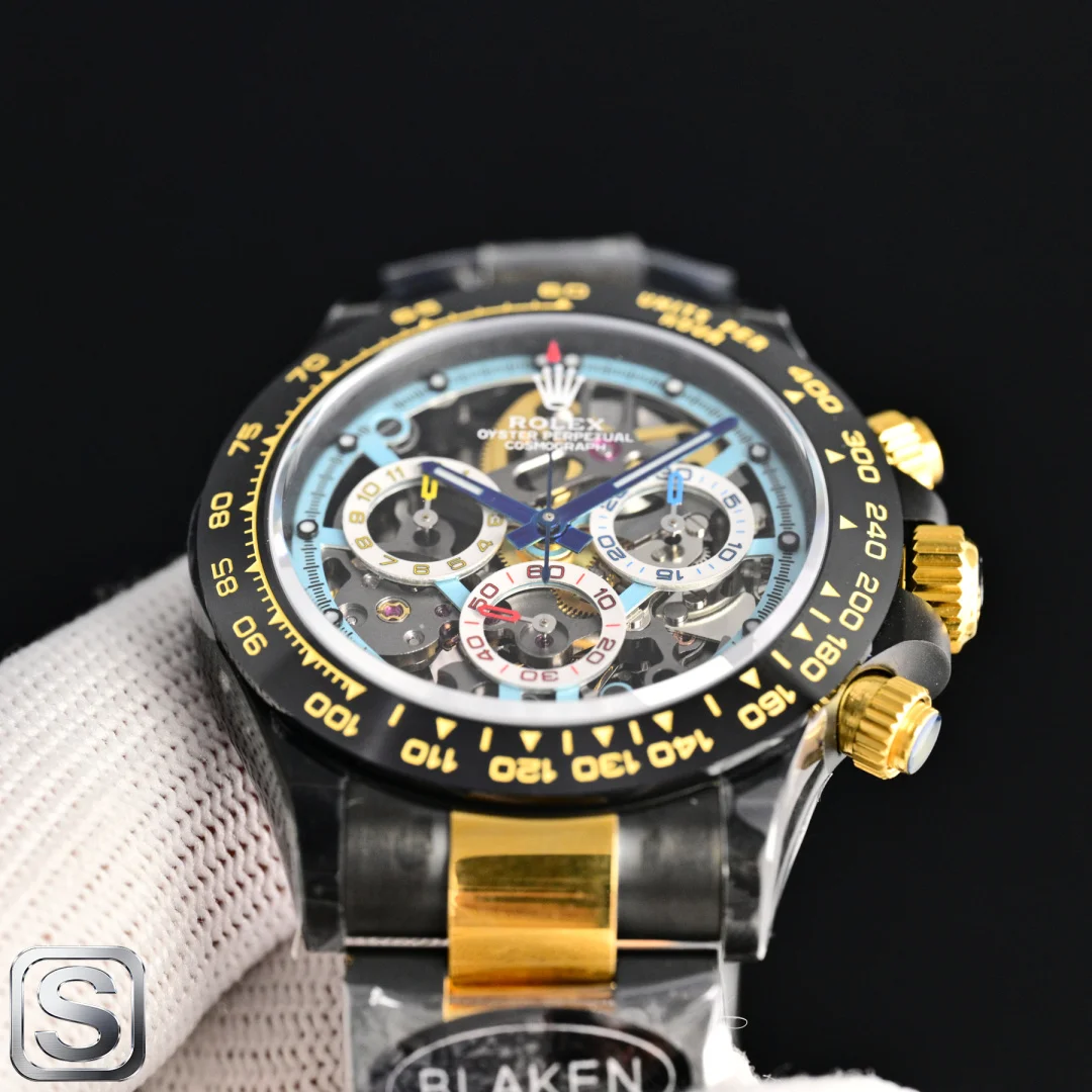 **BLAKEN UPGRADE ALERT!**劳力士 ROLEX 迪通拿系列第六代迪通拿碳黑复刻版 镂空设计 6th Gen Daytona Carbon Black Replica 40mm上手绝了 核心亮点一眼种草 BKL 12.2mm超薄机身 12.2mm Ultra-thin Case 甩开市面13.5mm普通款 全实心精钢 Solid Stainless Steel 打造 接缝几乎0缝隙 质感拉满 哑黑套件 Matte Black Kit 升级+多色圈口 Multi-color Bezels 可选 后期想换风格随便搭 个性党狂喜 表带双选项 硅胶款 Silicone Strap 轻便舒适/精钢款 Steel Strap 硬朗有范儿 CNC全程精雕 CNC Precision Engraving + 人工打磨 细节控直接爱住 机芯硬核 4802一体机芯 4802 Integrated Movement 搭载72-hour Long Power Reserve长储能 计时功能 Chronograph Function 和专柜同步 走时稳得一批 贴心设计 蚝式保险扣 Oyster Safety Clasp 防意外打开 实心链结 Solid Links 戴久了也舒服 操作还特简单 低调又有面儿 这波升级真的可 立即抢购