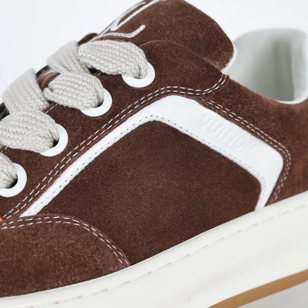 Classic 牛皮革 圆头系带 低帮 生活休闲鞋 原版开发 市面唯一正确版本 原版购入开发 欢迎对比 运动鞋于 2025 秋冬男士系列初次亮相 以光滑牛皮革塑造考究设计 可轻松融入各式造型 瞩目 LV 字母标注鞋侧 轻盈橡胶外底点缀 Vuitton 标识 材料使用原版定制进口头层牛皮 内里使用原版进口透气网里 原版开模橡胶发泡材质大底 内增高4CM
