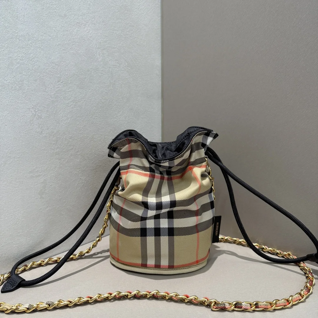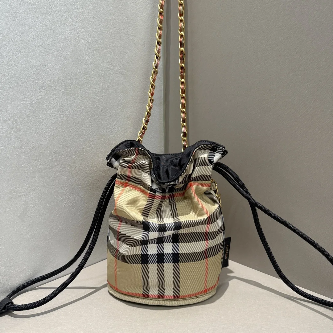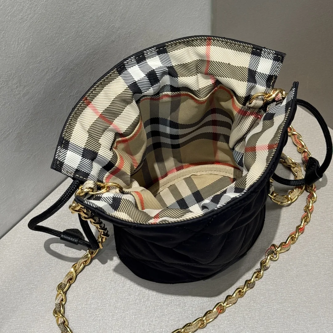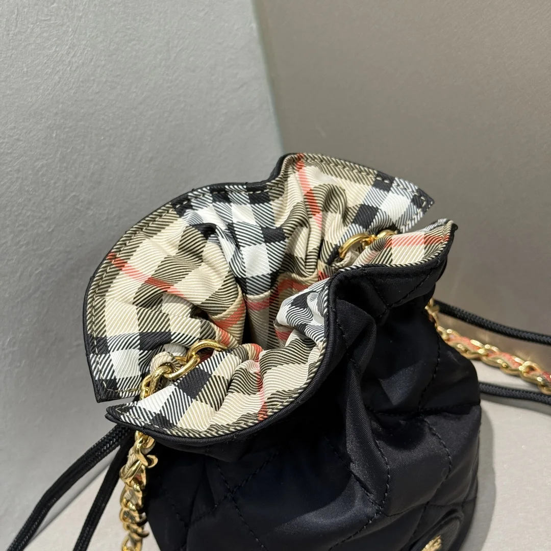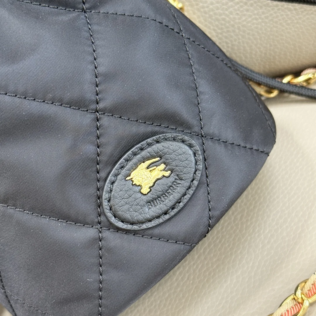 原厂 柔软立挺的 Horseshoe 收纳袋 汲取英伦乡间雅致灵感 选用绗缝尼龙面料打造 搭配 Burberry格纹内讨 点缀牛皮装饰和骑士印章设计 源自 1980 年代品牌包款的典藏图案 链条肩背带交织标志性沙色 Burberry 格纹 可随心打造斜挎或肩背造型