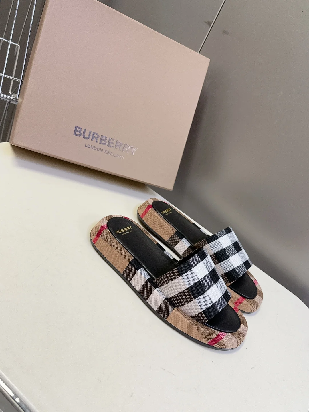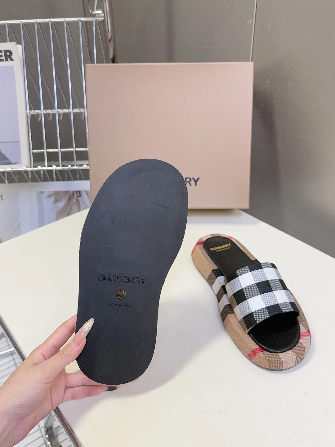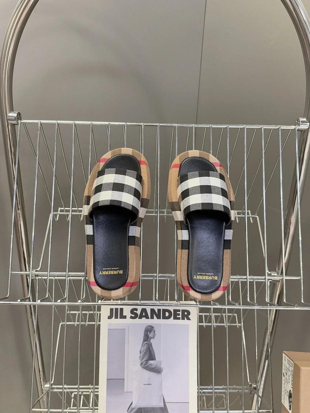 Burberry博柏利春夏最新款拖鞋 凉鞋 超多明星时尚博主种草 夏天必备 上脚超洋气鞋面进口品牌布 内里采用混种羊皮 原版开模橡胶大底 Size 女35-40 男39-44