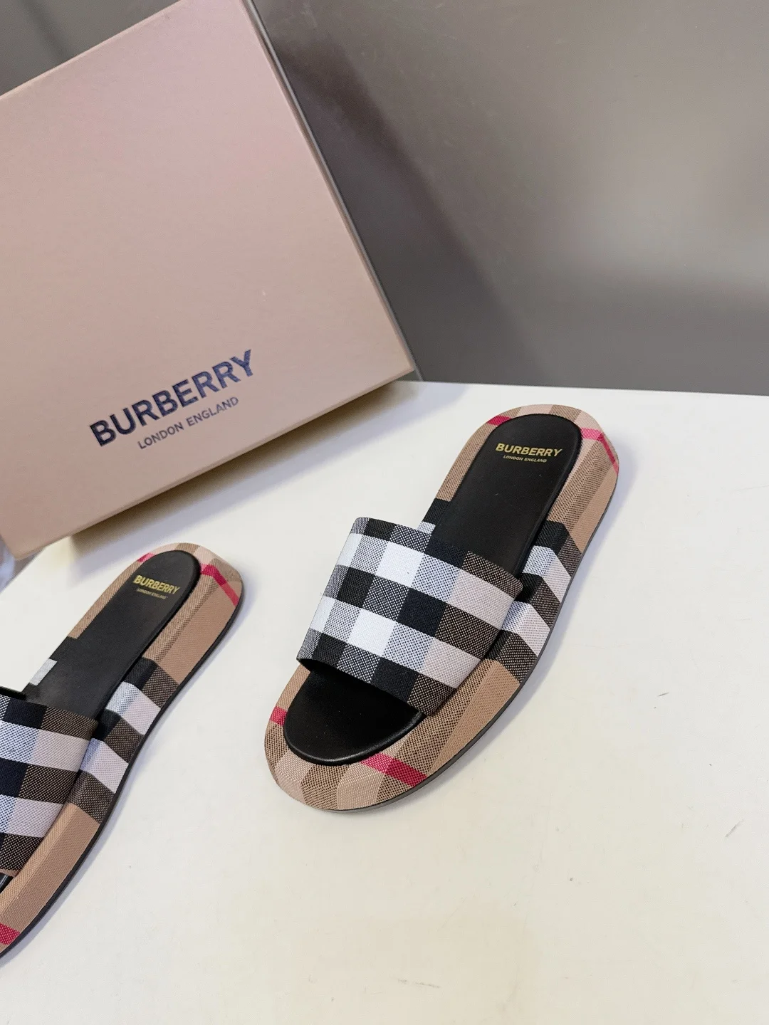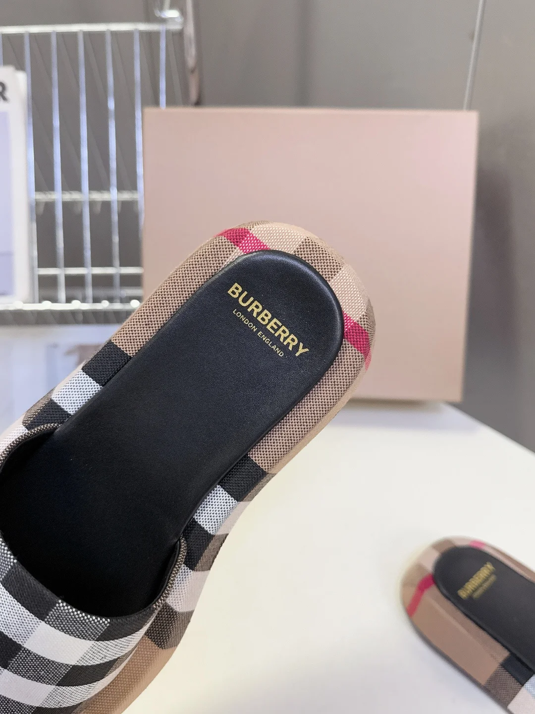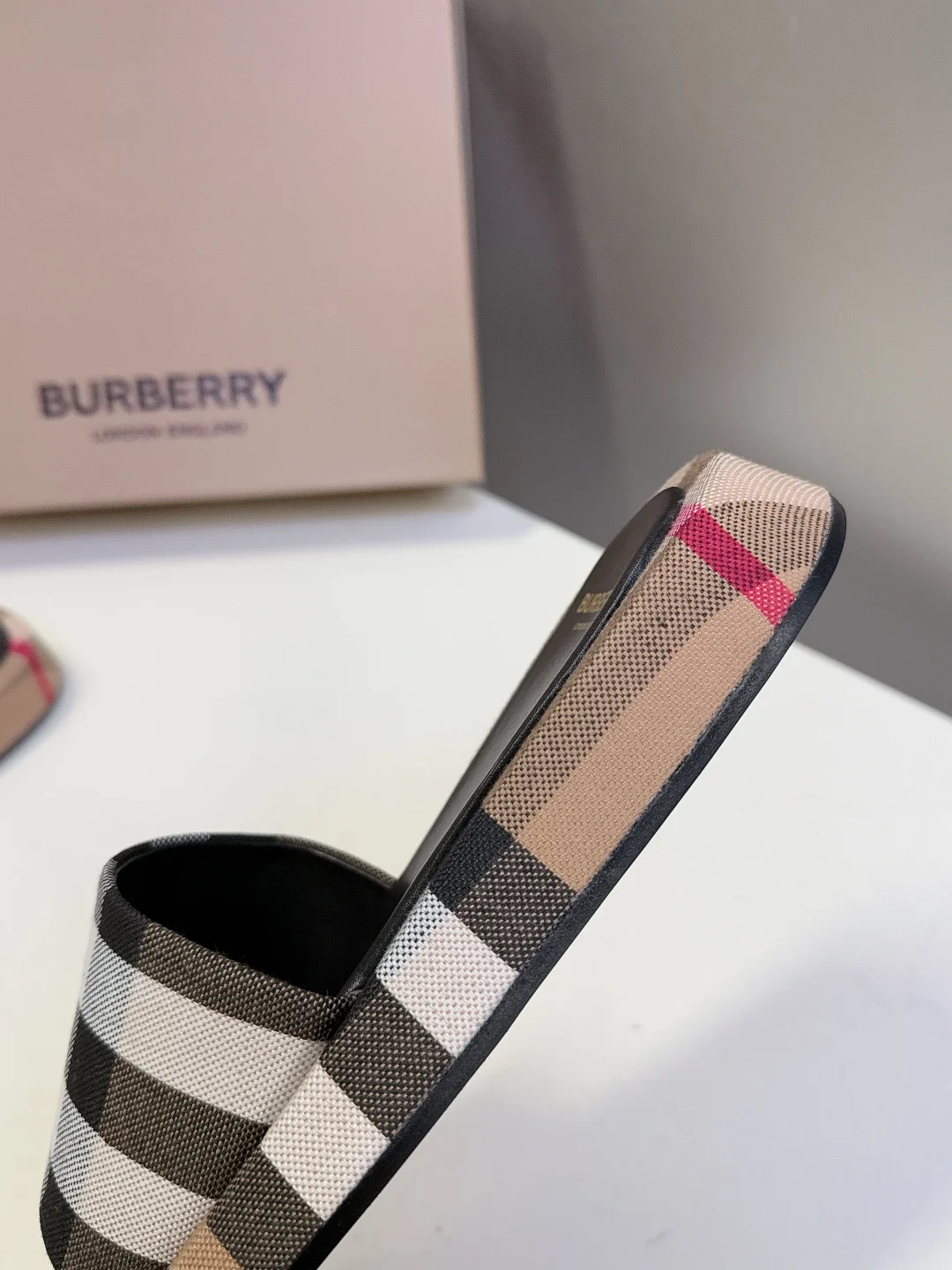 Burberry博柏利春夏最新款拖鞋 凉鞋 超多明星时尚博主种草 夏天必备 上脚超洋气鞋面进口品牌布 内里采用混种羊皮 原版开模橡胶大底 Size 女35-40 男39-44