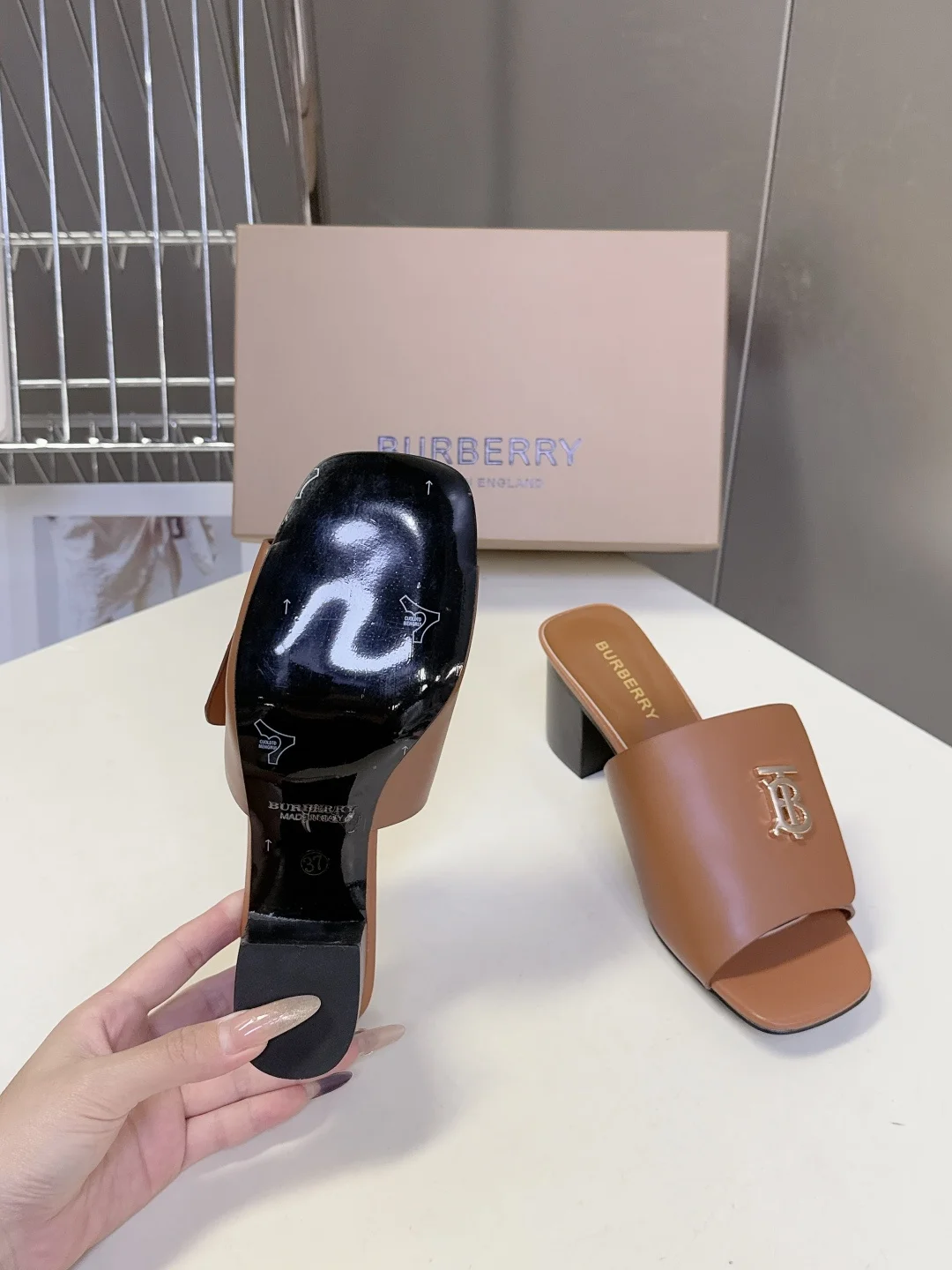 Burberry博柏利春夏最新款拖鞋 凉鞋 超多明星时尚博主种草 夏天必备 上脚超洋气鞋面进口小牛皮 内里采用混种羊皮 跟高6CM原版开模仿真皮大底 Size 35-40