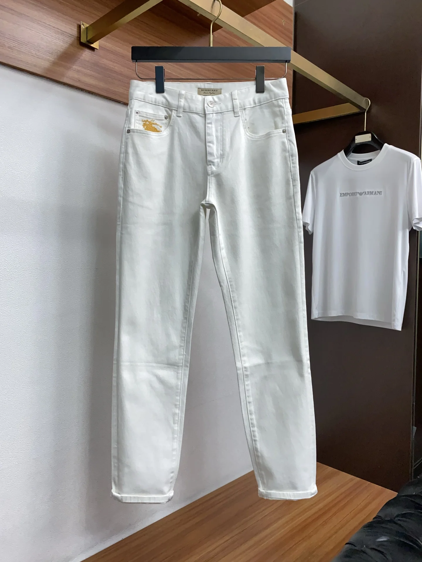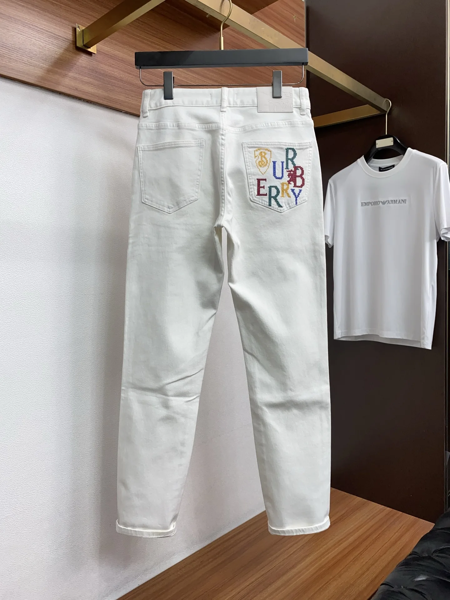 巴宝莉春夏新款修身小直筒牛仔裤