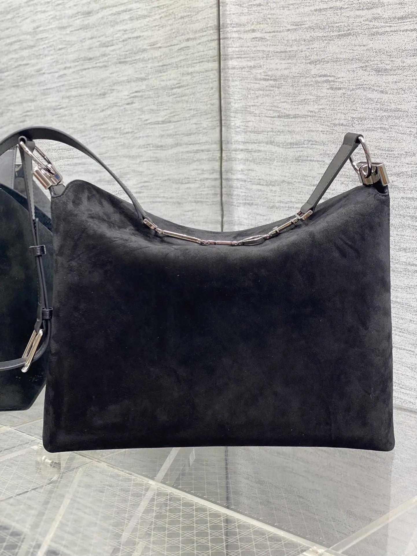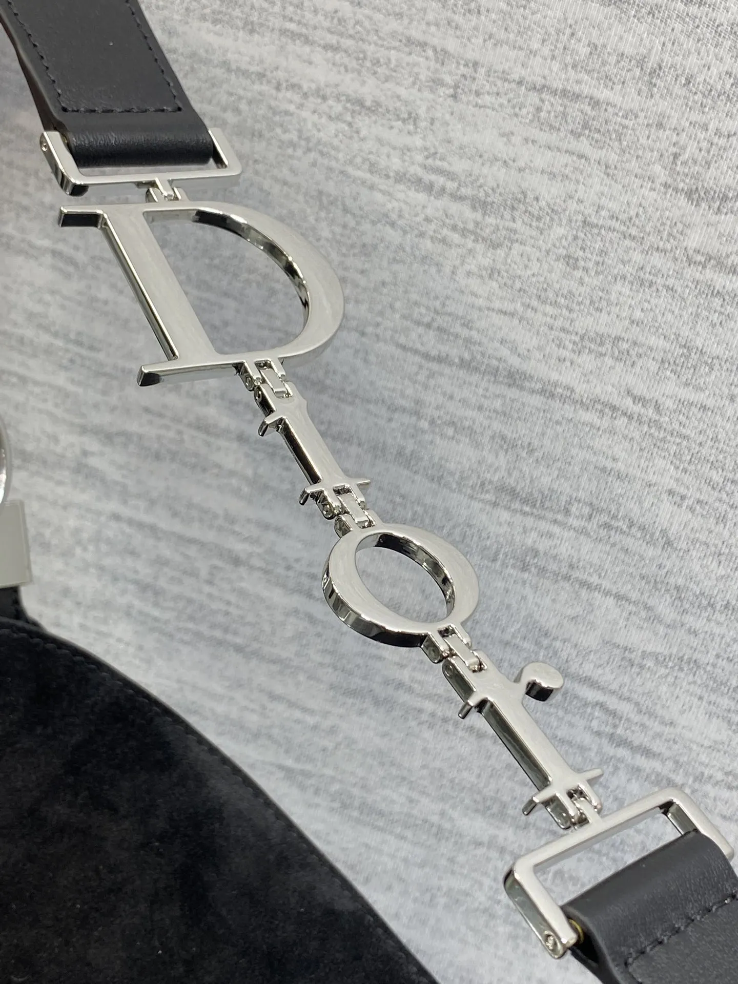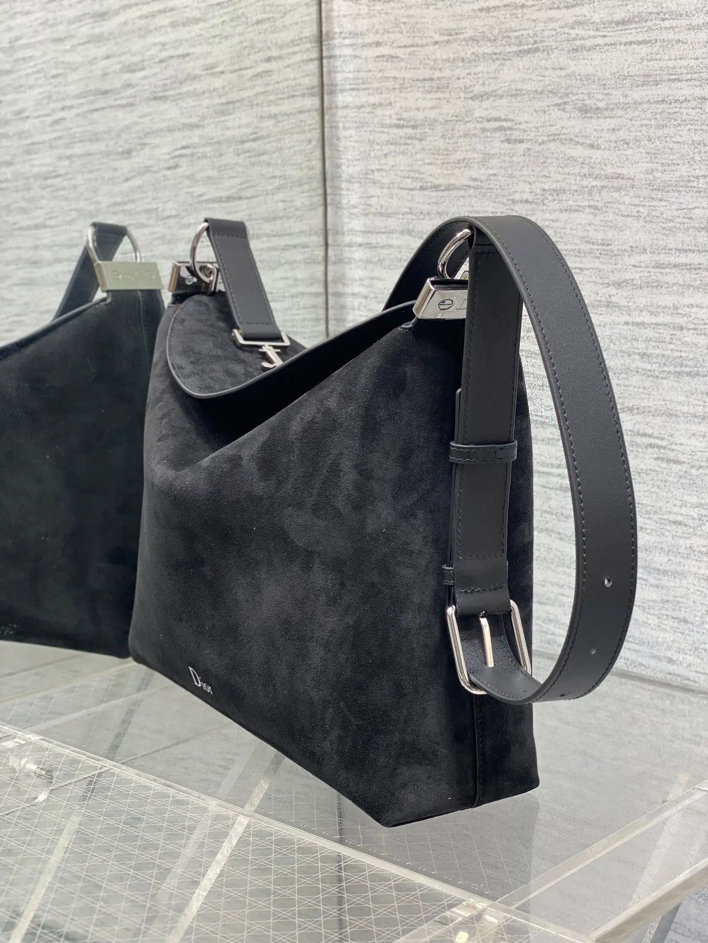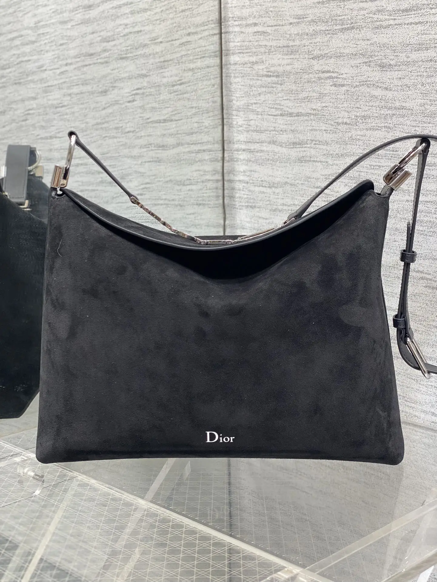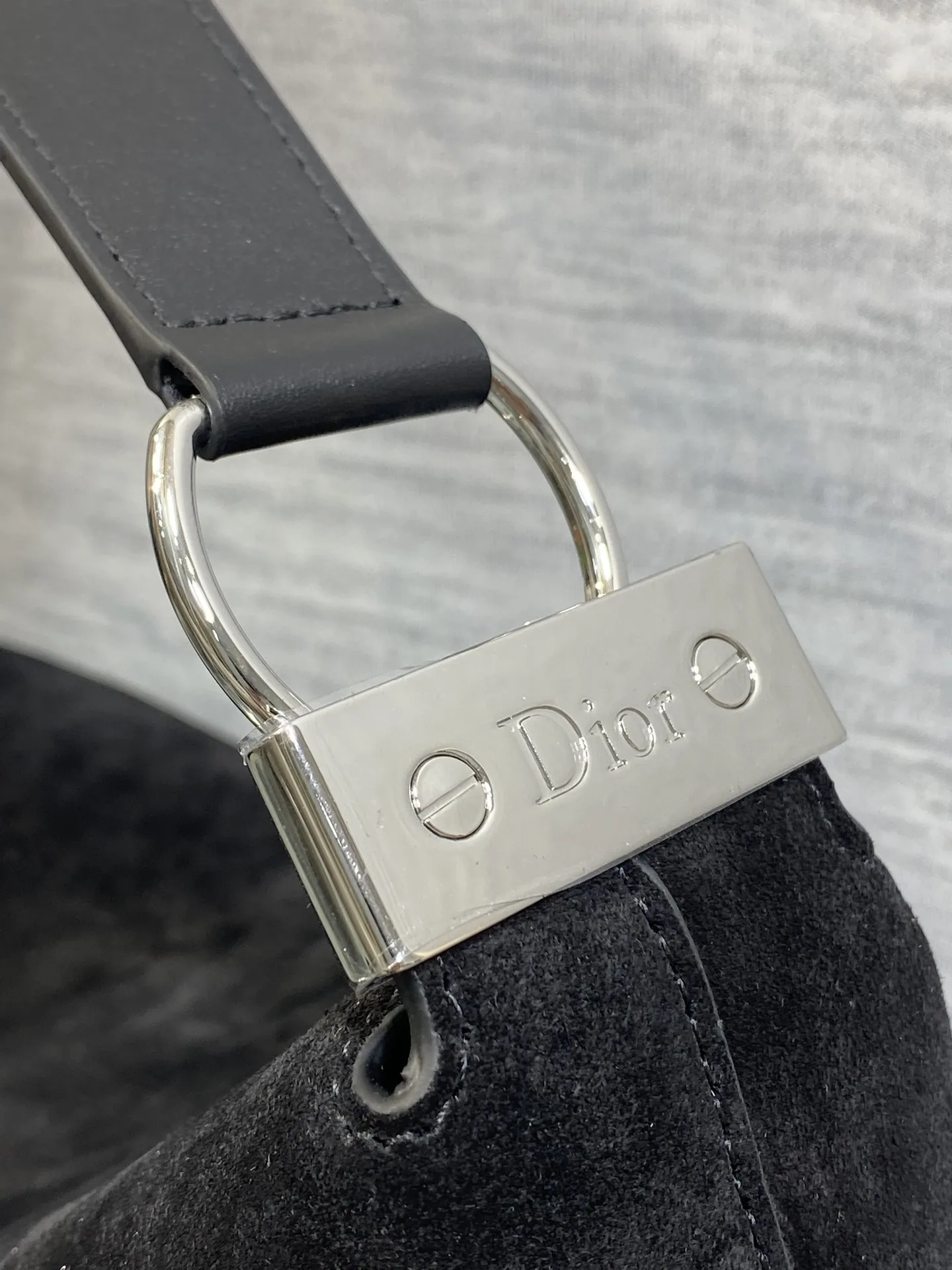 中号银扣Dior2026春夏新款Chrustian这款Hobo包采用黑绒拼皮 触感柔软 春季氛围感满满 月牙包型+金属
