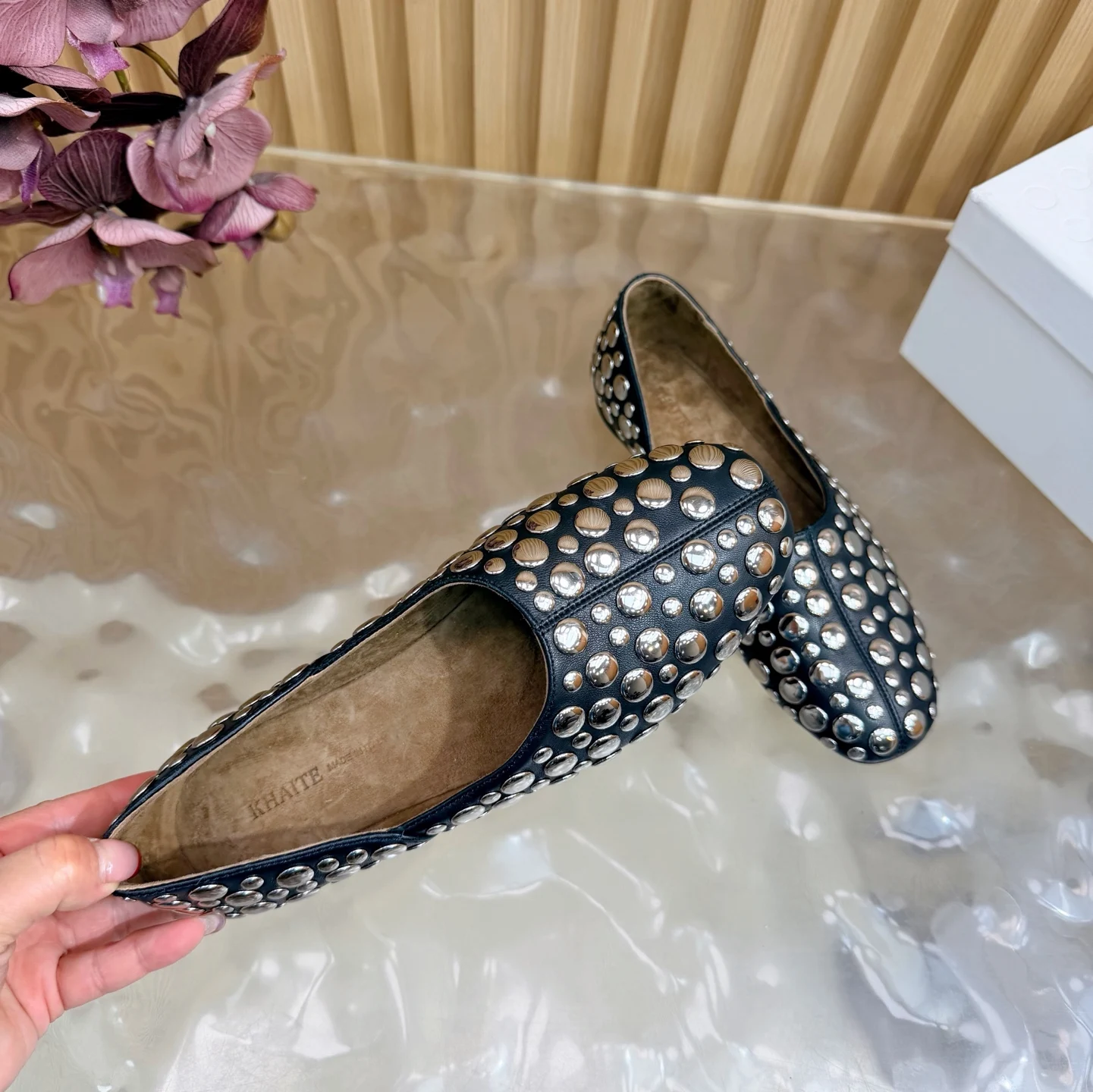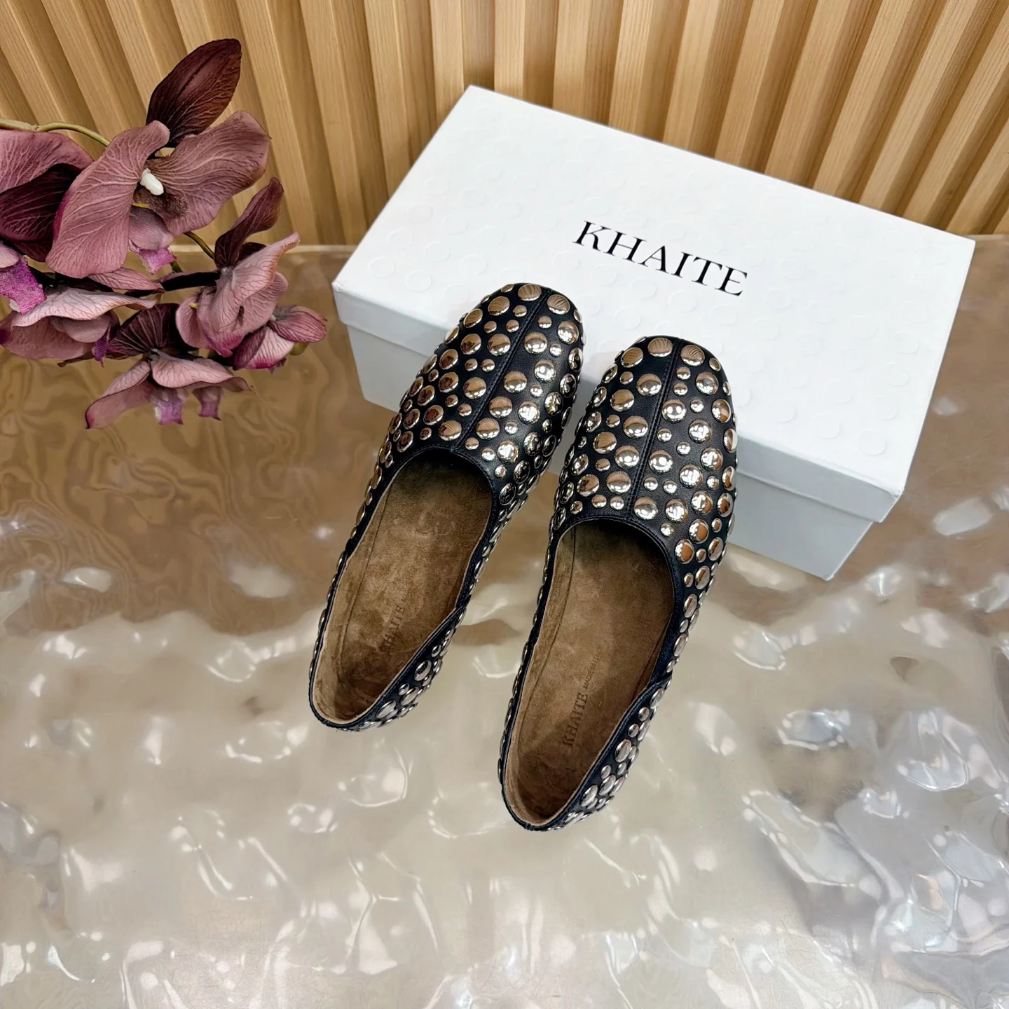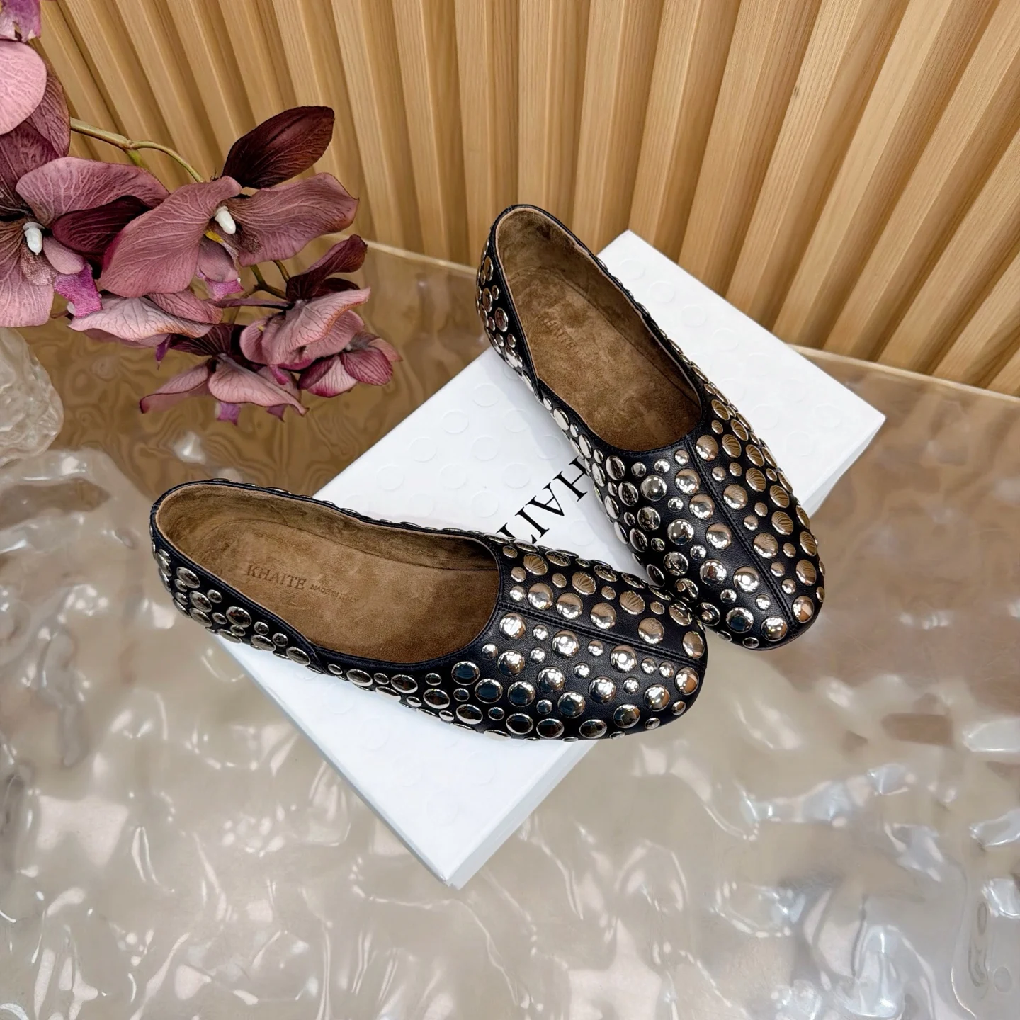 khaite 2026春夏新品开口满钻极简风单鞋 朋克style 鞋面采用牛皮铆钉重工