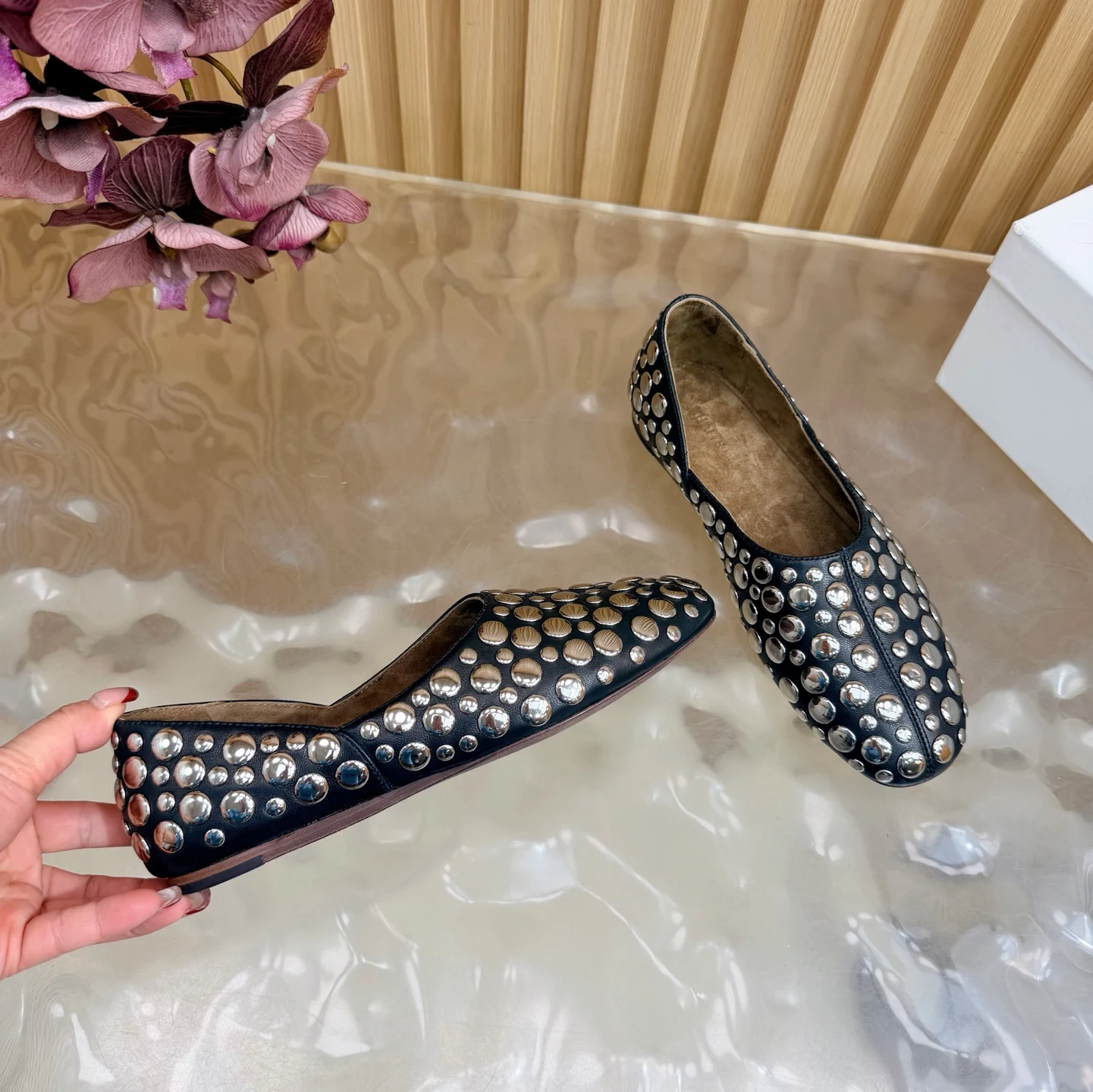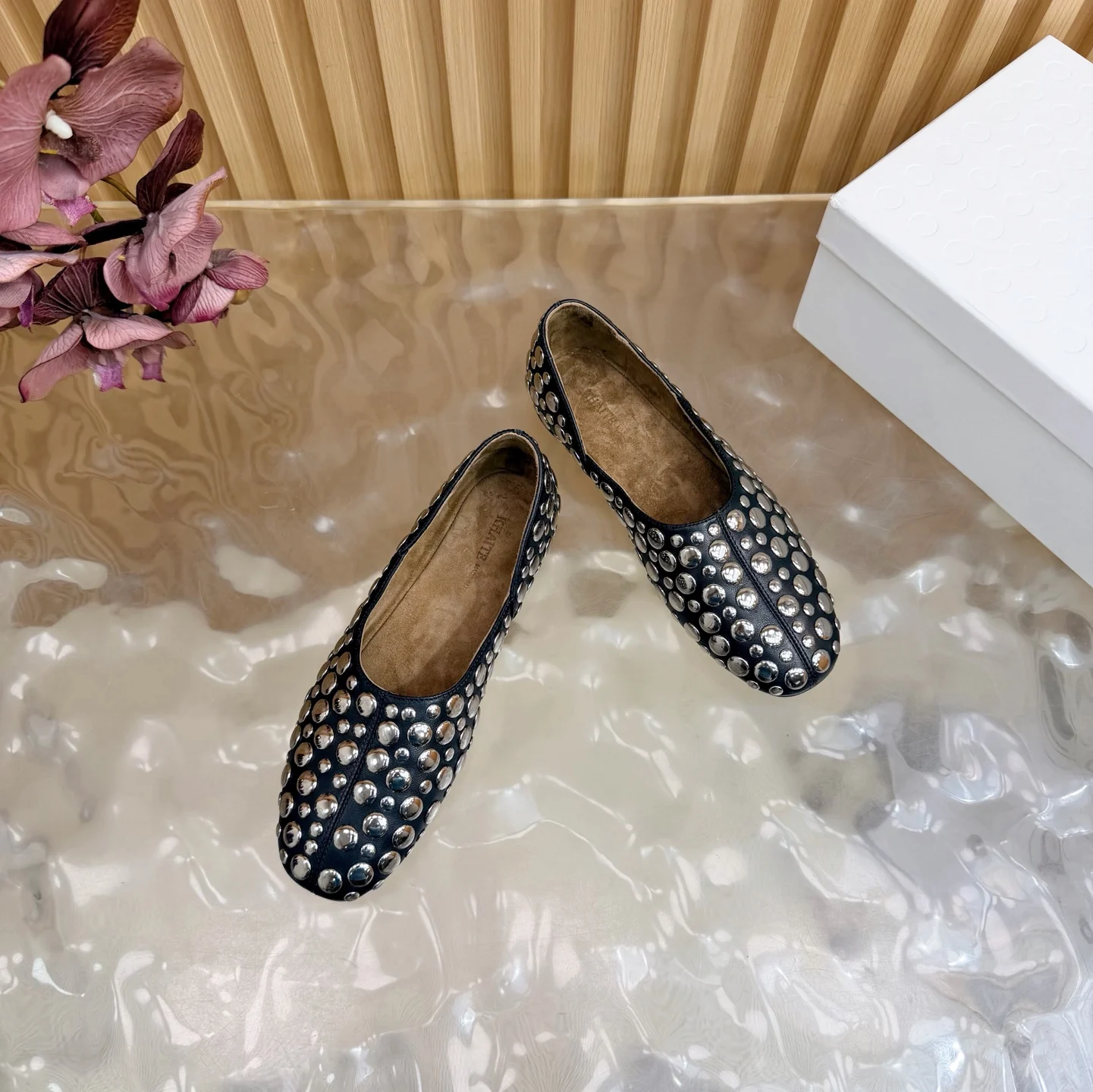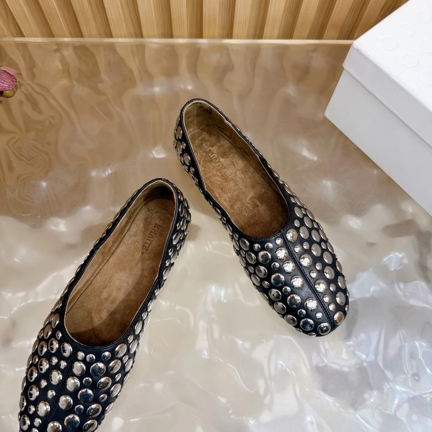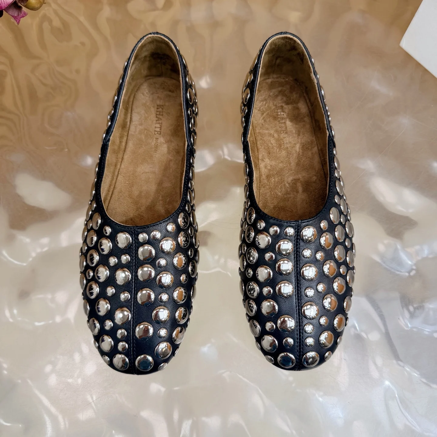 khaite 2026春夏新品开口满钻极简风单鞋 朋克style 鞋面采用牛皮铆钉重工