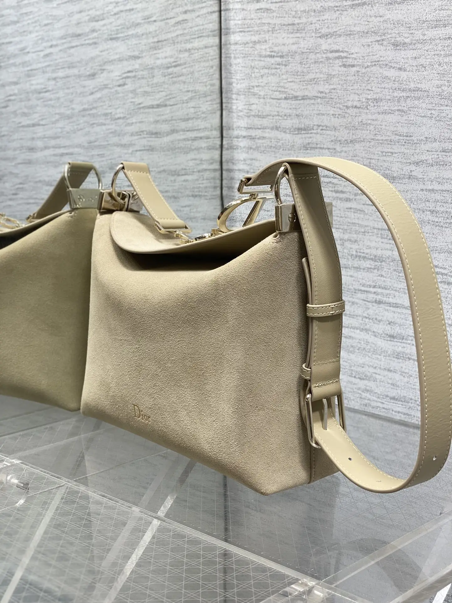 小号浅金Dior2026春夏新款Chrustian这款Hobo包采用杏绒拼皮 触感柔软 春季氛围感满满 月牙包型+金属
