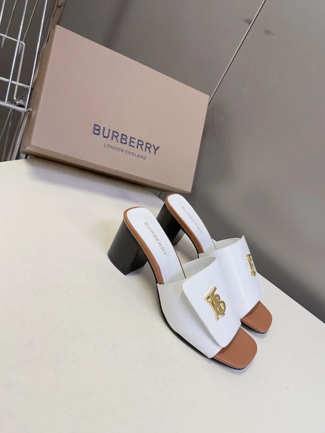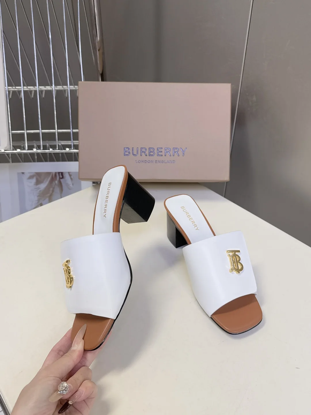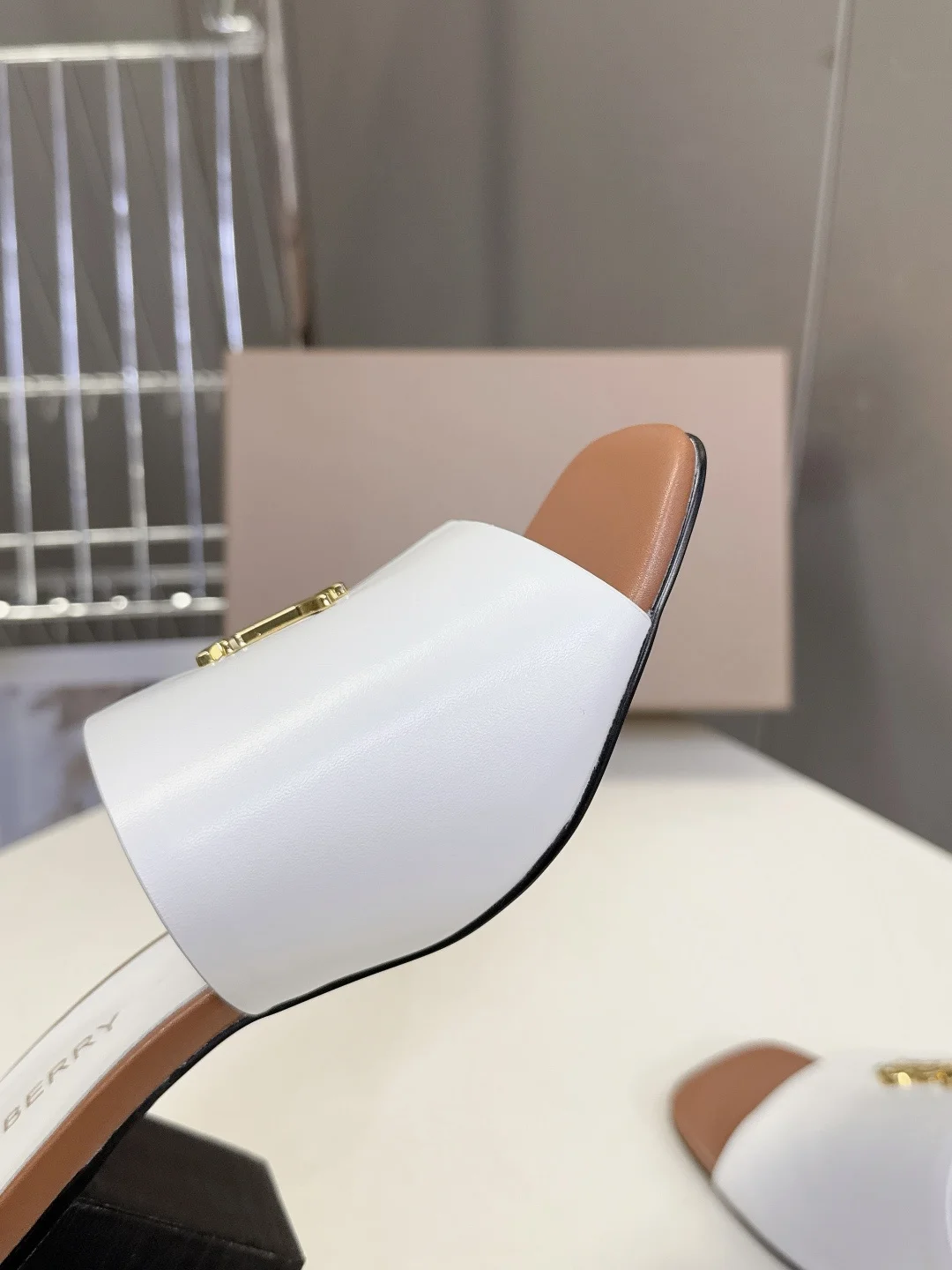 Burberry博柏利春夏最新款拖鞋 凉鞋 超多明星时尚博主种草 夏天必备 上脚超洋气鞋面进口小牛皮 内里采用混种羊皮 跟高6CM原版开模仿真皮大底 Size 35-40