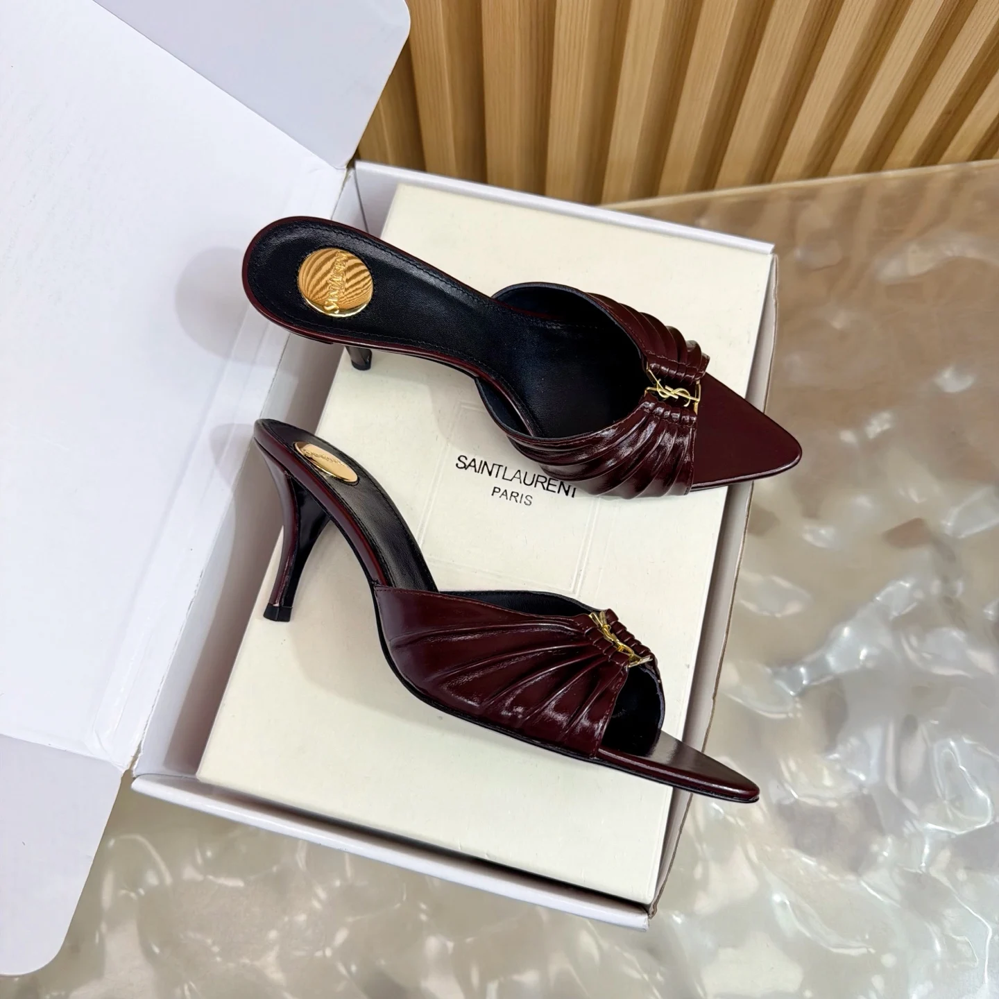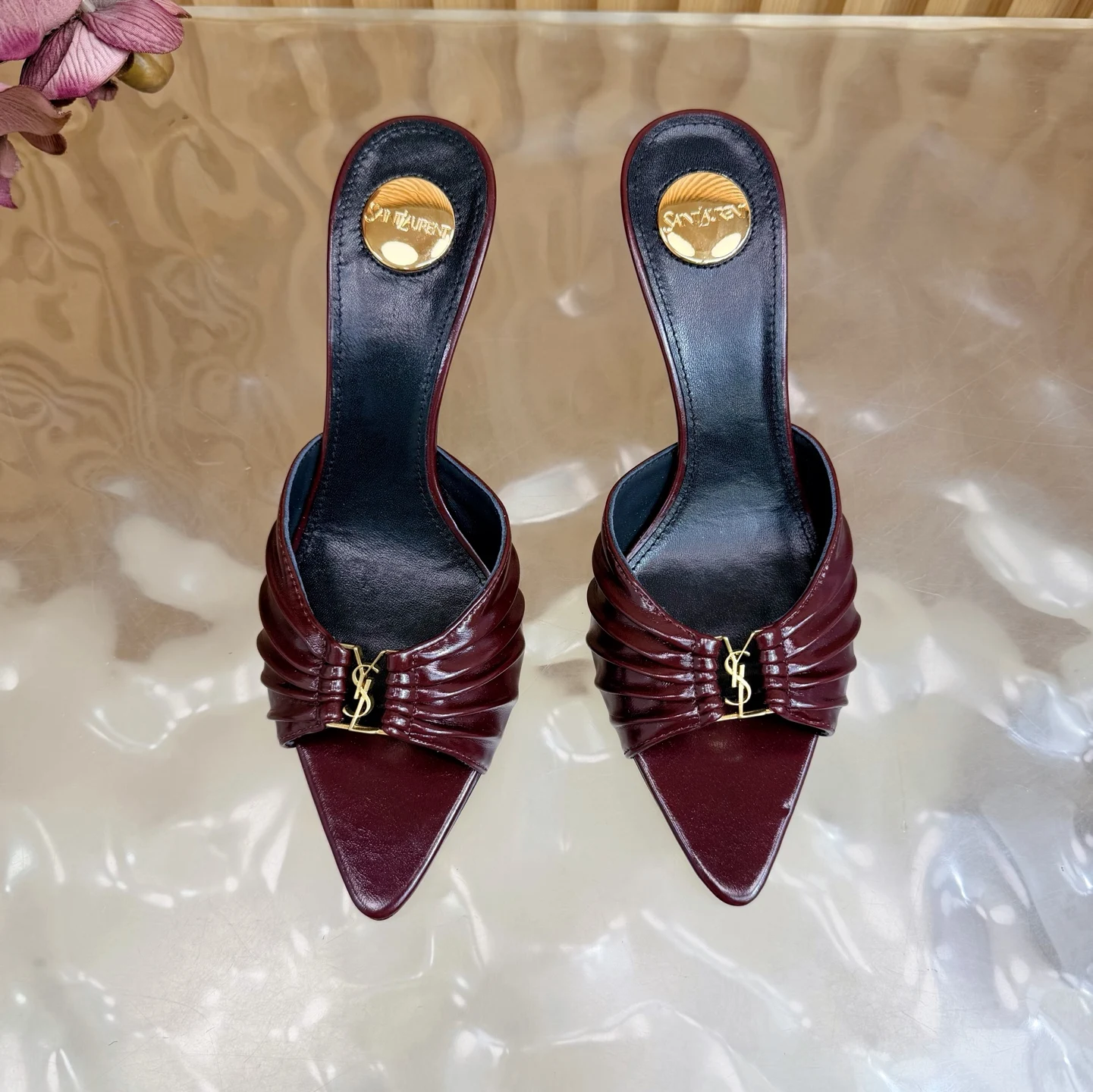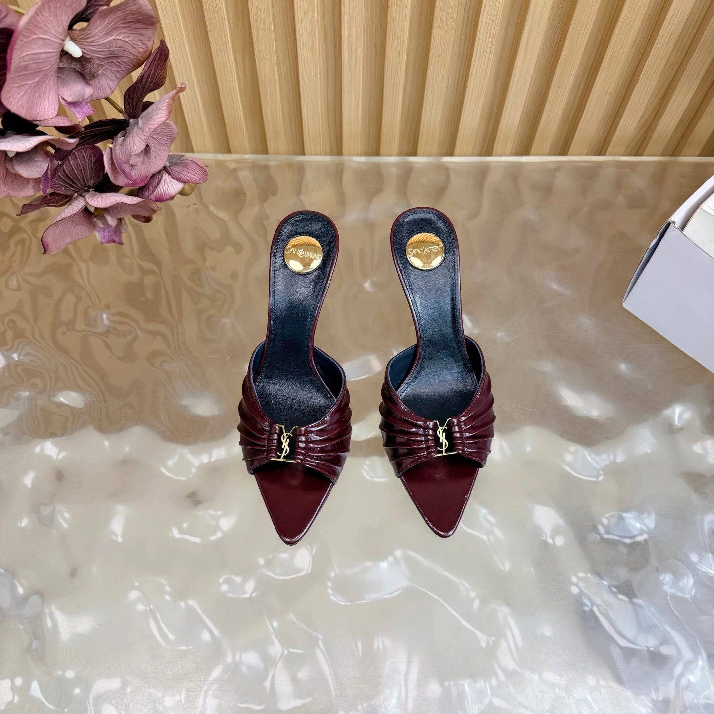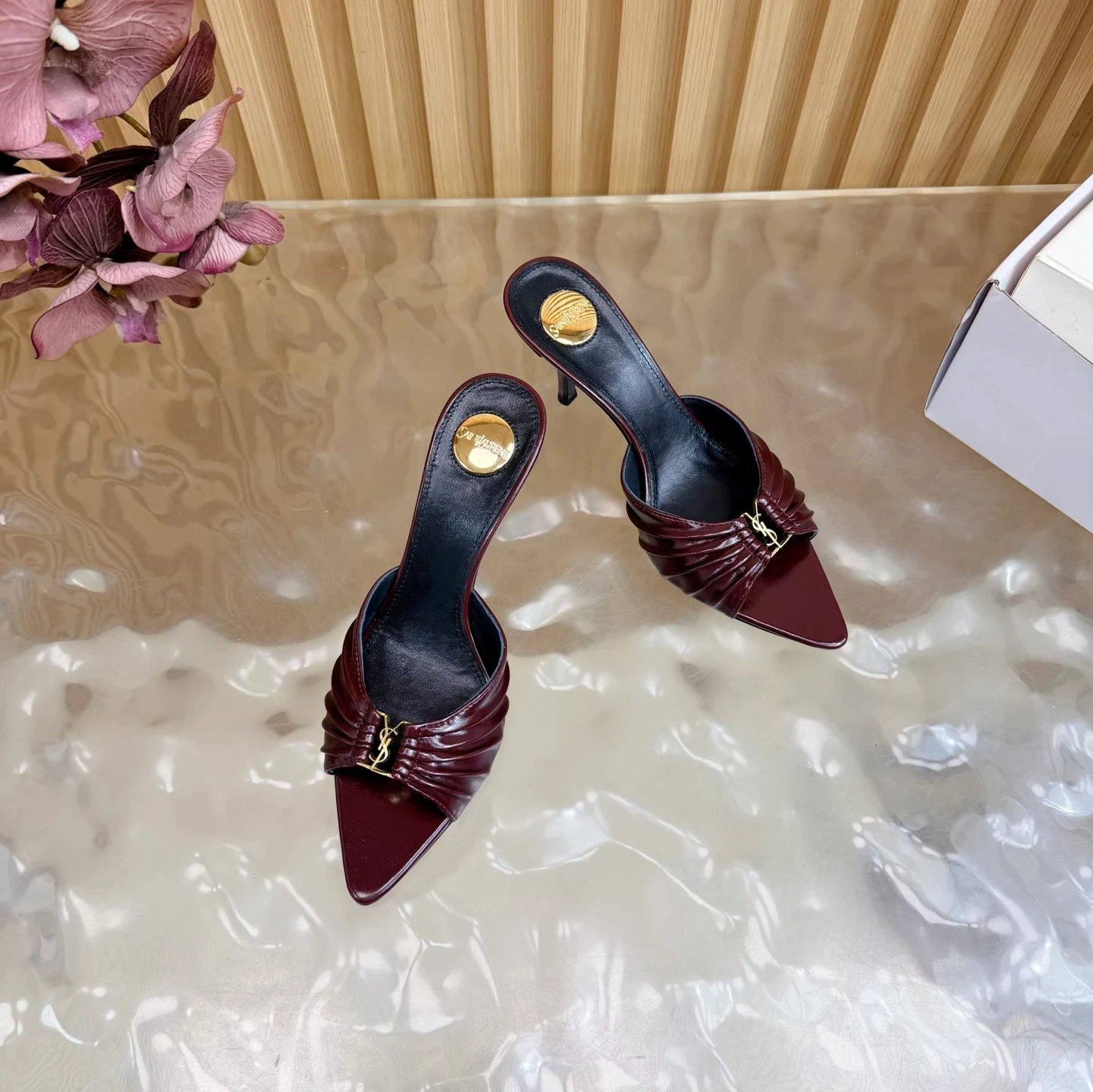 YSL 顶级品质 配高档飞机盒 Saint Laurent 圣罗兰 26s 春夏新款尖头链条五金扣穆勒鞋极简风 细高跟凉拖鞋