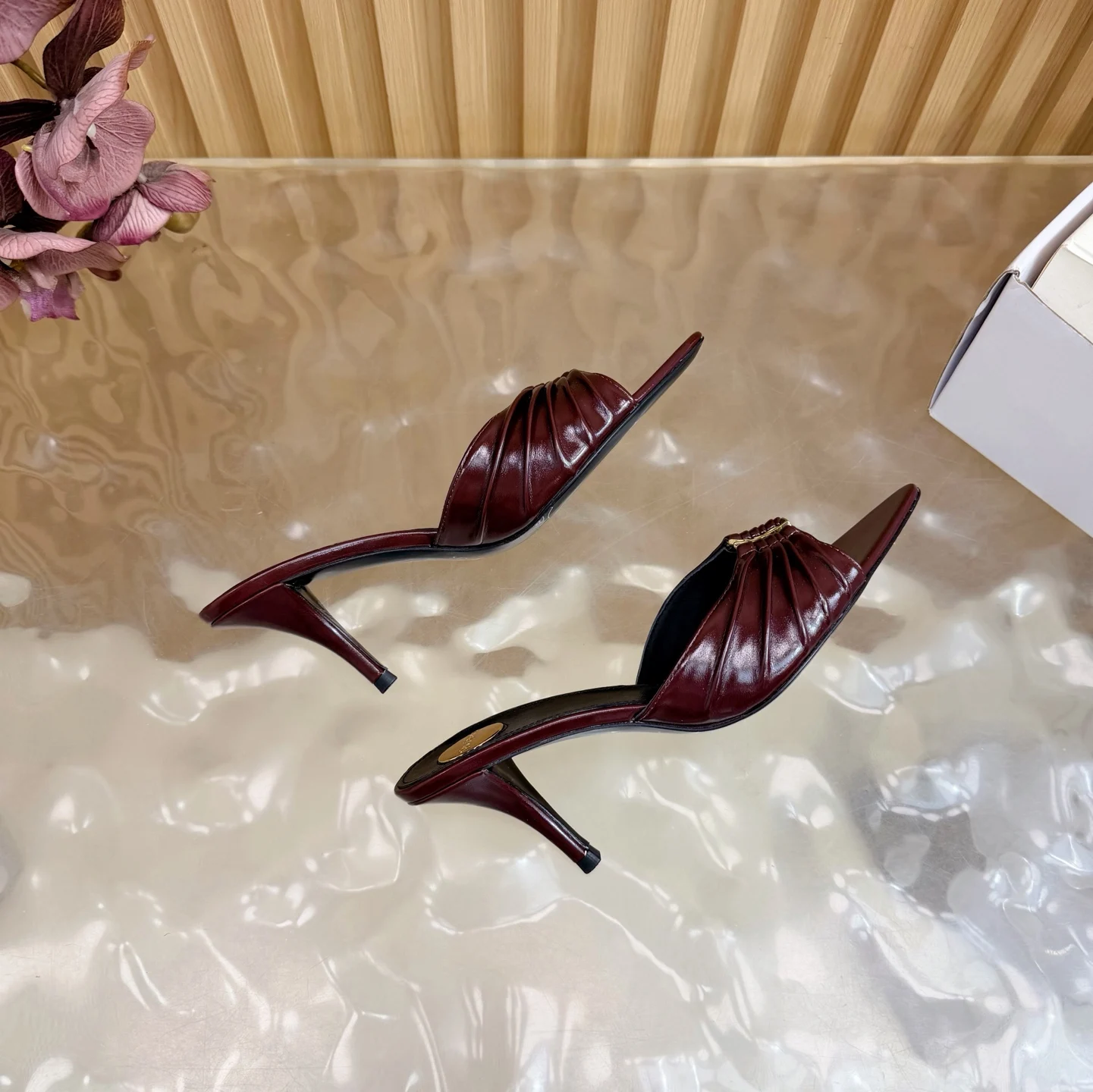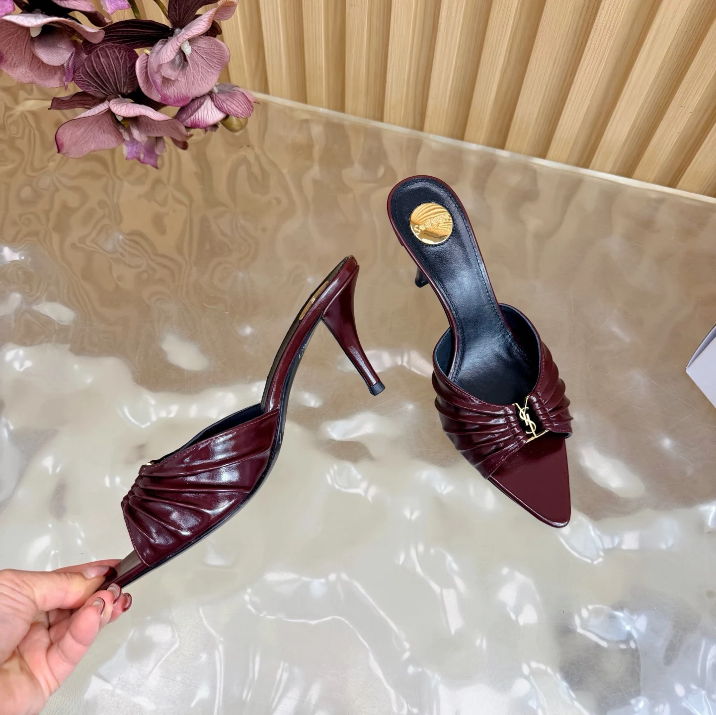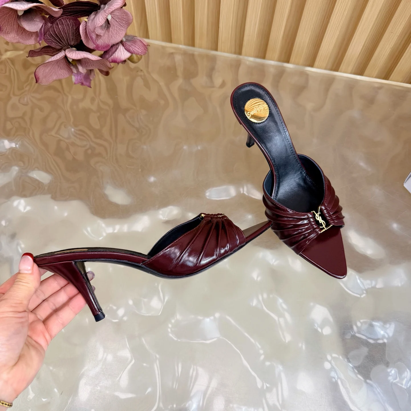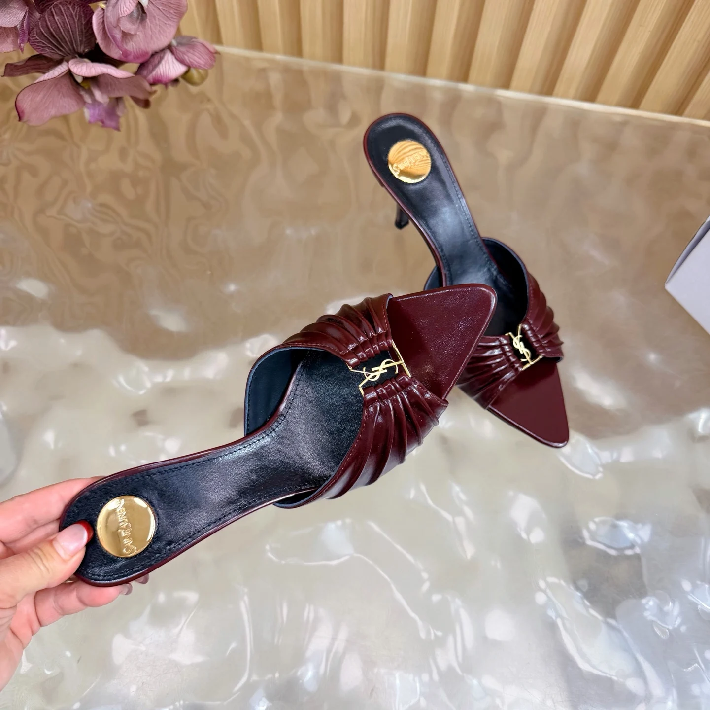 YSL 顶级品质 配高档飞机盒 Saint Laurent 圣罗兰 26s 春夏新款尖头链条五金扣穆勒鞋极简风 细高跟凉拖鞋