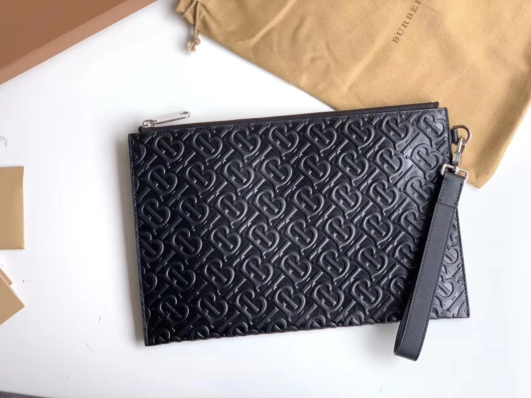 TB压花皮革拉链收纳袋 B 家 原单品质 采用进口粒面小牛皮 纤巧的版型可轻松置于公文包或旅行包内 并可轻松容纳平板电脑 实物拍摄 80092061黑色 尺寸30cm*19.5cm