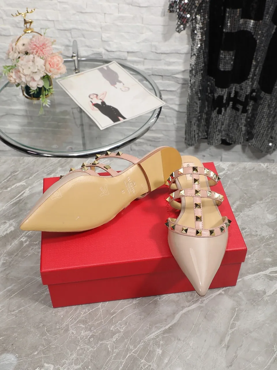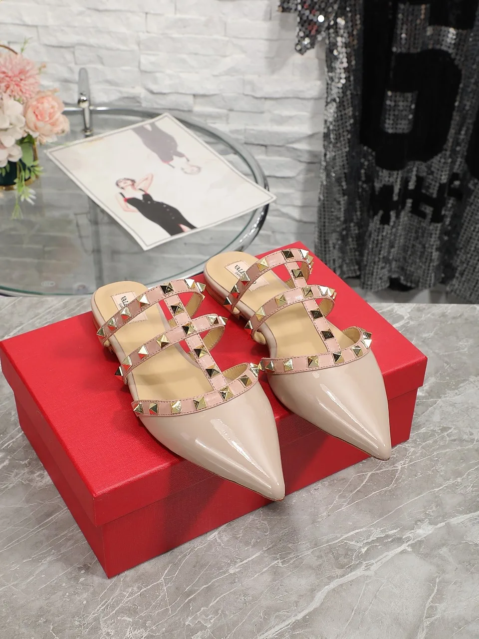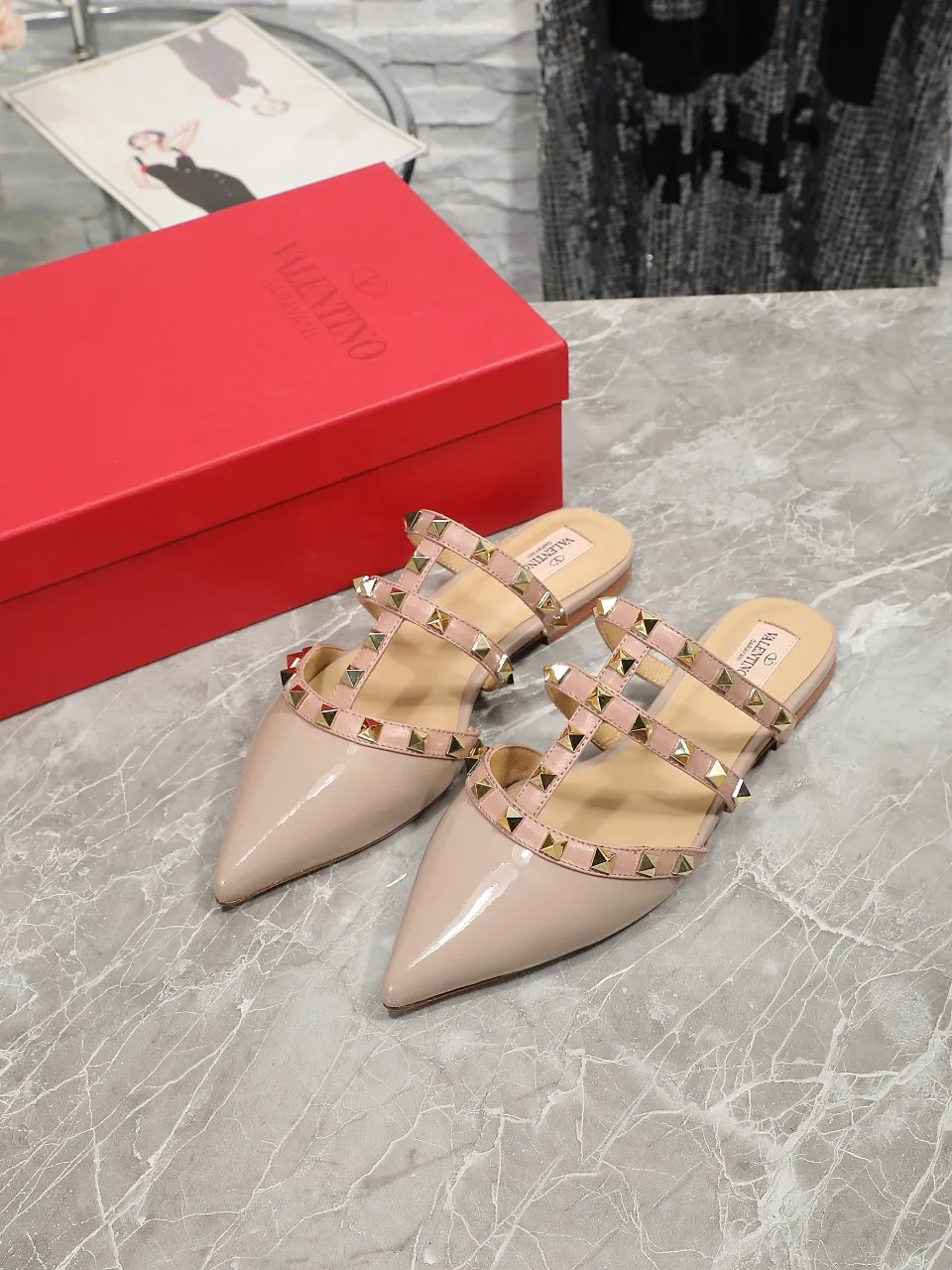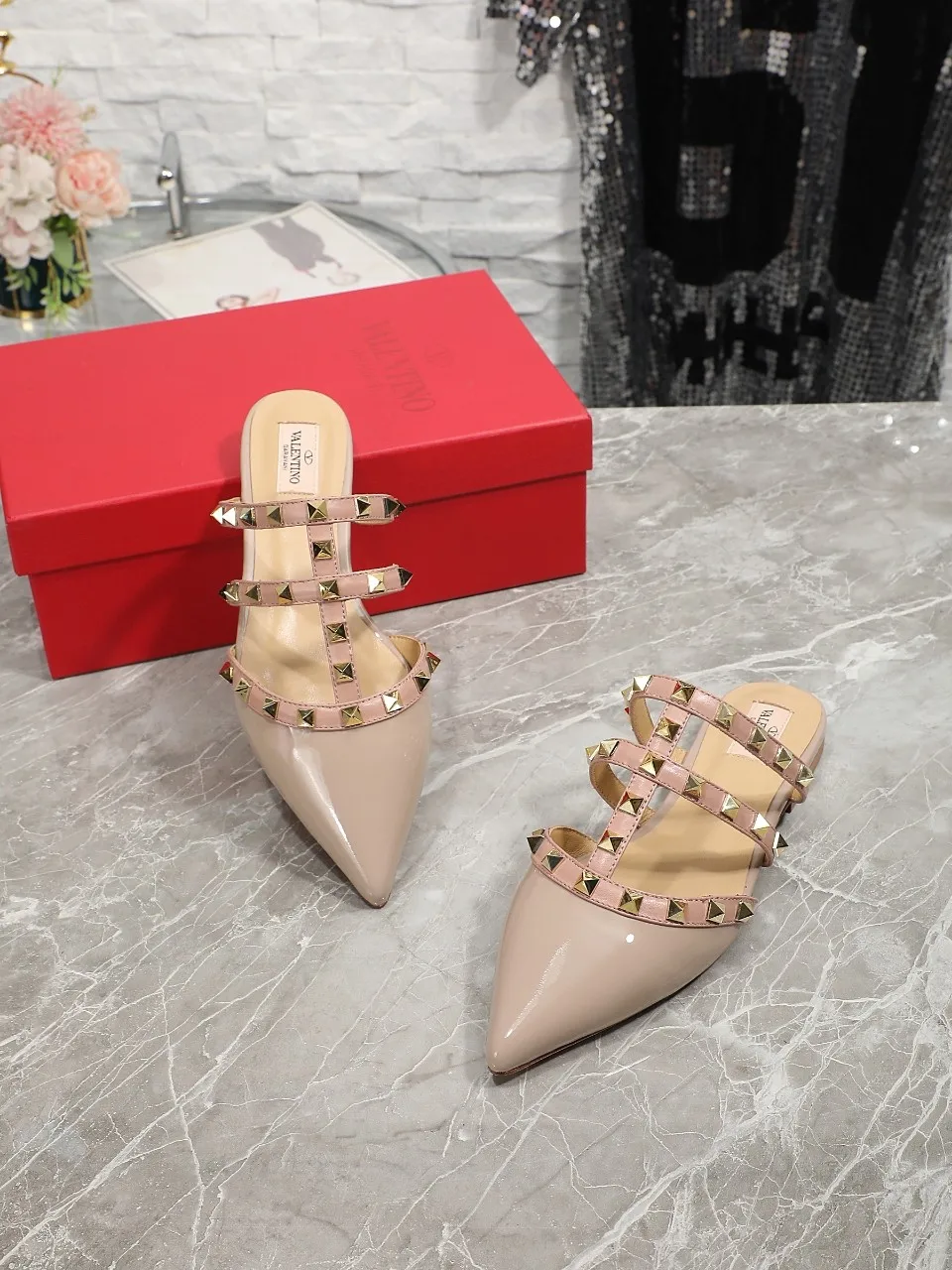 VALENTINO华伦天奴经典凉拖鞋 设计简约大气 脚感舒适 上脚超美 鞋面头层牛漆皮 内里羊皮 35-40码 41-42码可以订做