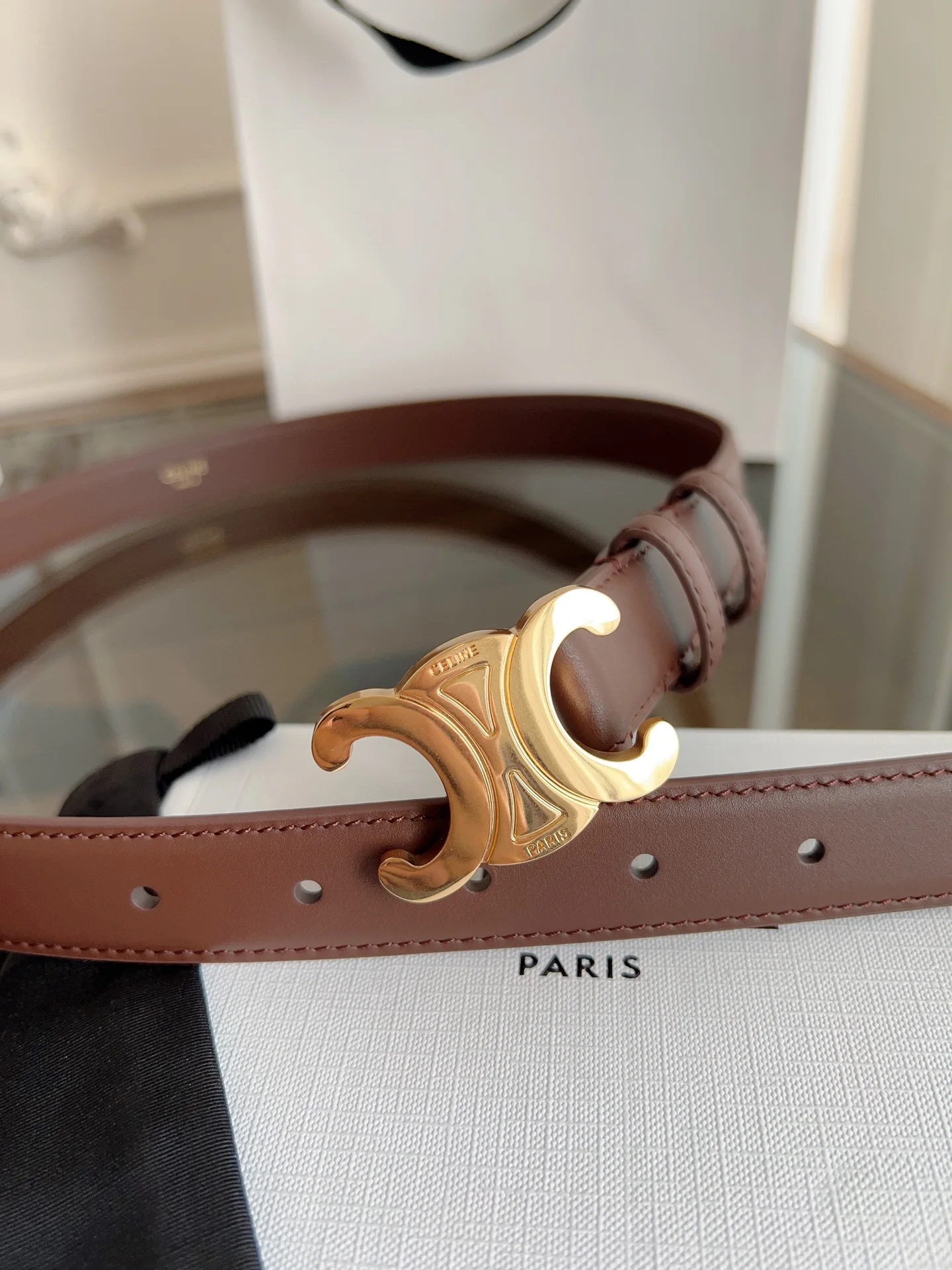 赛琳 CELINE女士皮带 小牛皮质感搭配独特凯旋门扣 颜色咖啡色 宽2.5cm 低调中暗藏奢华 轻松点亮穿搭 手工缝制
