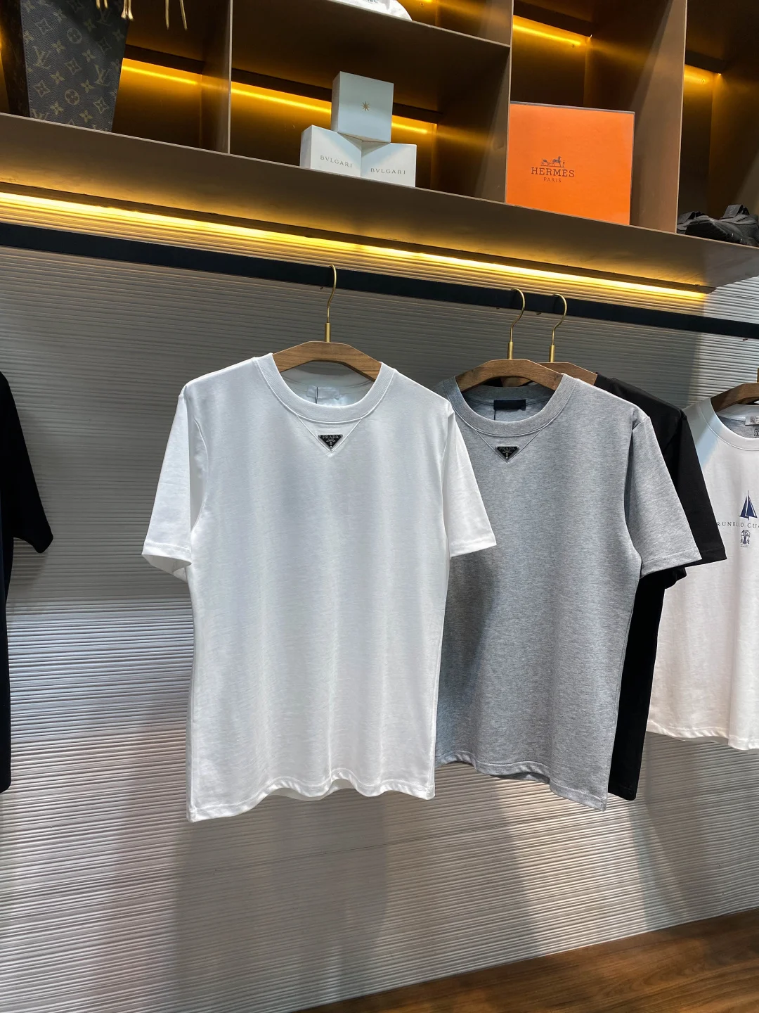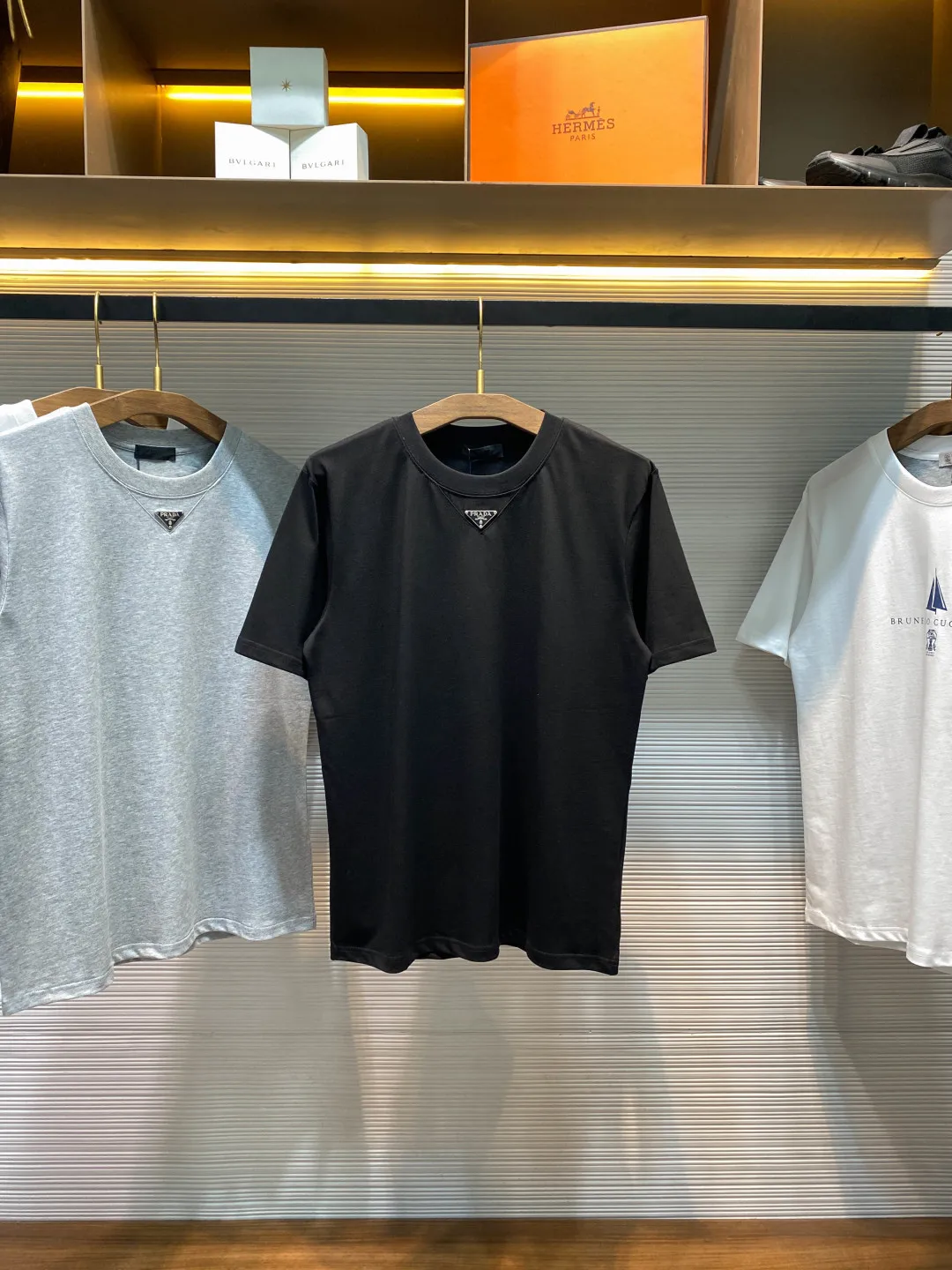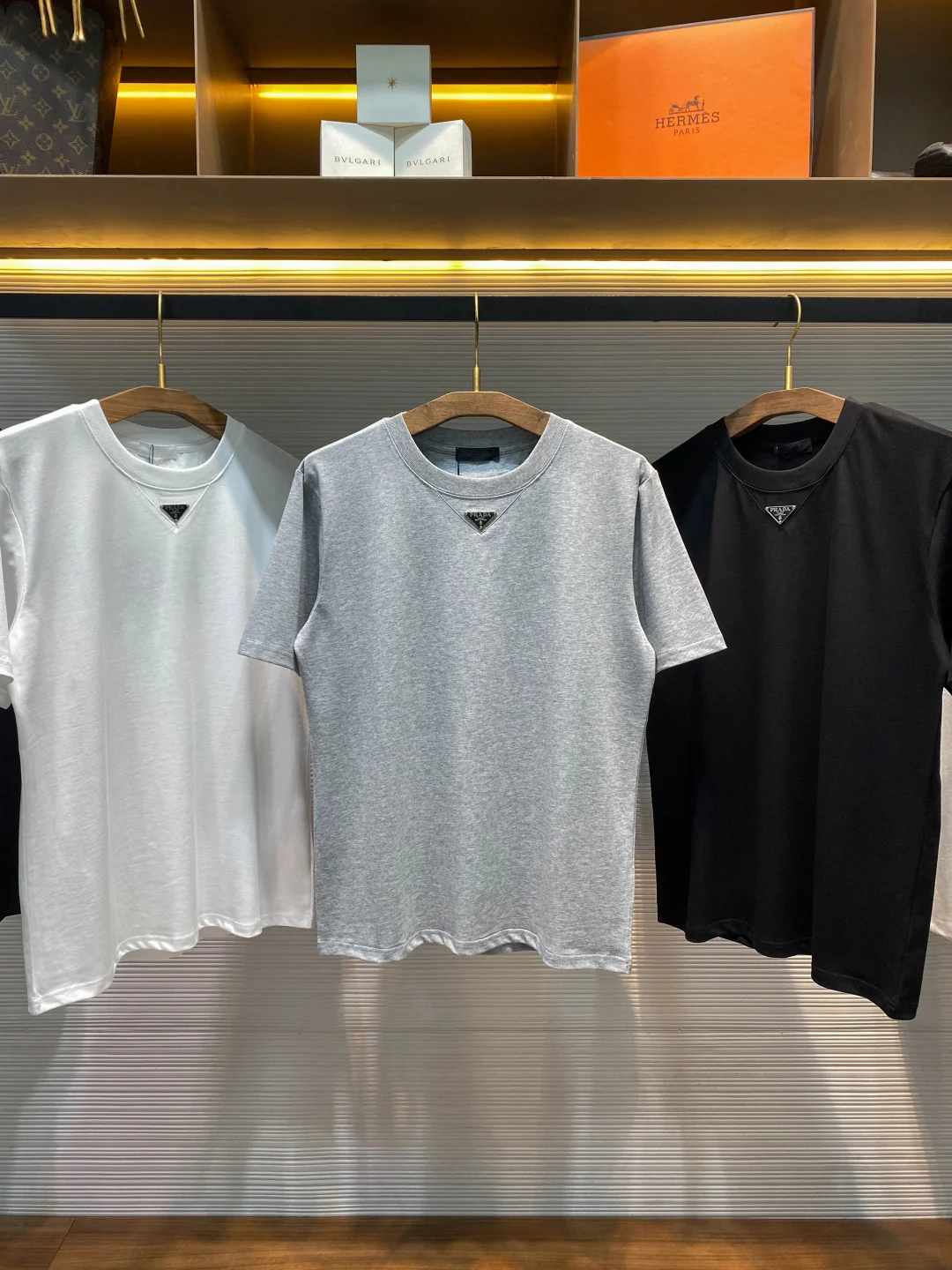 PRA26SS春夏新款平纹针织棉布基础圆领短Tee 男女同款领口下方金属三角标徽章休闲短袖T恤衫 男生体重130斤以内选择S码 130-143斤选择M码 143-156斤选择L码 156-170斤选择XL码 170-185斤选择XXL码