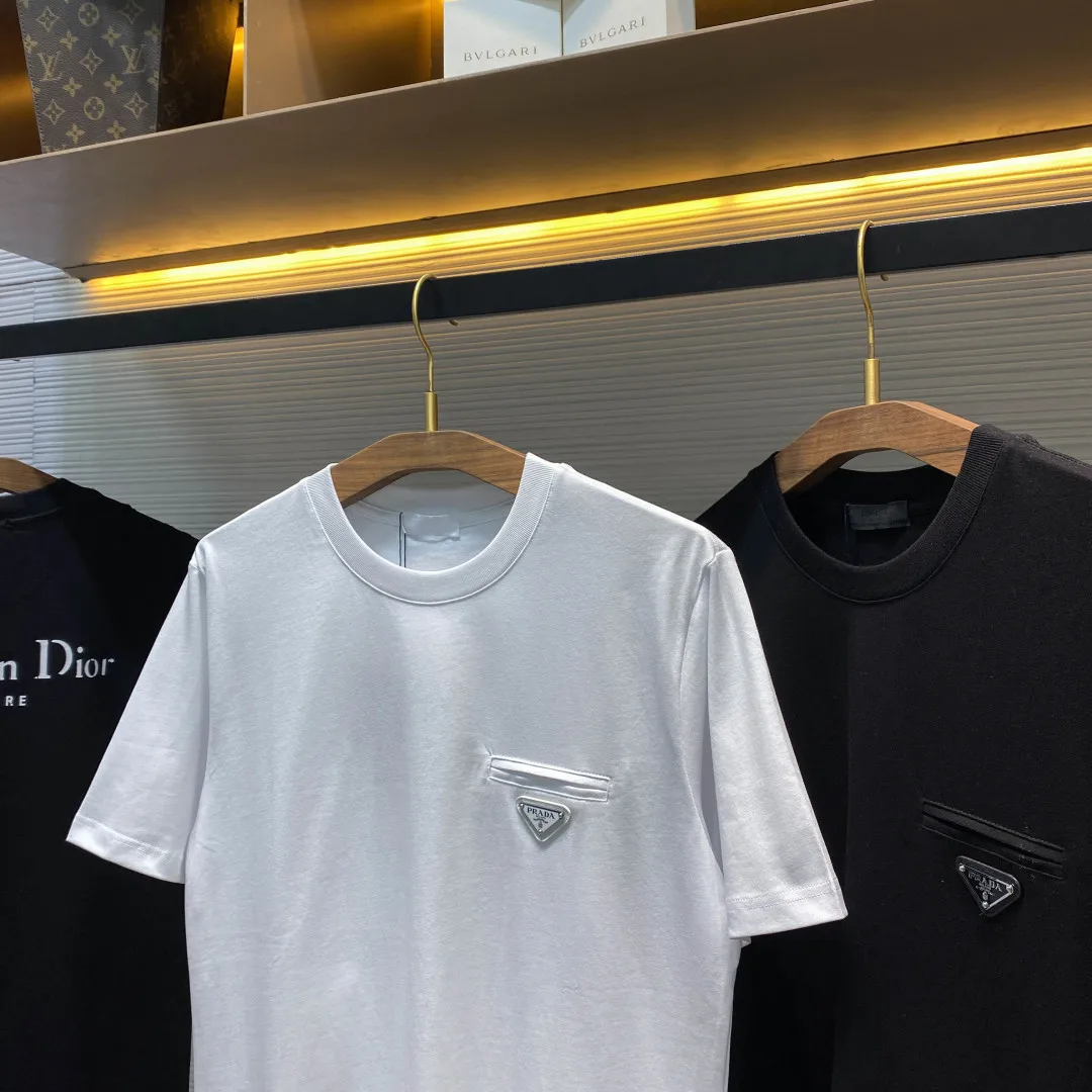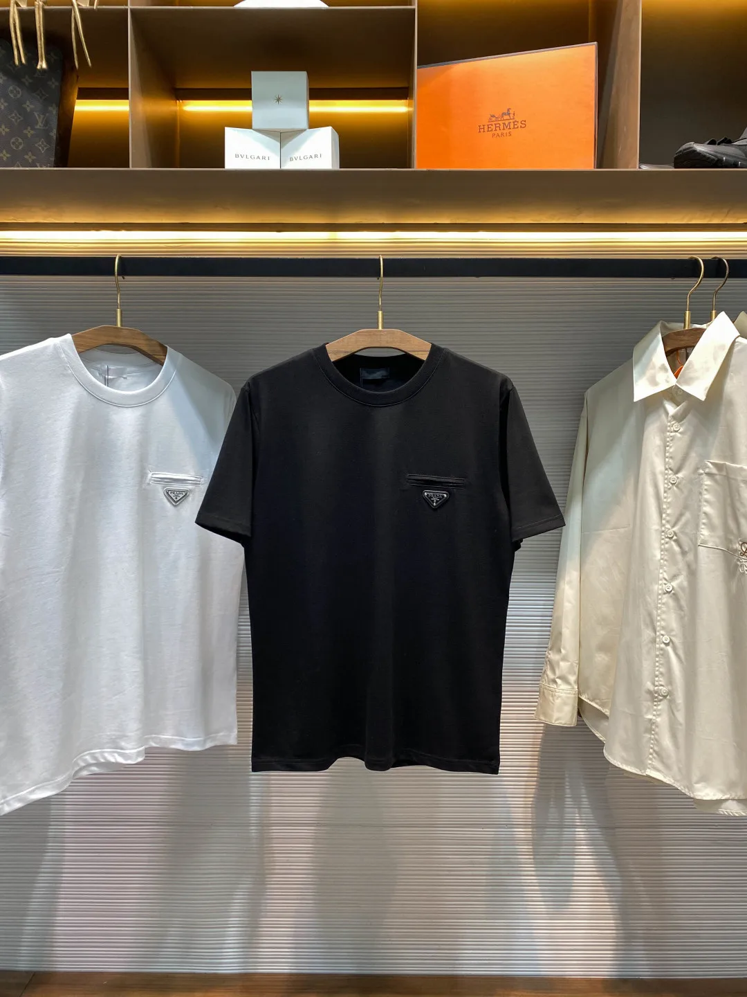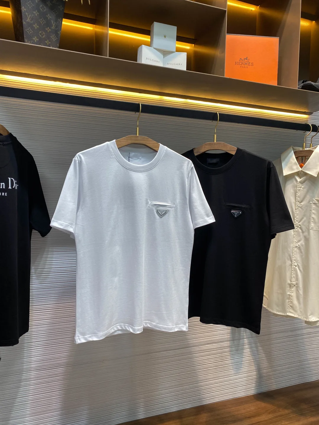 PRA26SS春夏新款平纹针织棉布基础圆领短Tee 男女同款三角标假口袋休闲套头短袖T恤衫 男生体重133斤以内选择S码 133-146斤选择M码 146-160斤选择L码 160-174斤选择XL码 174-188斤选择XXL码