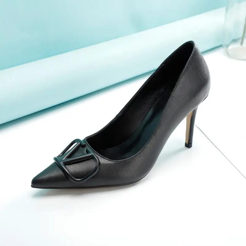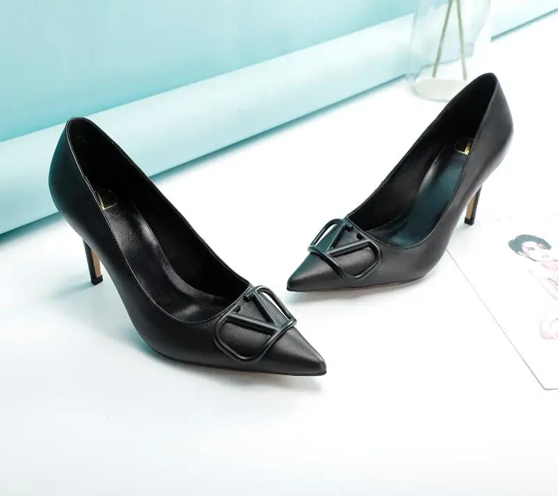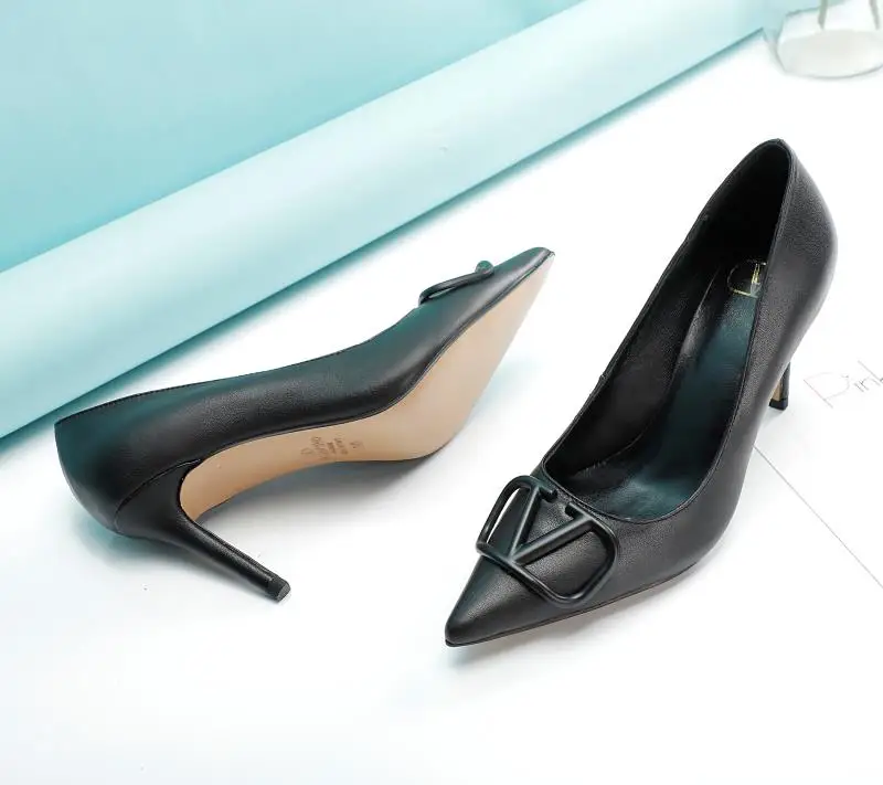 华伦天奴 时装高跟单鞋8厘米 大V字母扣.实拍图 码数35-40 可以订做41-42 头层软牛皮 内羊皮元 橡胶底 黑色+黑扣.黑色+金扣 米白色 红色 裸粉色 全套包装皮底+40
