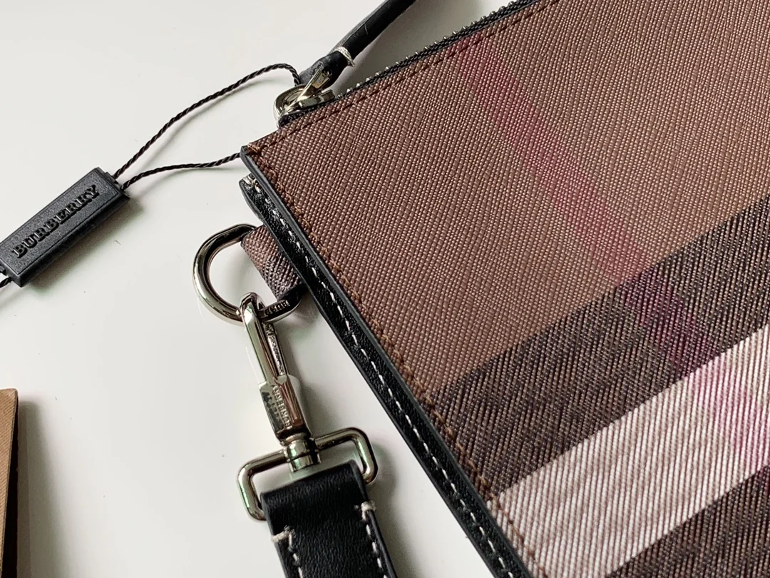 Vintage 大号格纹环保帆布拉链收纳袋 B 家 原单出品 采用进口粒面小牛皮 纤巧的版型可轻松置于公文包或旅行包内 并可轻松容纳平板电脑 并搭配可拆式皮革腕带 实物拍摄 80366731黑色 尺寸30cm*20cm
