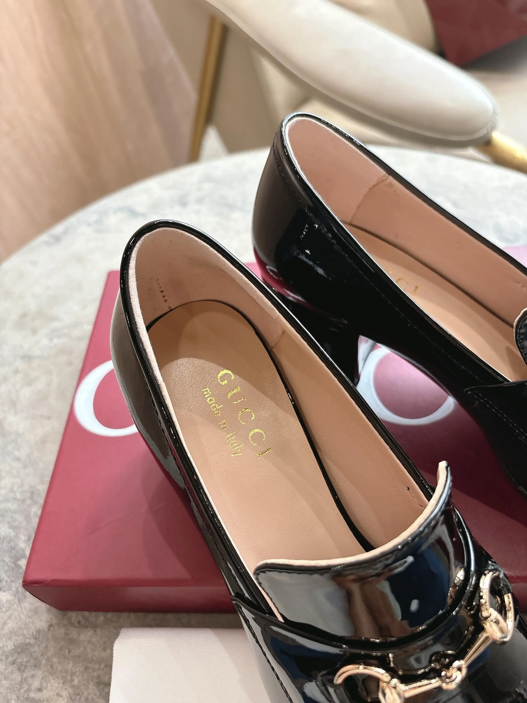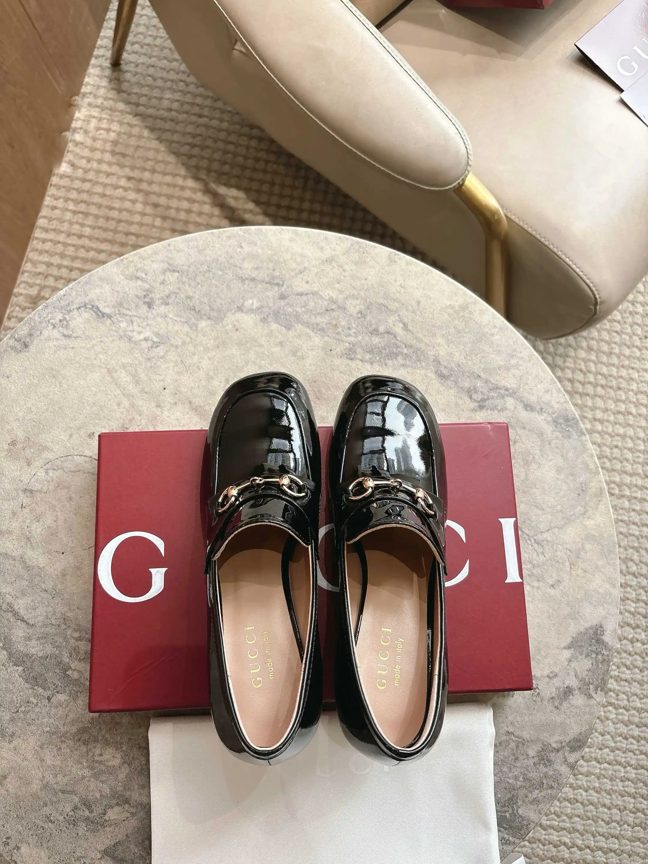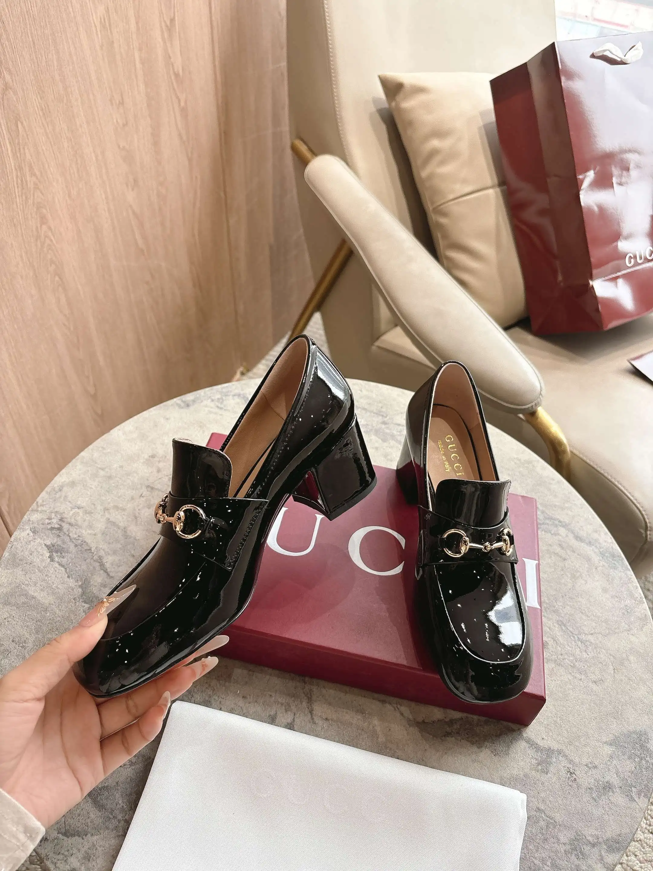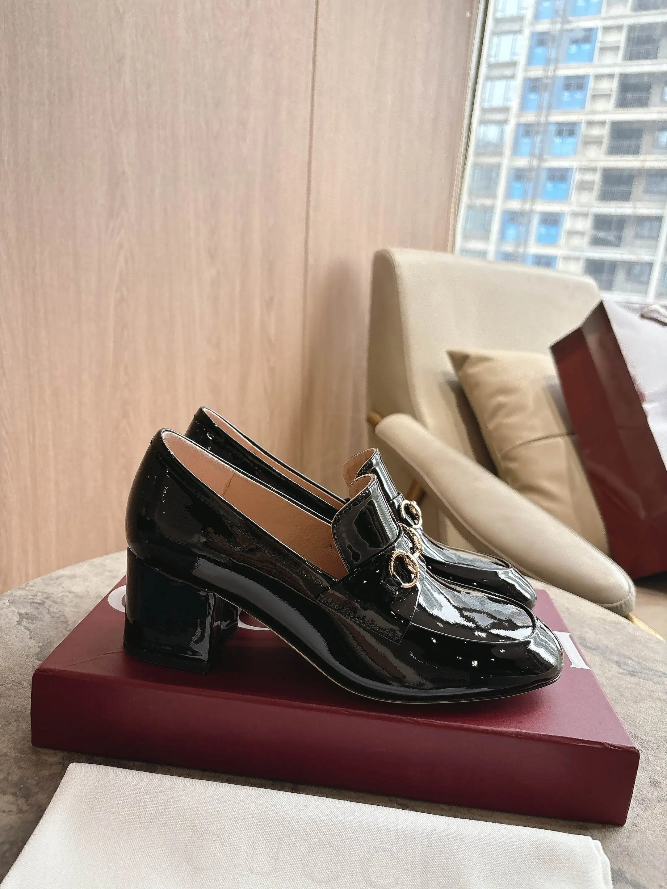 8569-1 黑 35-42 作为对品牌马术本源的致敬之作 马衔扣历经时间洗礼后 将厚重历史底蕴与现代时尚型格融为一体 这款女士浅口乐福鞋采用柔软亮面漆皮匠心打造