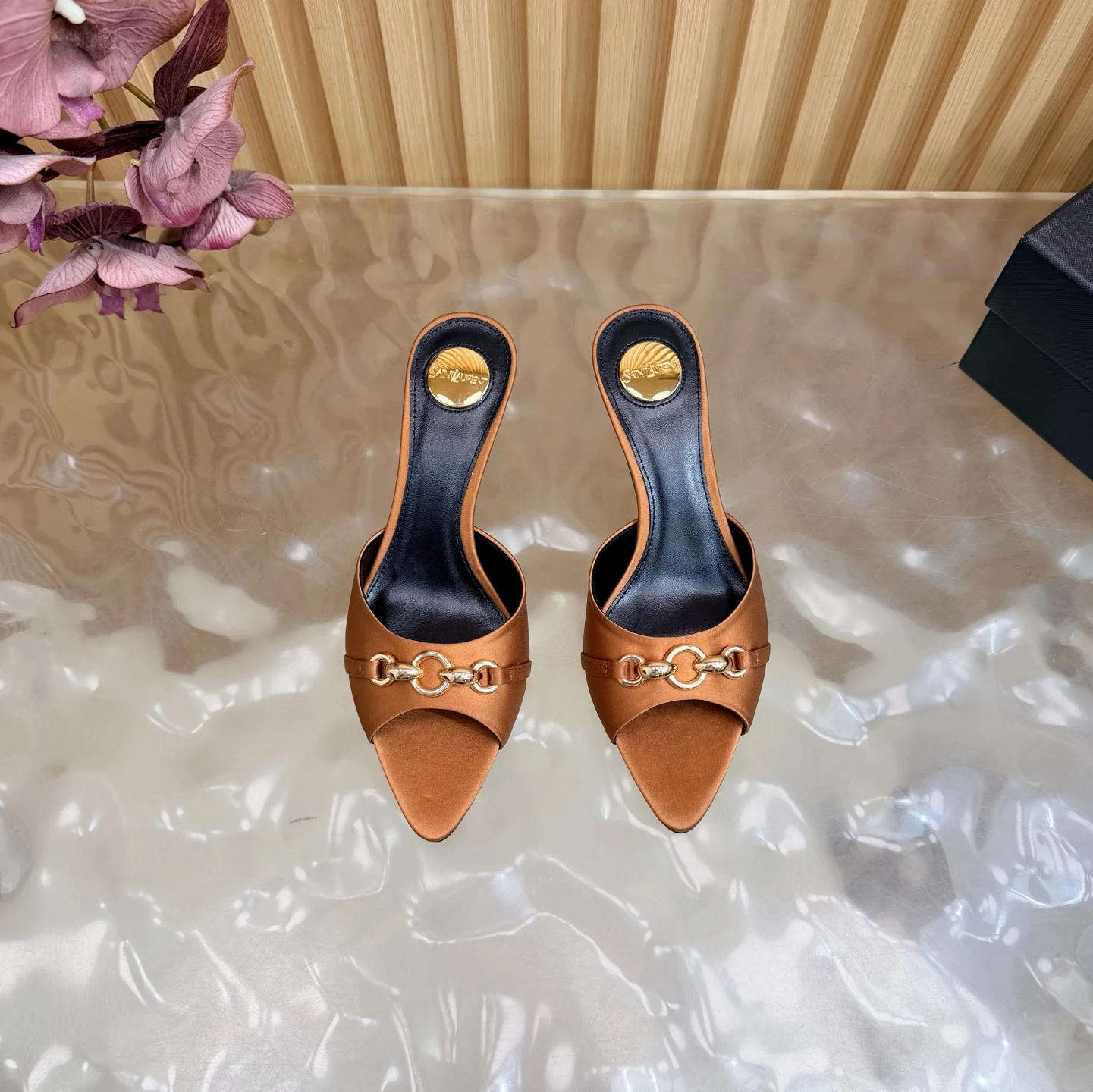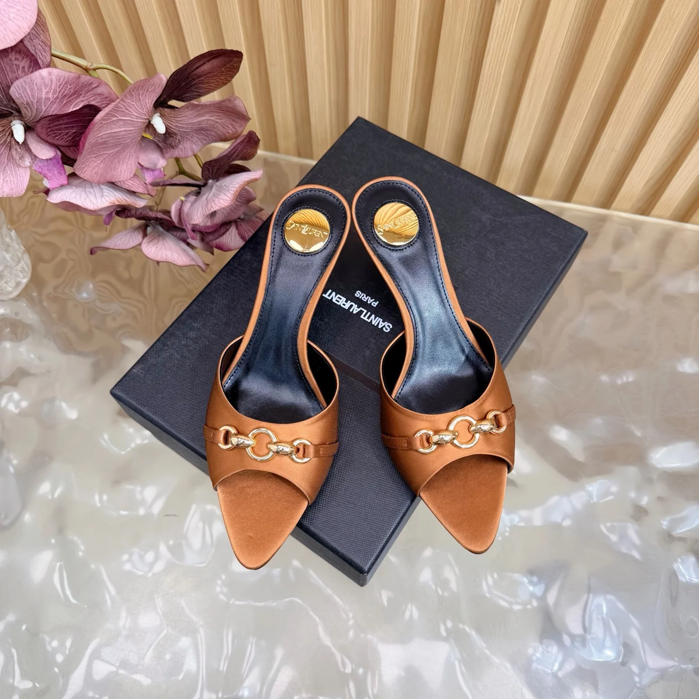 Saint Laurent圣罗兰家YSL经典秀款猫跟凉鞋 鞋面材质 采用漆皮/真丝